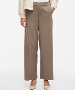 VILA Women’s Vivarone High Waist Trousers | Medium Grey Melange
