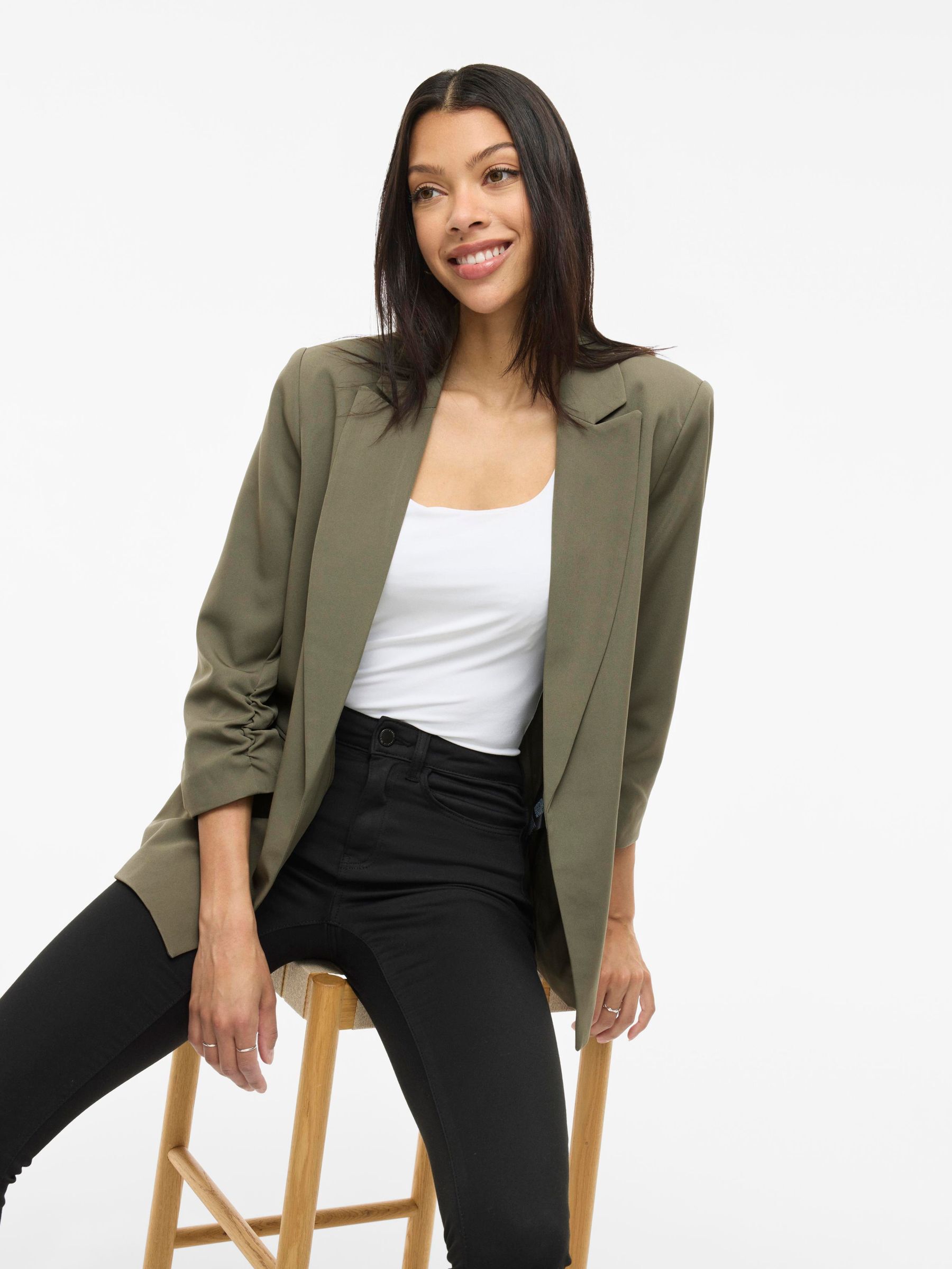 • 3/4-sleeved blazer• Wrinkled sleeves• Padded shoulders• Flap pockets• Notch lapels• Regular fit• Length: 71 cm in size 38• Sleeve length: 49 cm in size 38