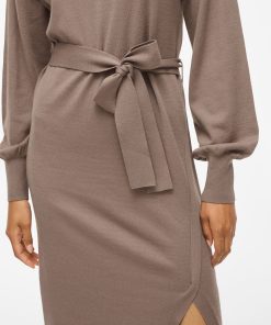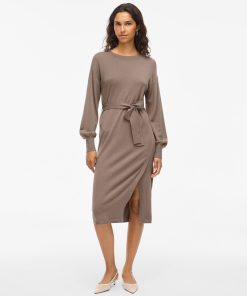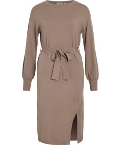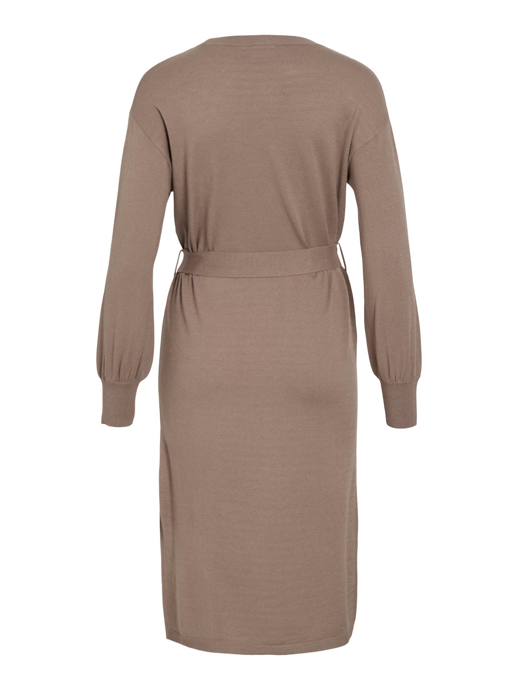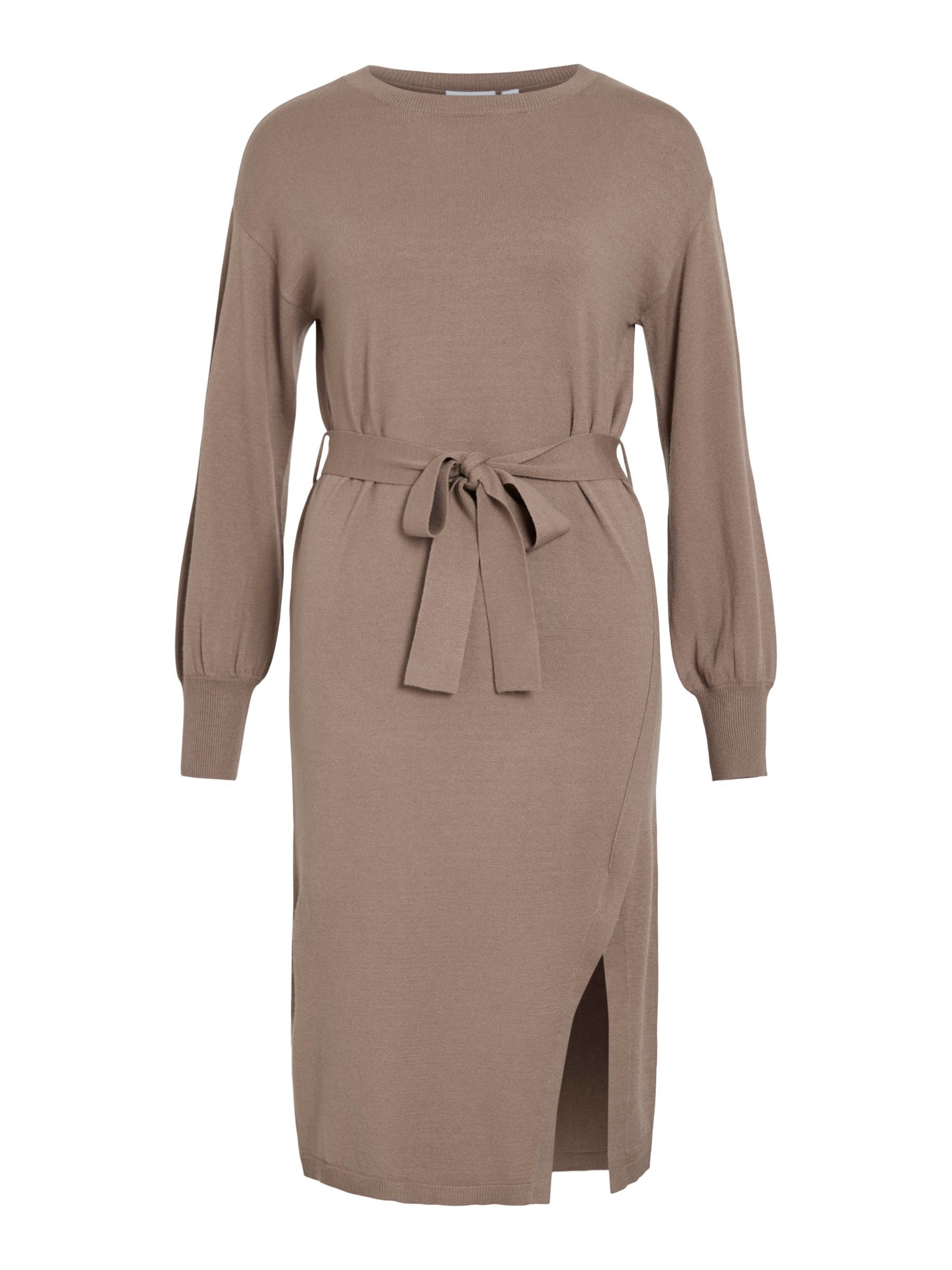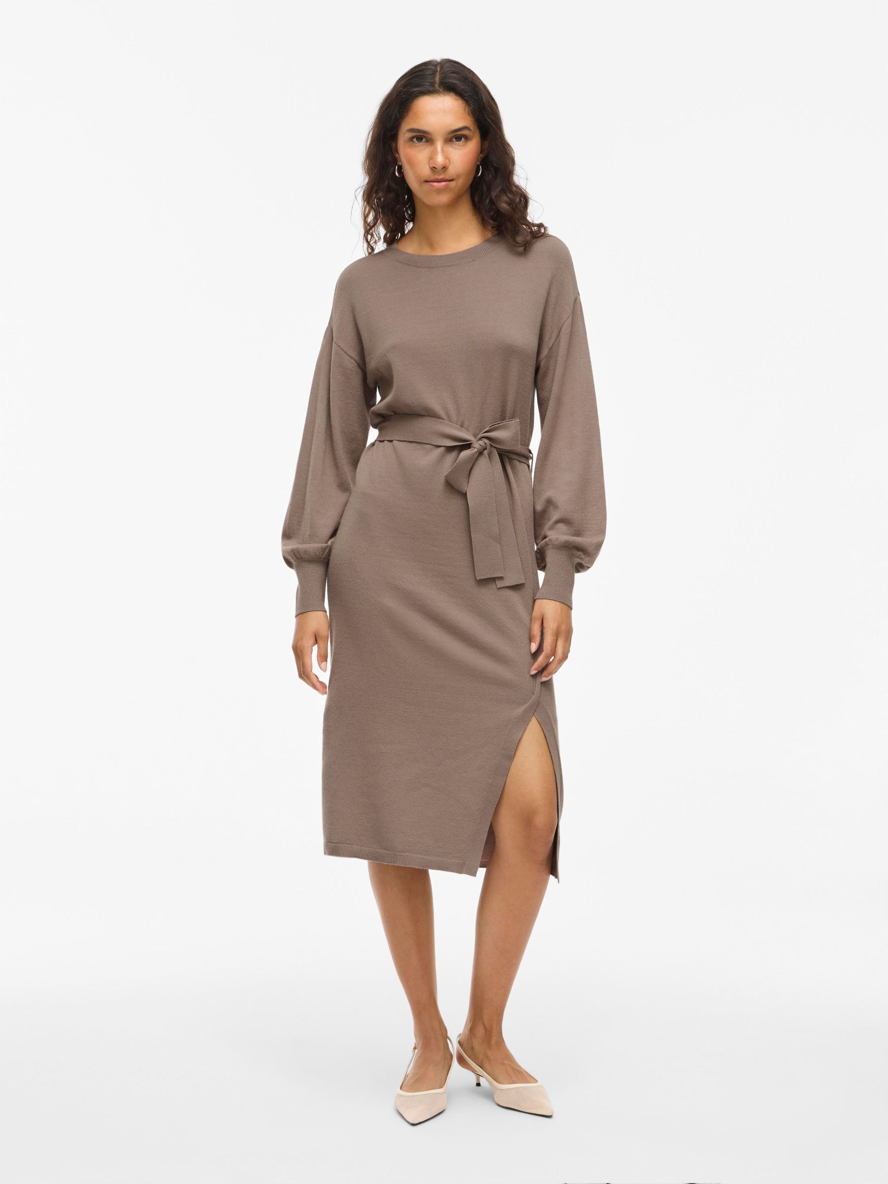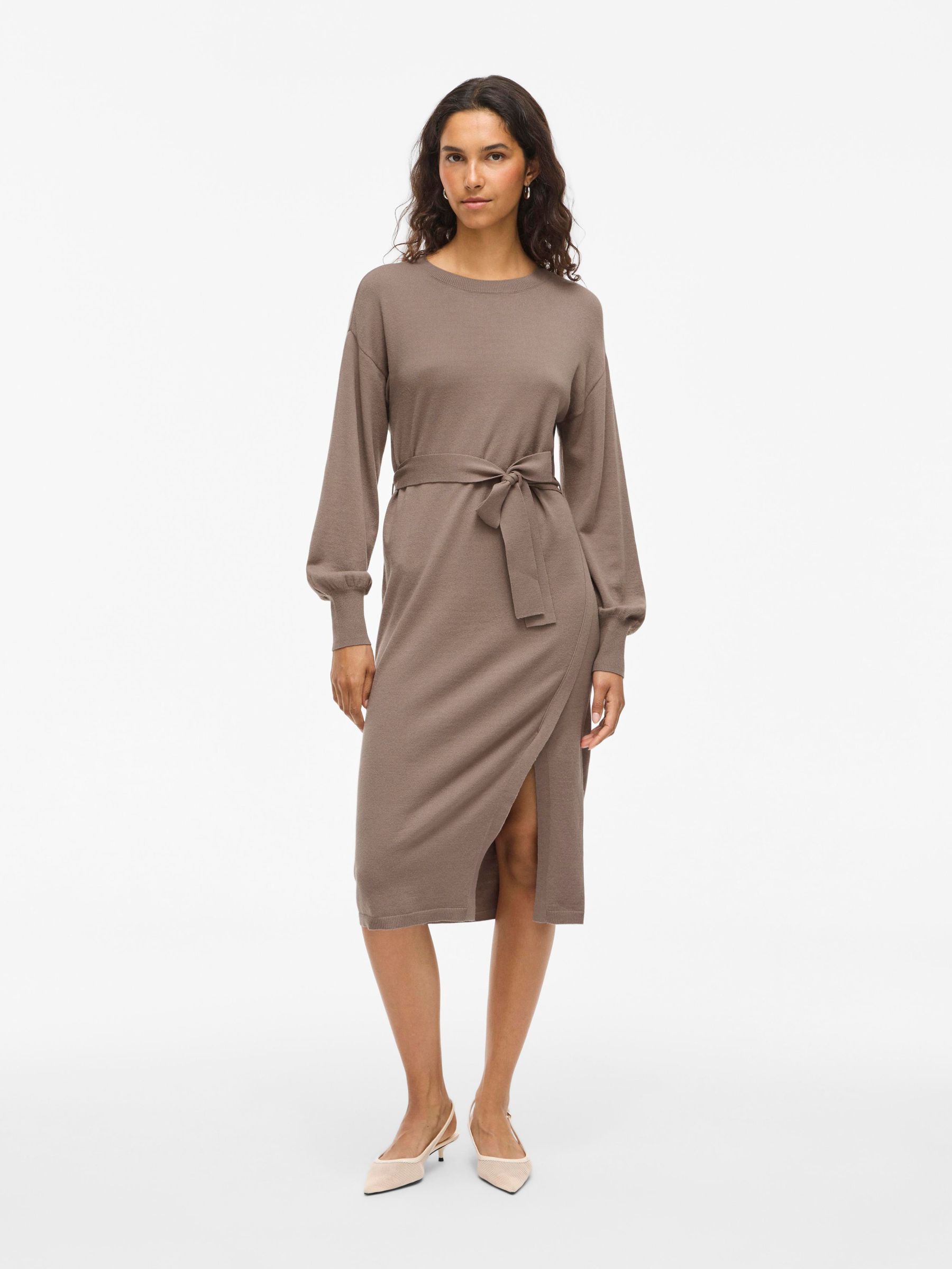 – Long sleeved knitted dress- Midi-length- Tie waist with removable belt- Front slit detail- Dropped shoulders- Round neckline- Rib edges- Super soft, stretchy knit- Regular fit- Length: 110 cm in size M- Sleeve length: 68 cm in size M- Our model is 178 cm tall and wears size M