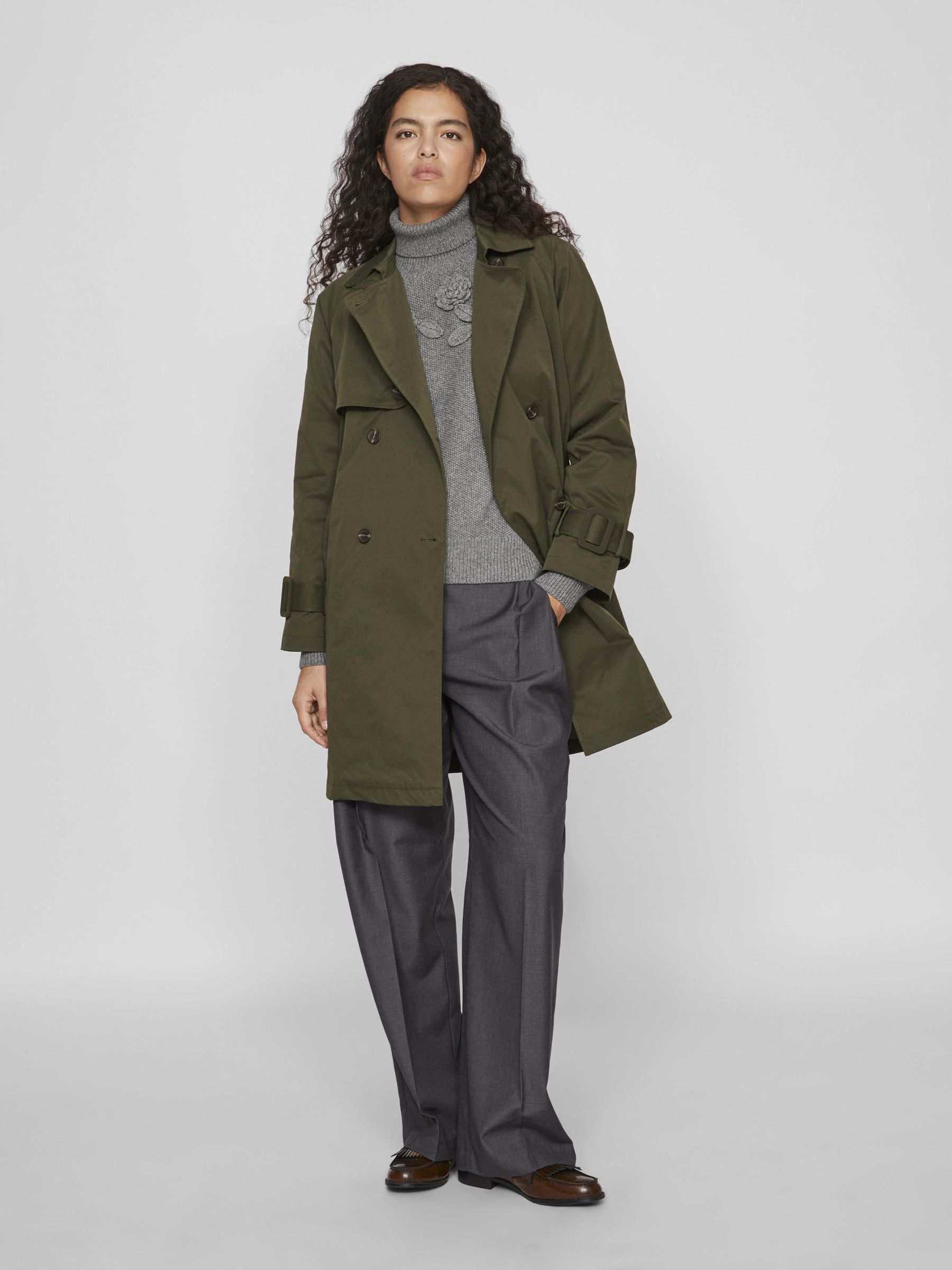 • Classic, belted trenchcoat• Double-breasted• Removable belt• Open pockets• Back slit detail• Belt detail at sleeves• Regular fit • Length: 96 cm in size 38• Sleeve length: 60 cm in size 38