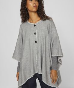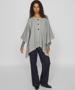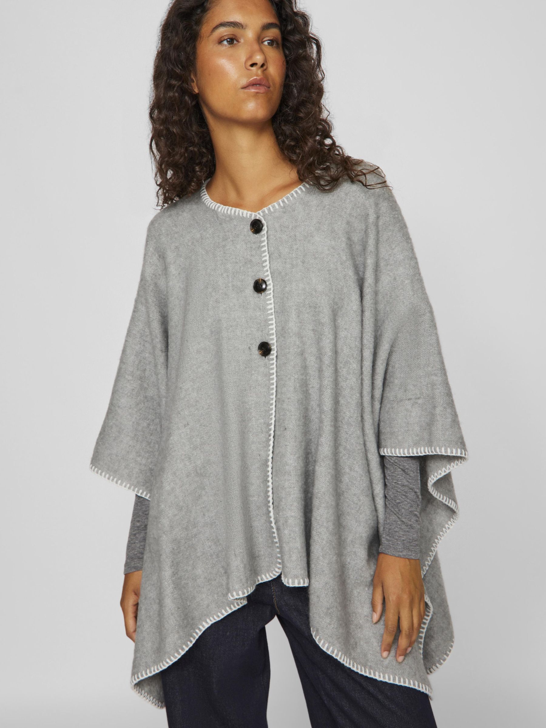 • Knitted poncho• Buttoned front• Stitch detail• Soft knit