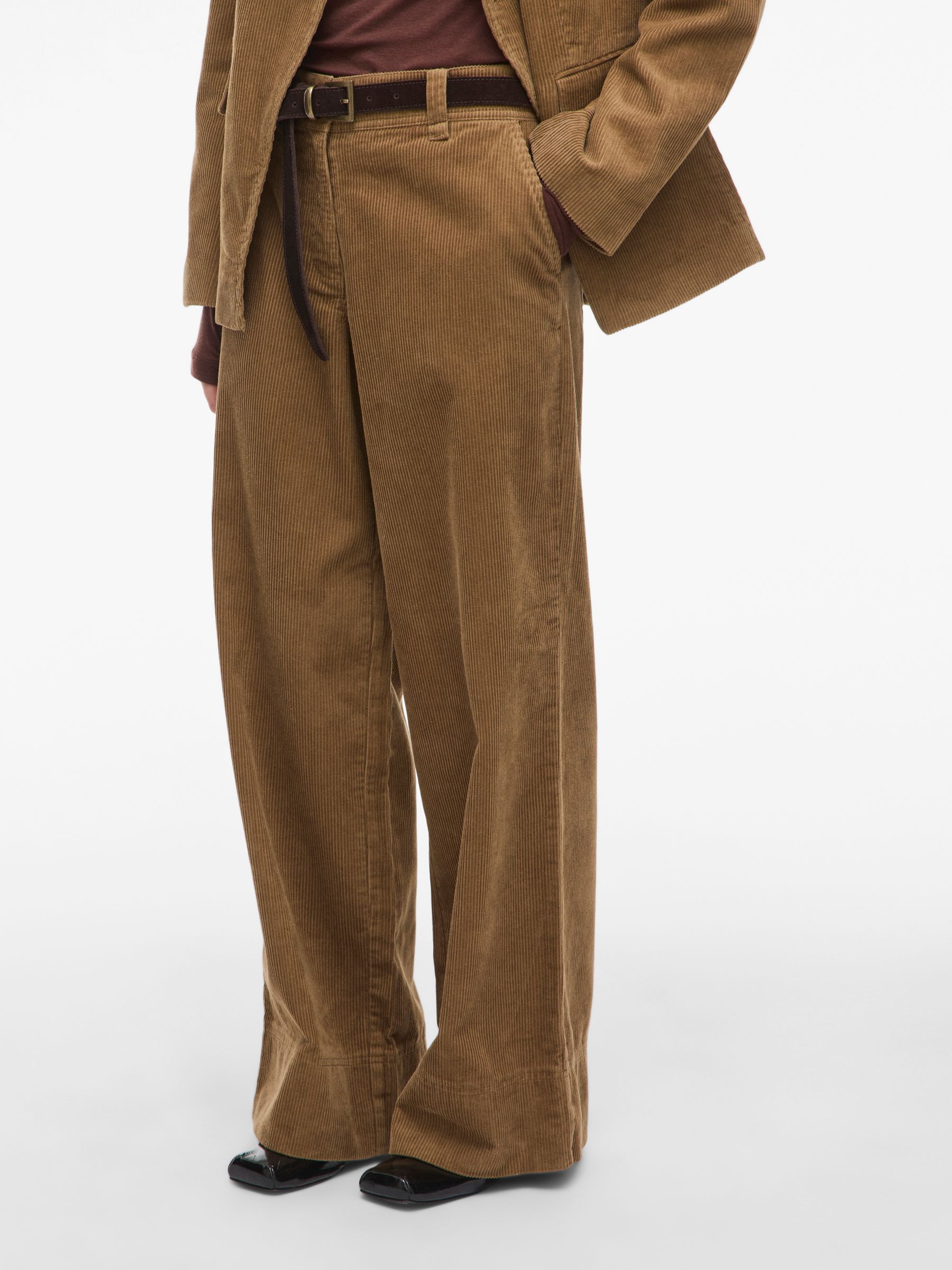 • Corduroy trousers• Mid-waist• Zip, button and clasp fastening• Side and back pockets• Belt loops• Wide-leg fit• Inseam: 81 cm in size 38• Frontrise: 28 cm in size 38