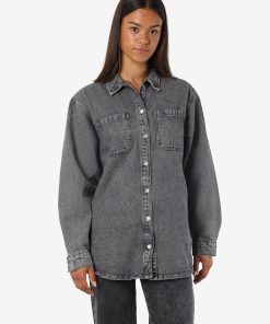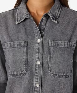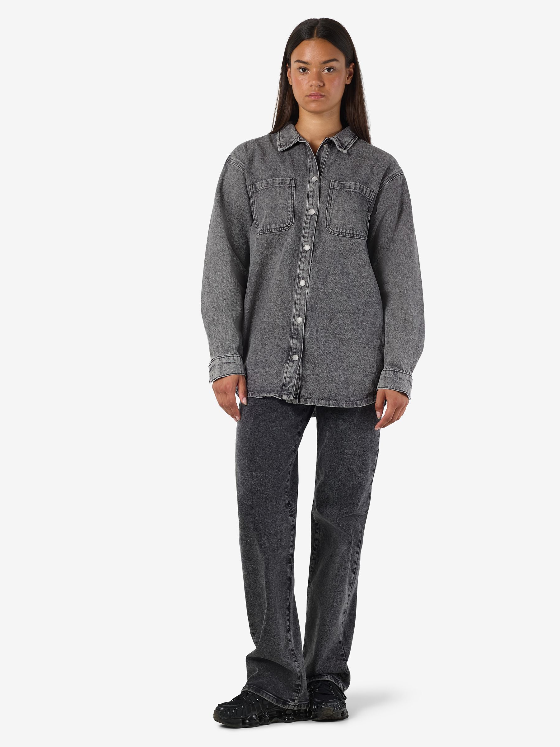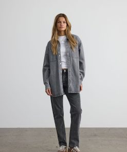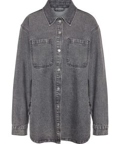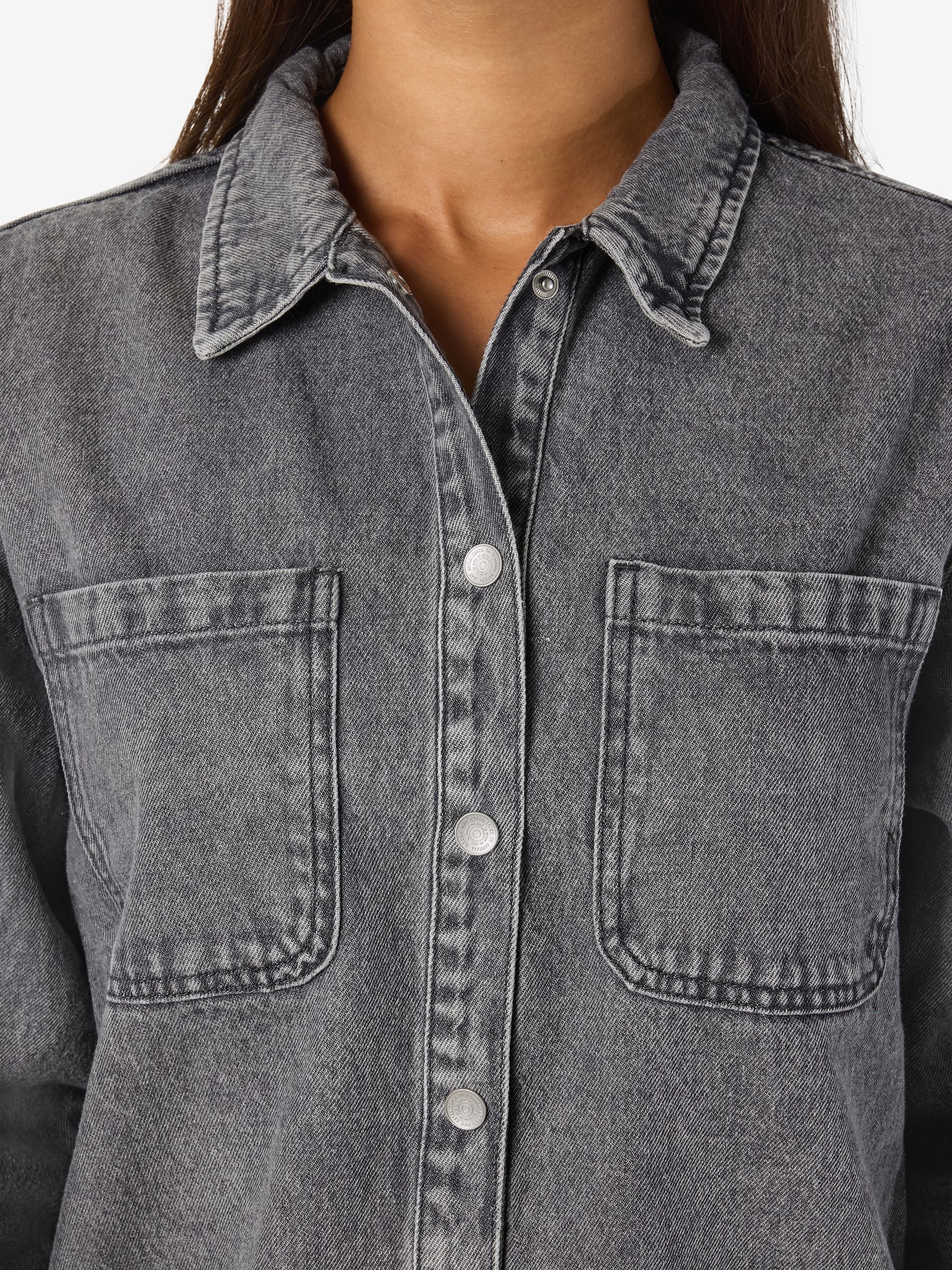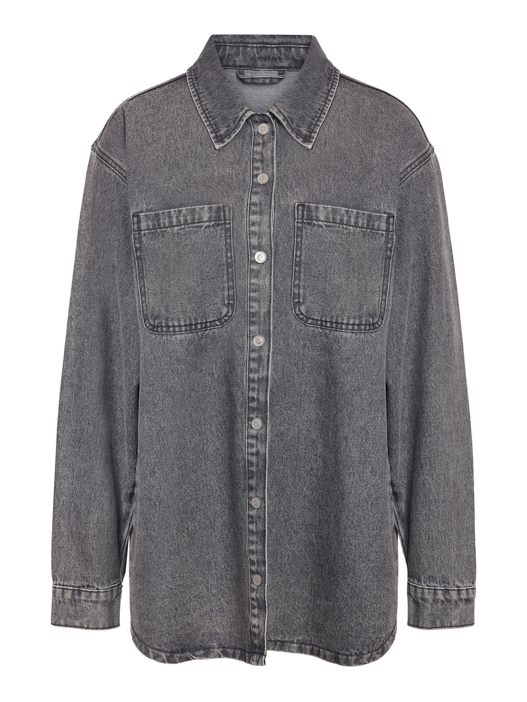 – Longline denim shacket- Regular collar- Dropped shoulders- Long sleeves- Buttoned cuffs- Patch pockets at chest- Button-up front- Relaxed fit- Model is 179cm tall and wearing size M