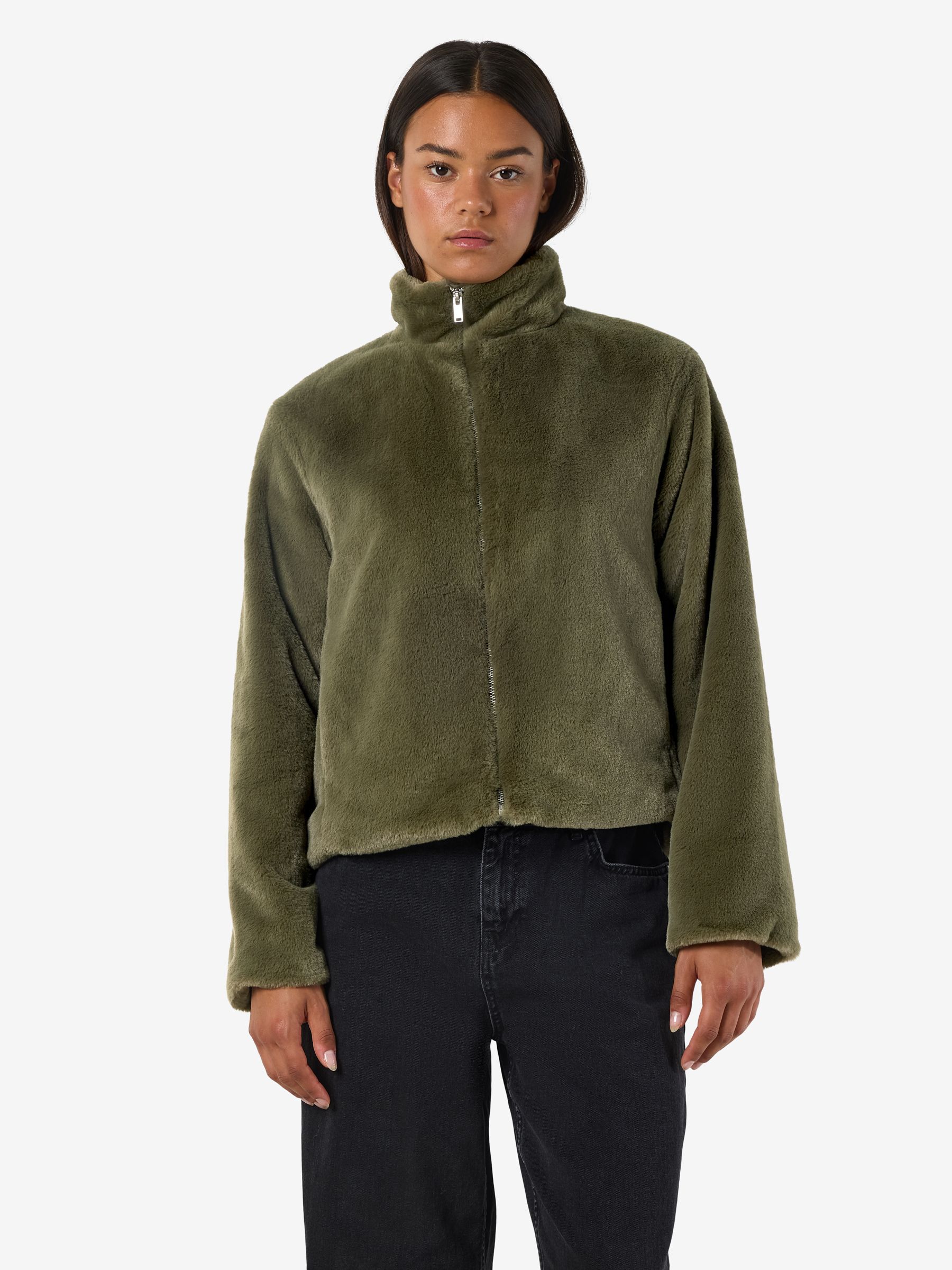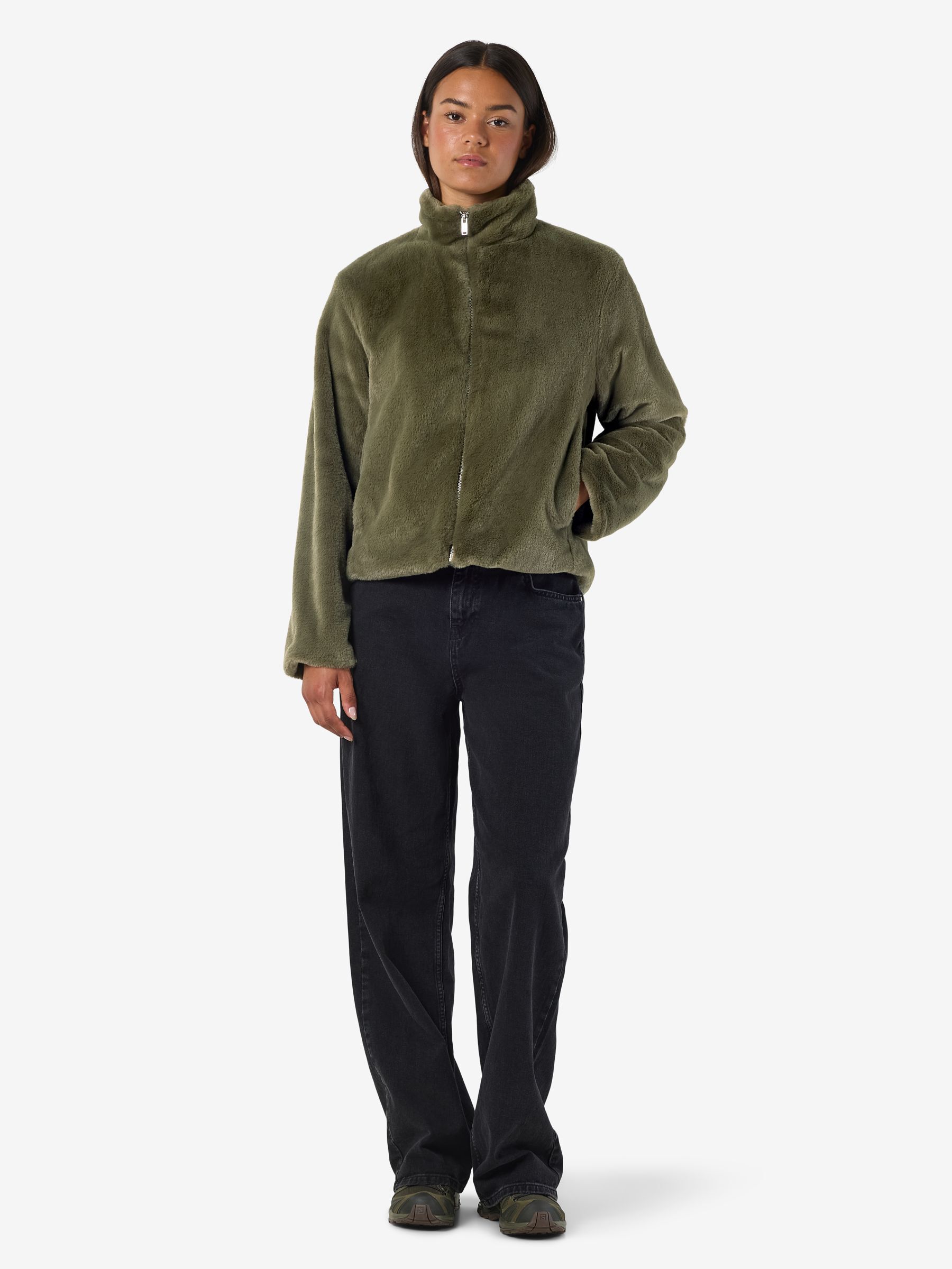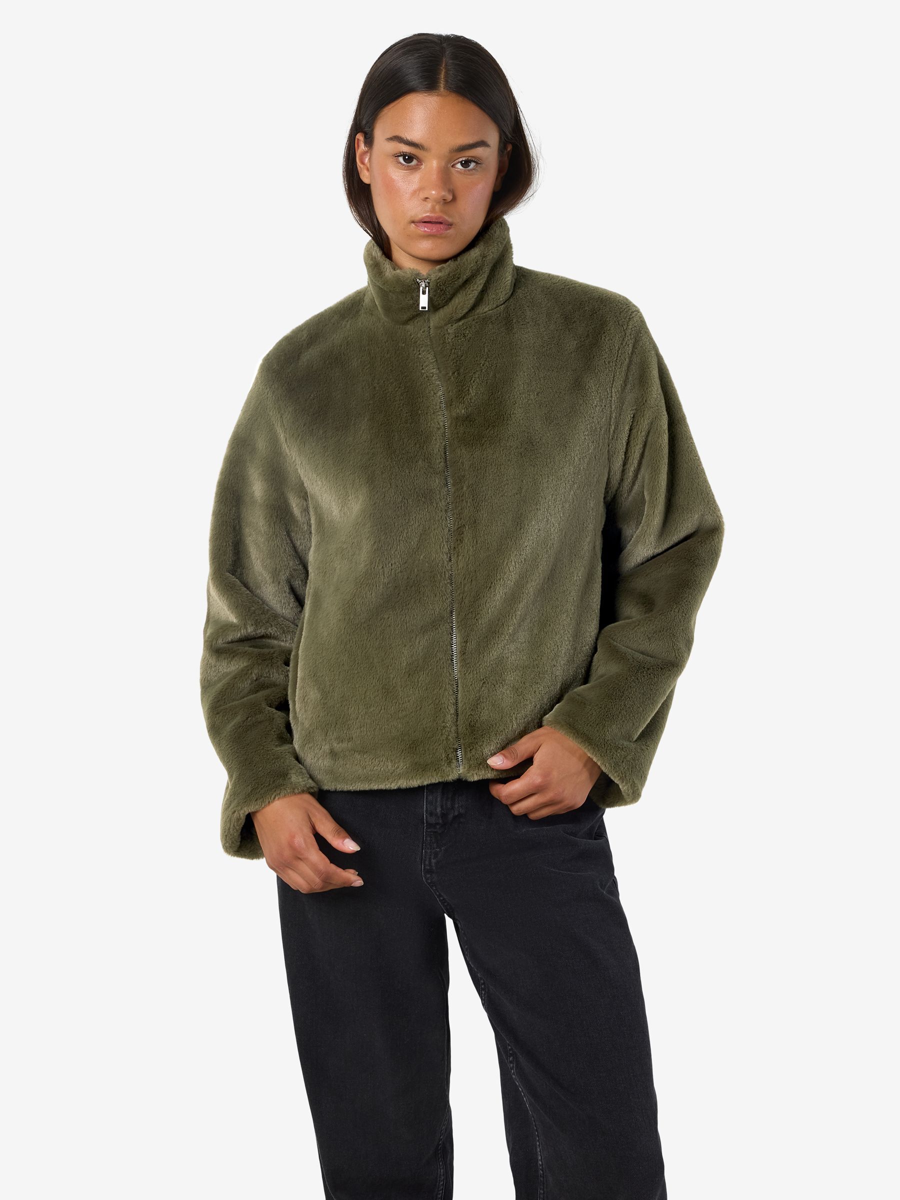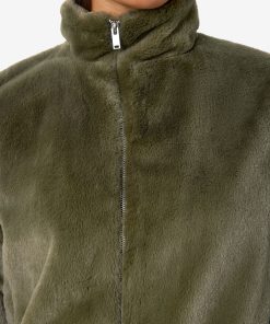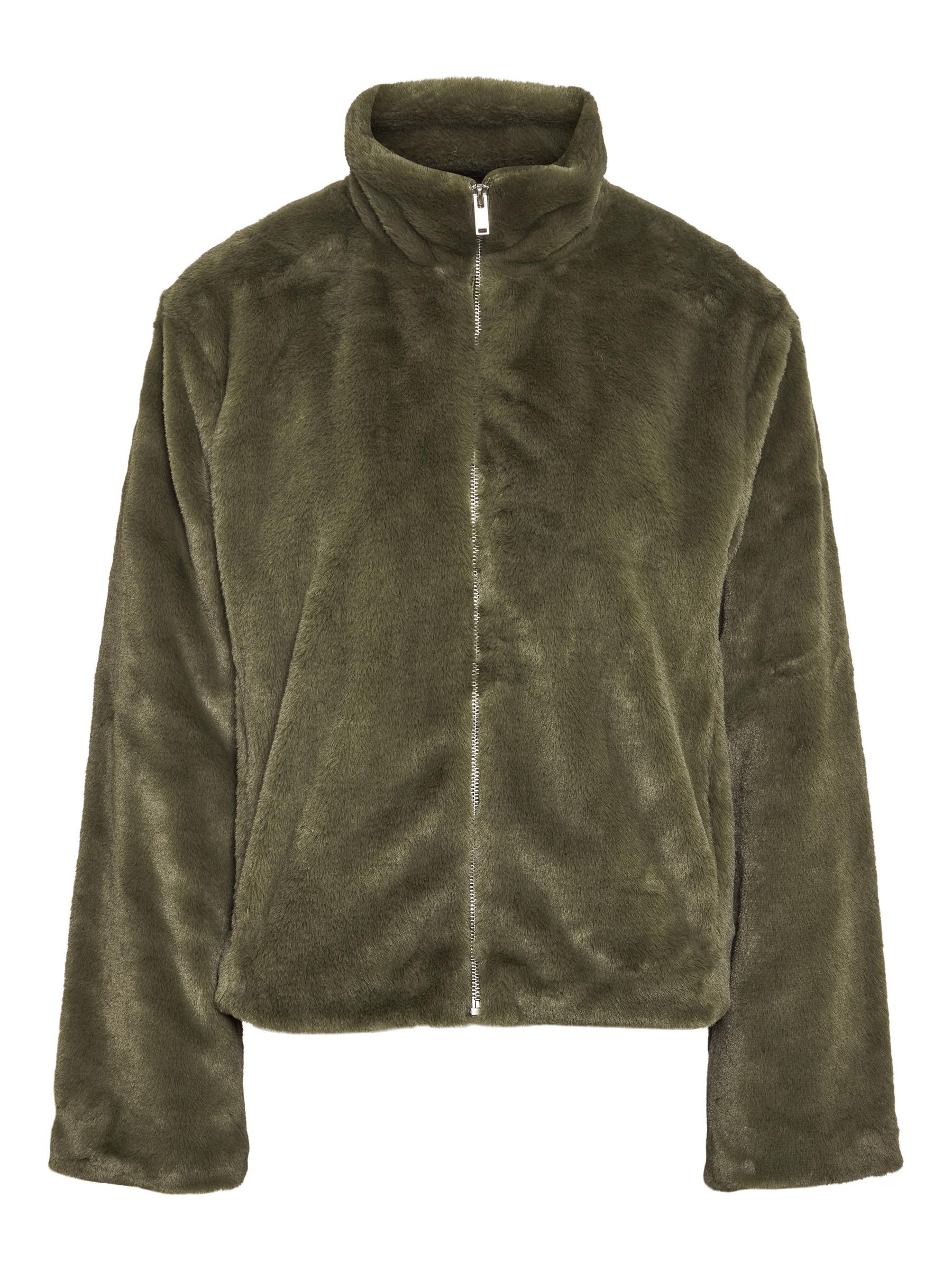 – Faux fur jacket- High neck- Dropped shoulders- Long sleeves- Zip-up front- Front pockets- Lined- Regular fit- Model is 179cm tall and wearing size M