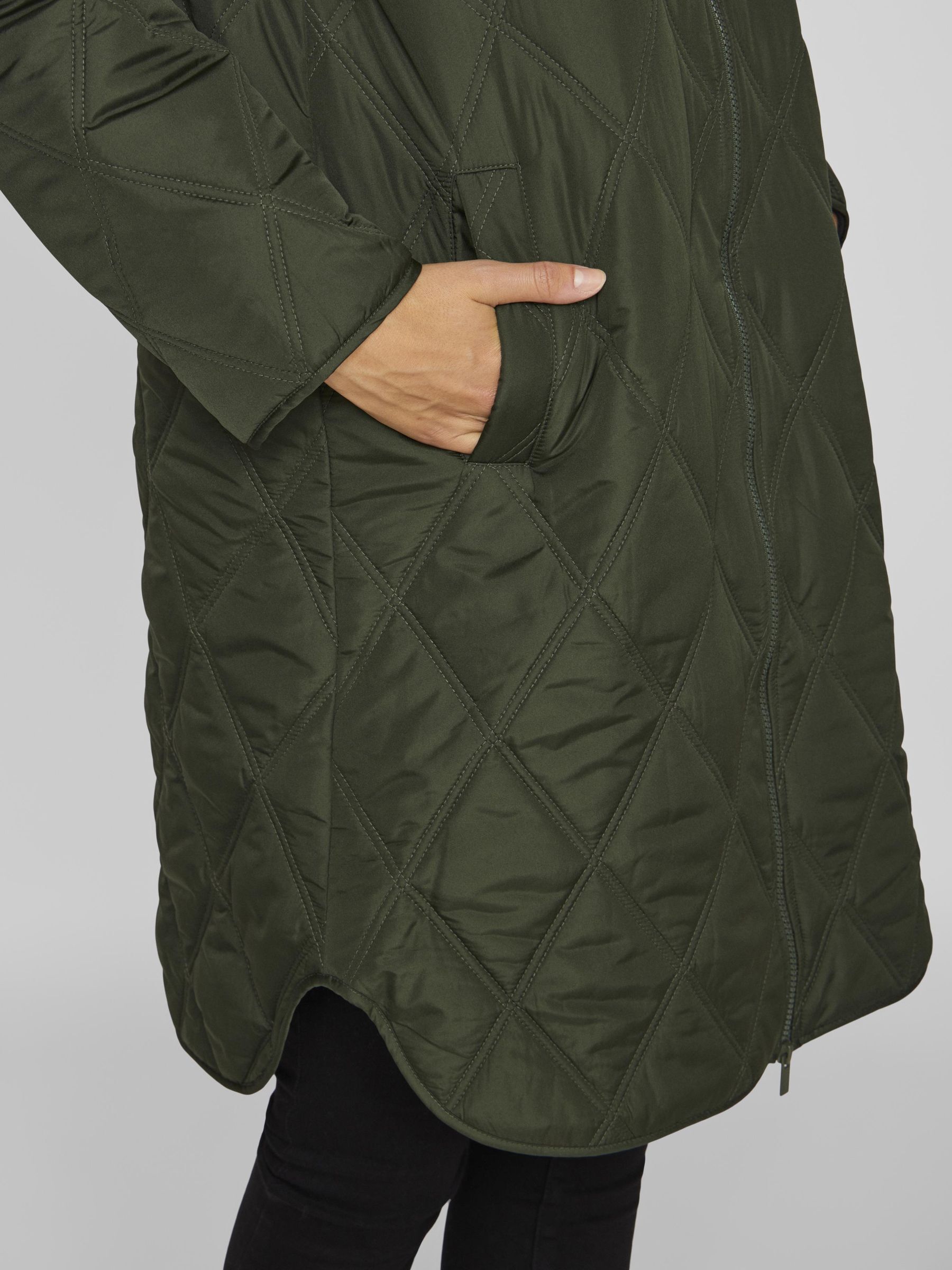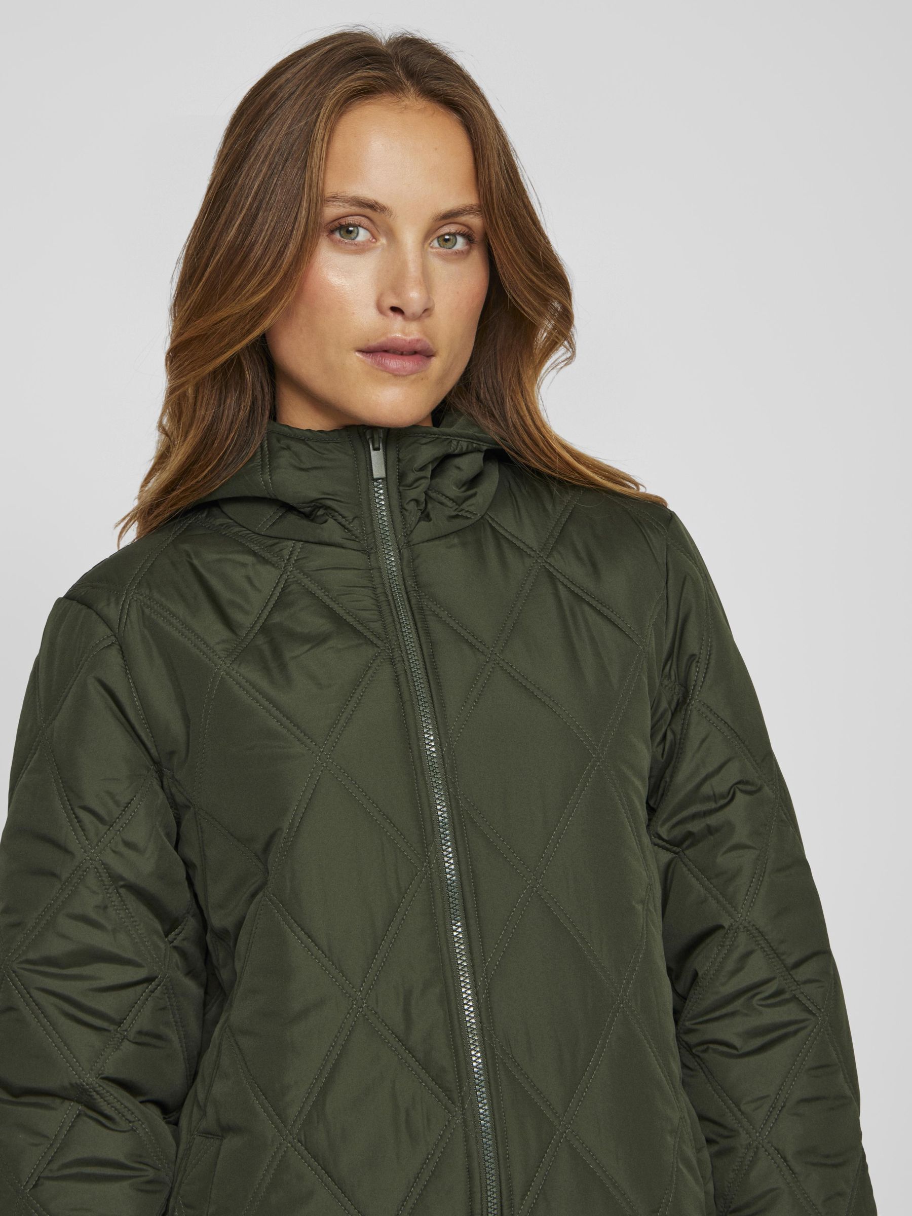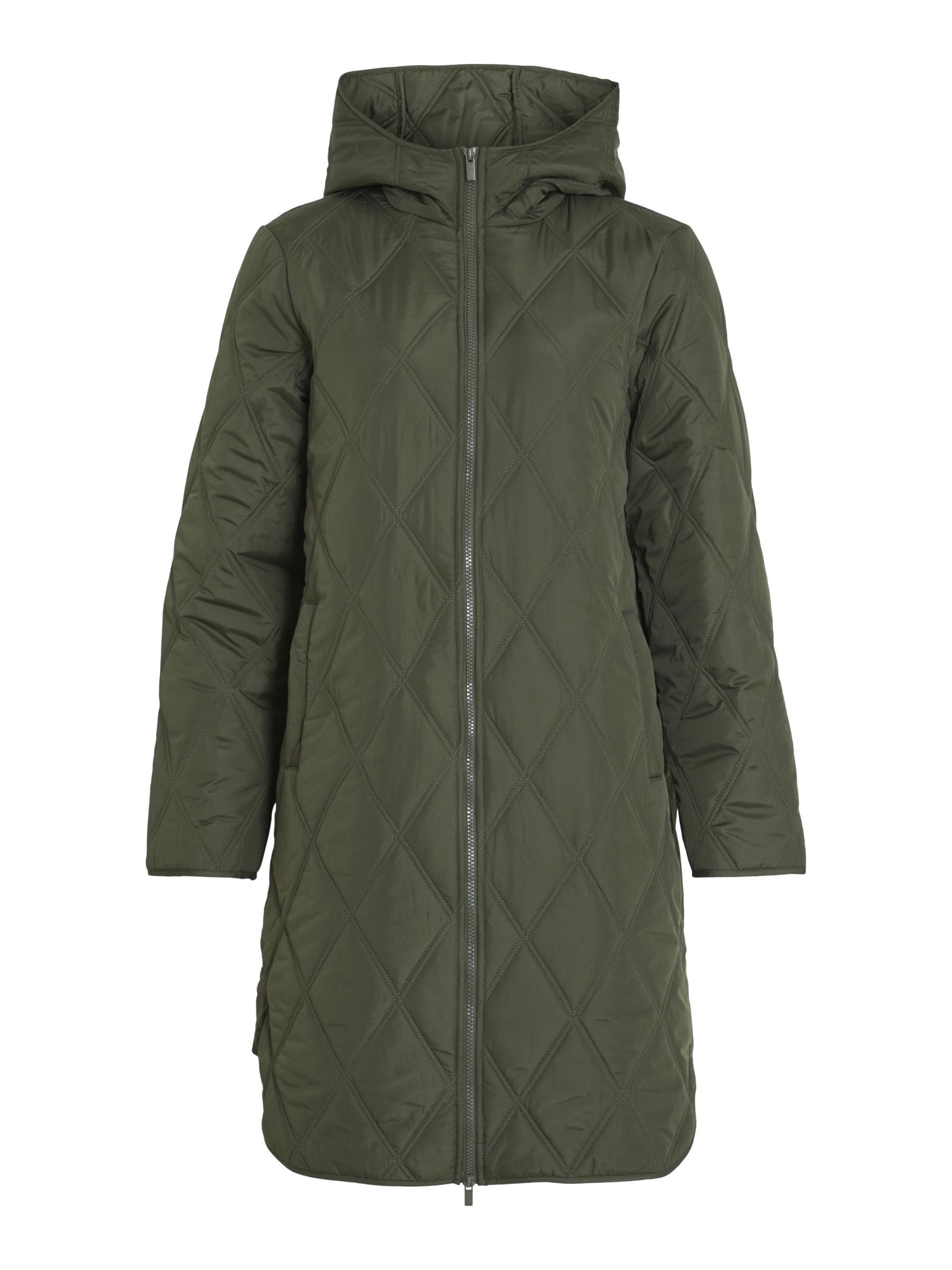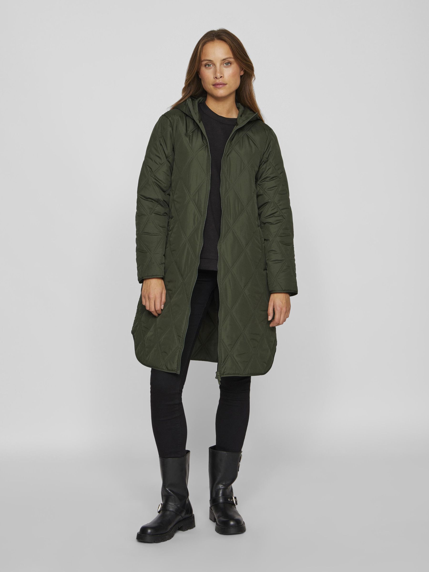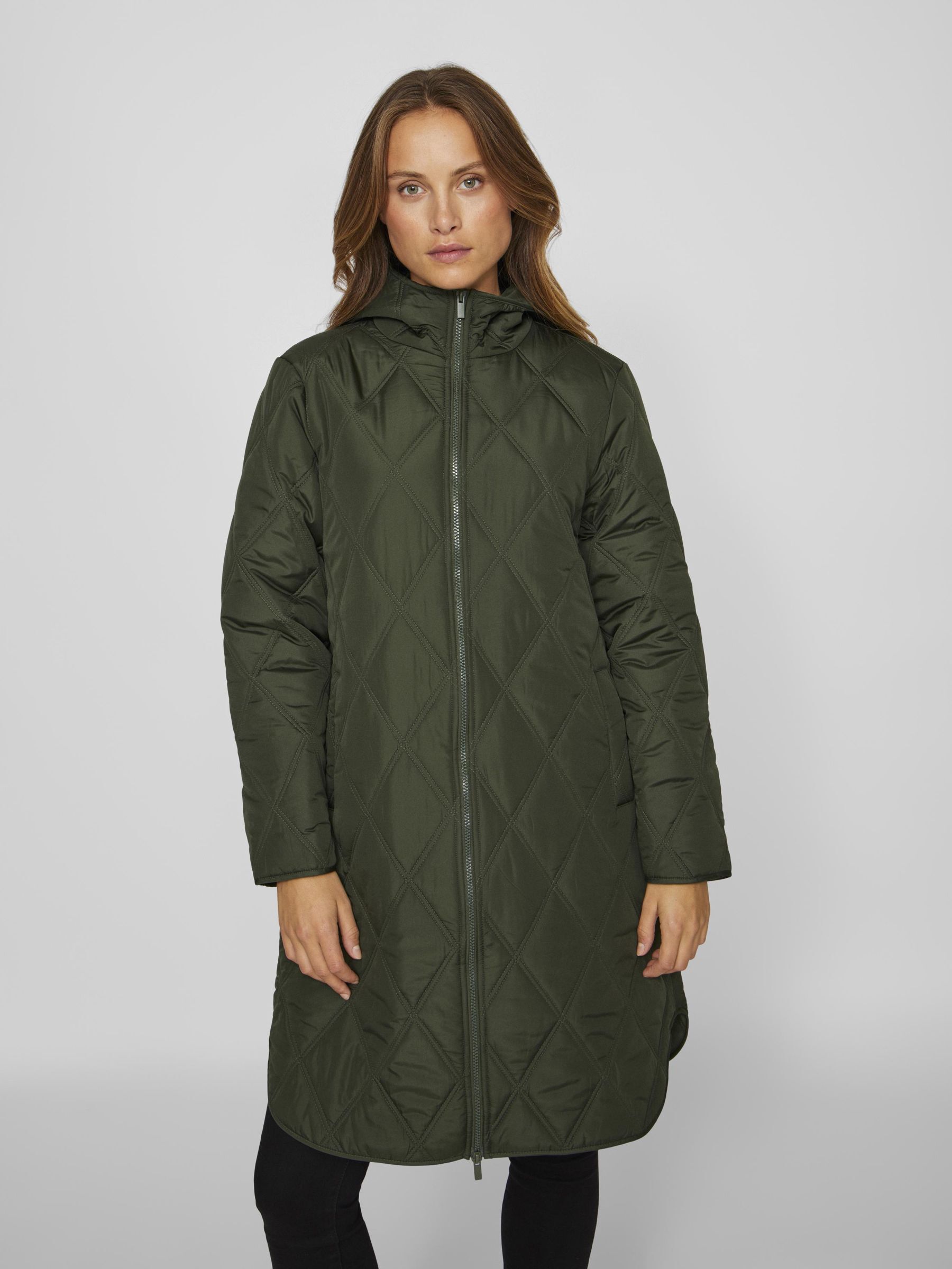 • Quilted coat with hood• Front zipper closure• Zipper open from top and bottom• Open front pockets• Regular fit• Length: 100 cm in size 38• Sleeve length: 62 cm in size 38