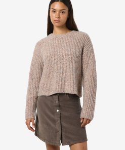 – Knitted jumper- Melange design- Round neck- Dropped shoulders- Long sleeves- Ribbed trims- Regular fit- Model is wearing size M