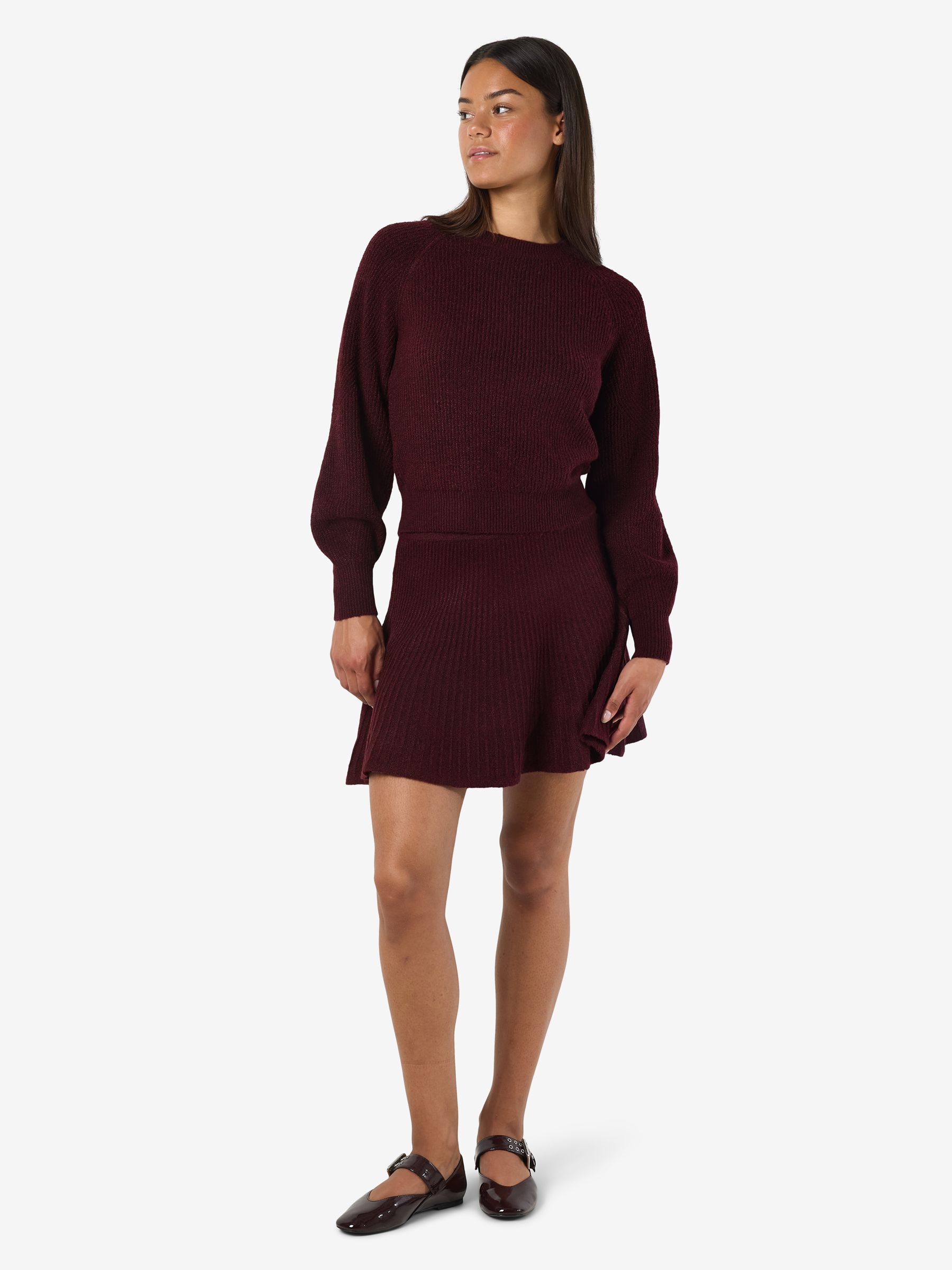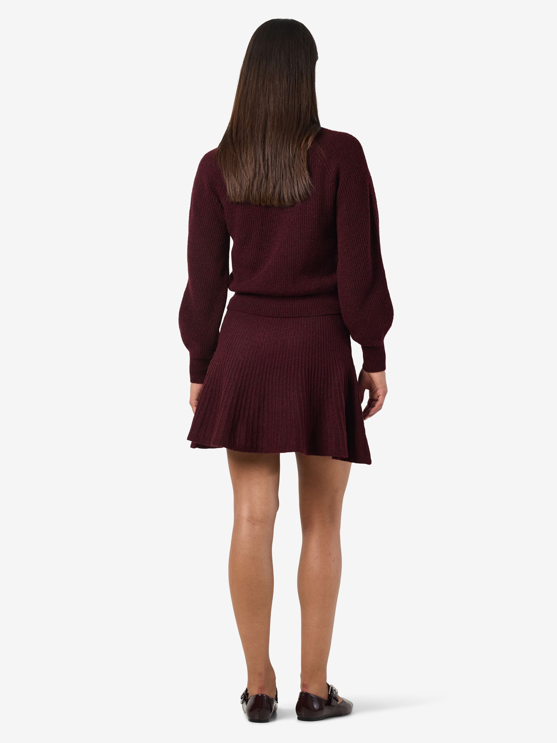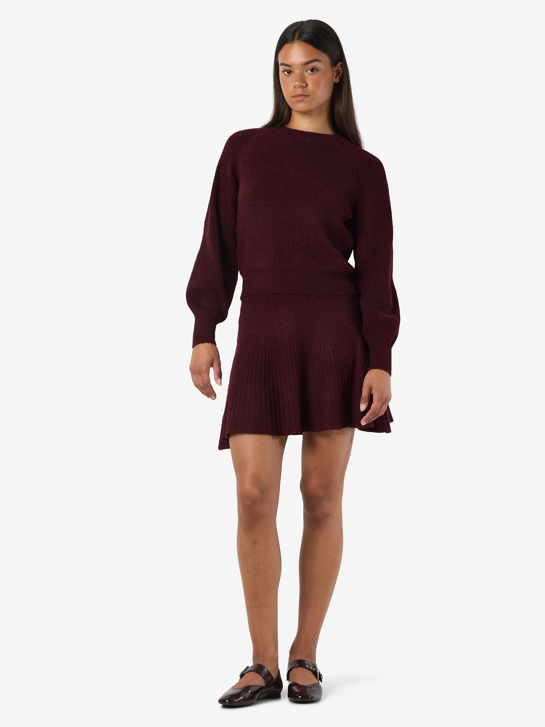 – Mini length knitted skirt- Mid rise elasticated waist- Loose pleats- Ribbed knit- Regular fit- Model is wearing size M
