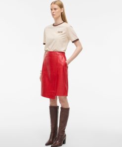 VILA Women’s Leather Mini Skirt | Chinese Red
