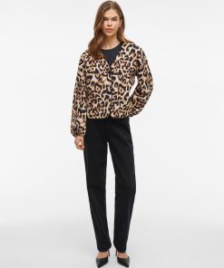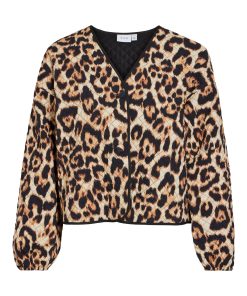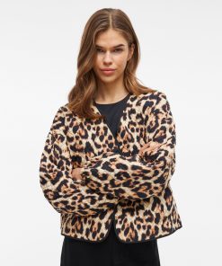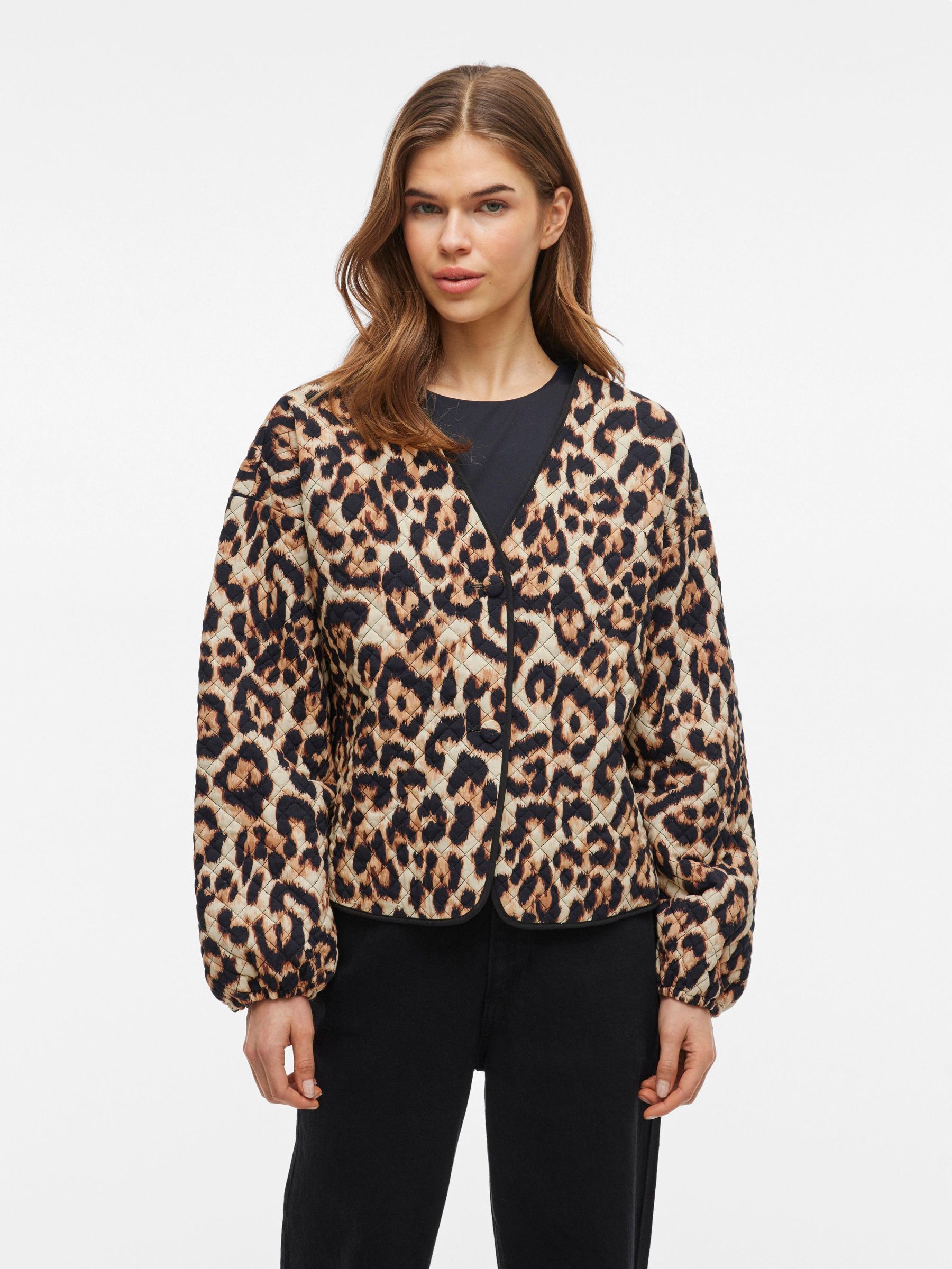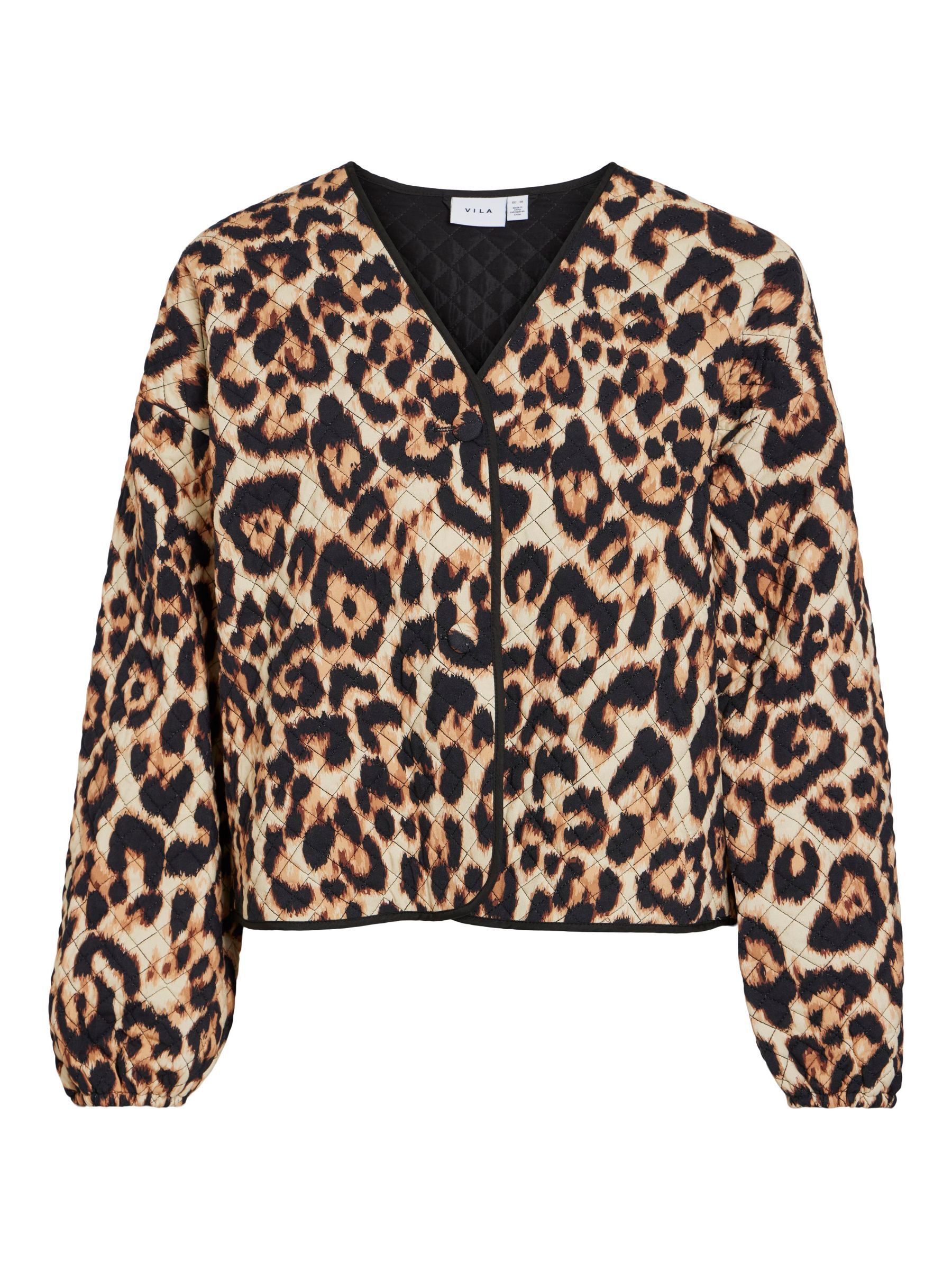 VILA Women’s Leopard Print Quilted Jacket | Black