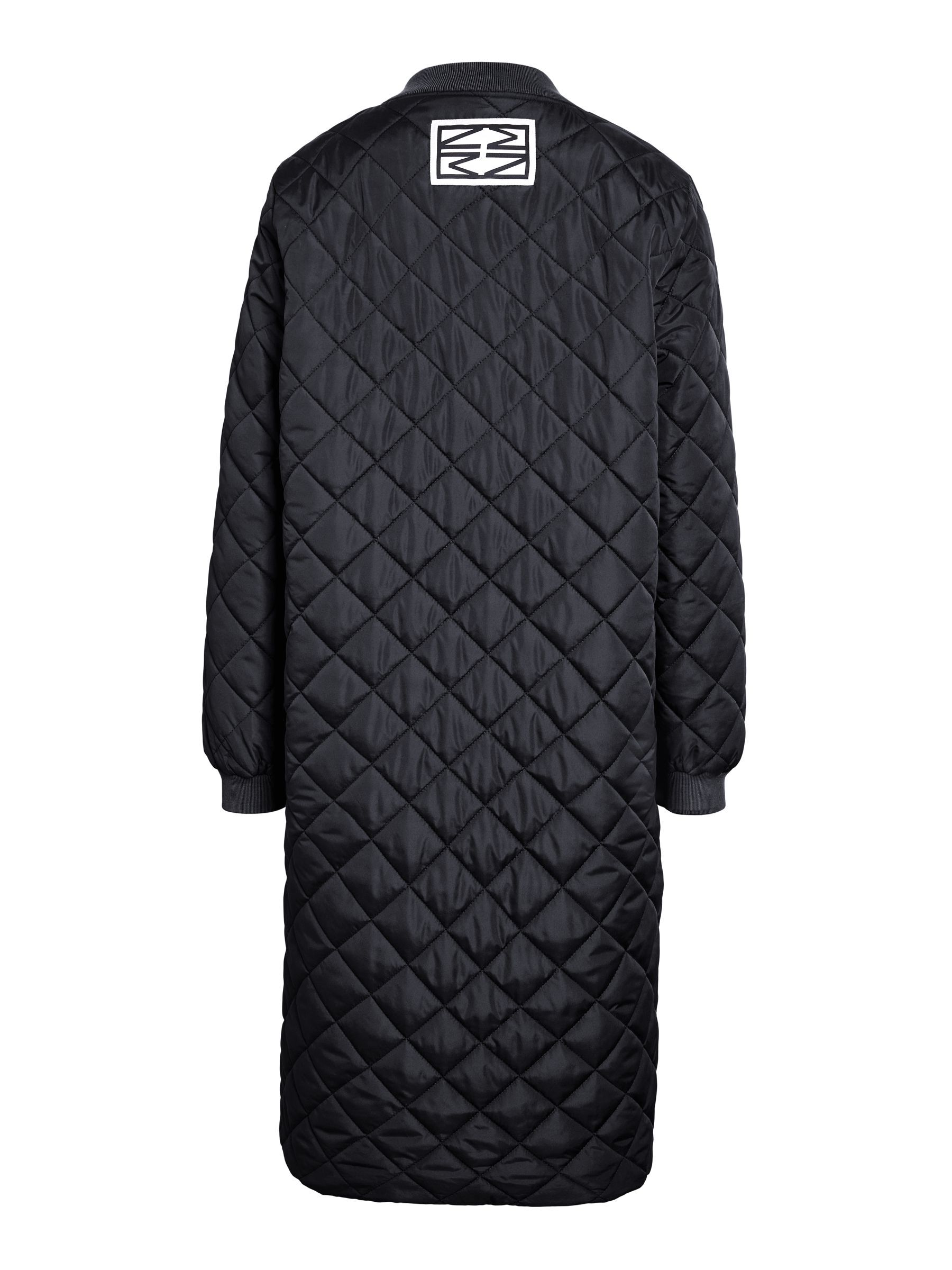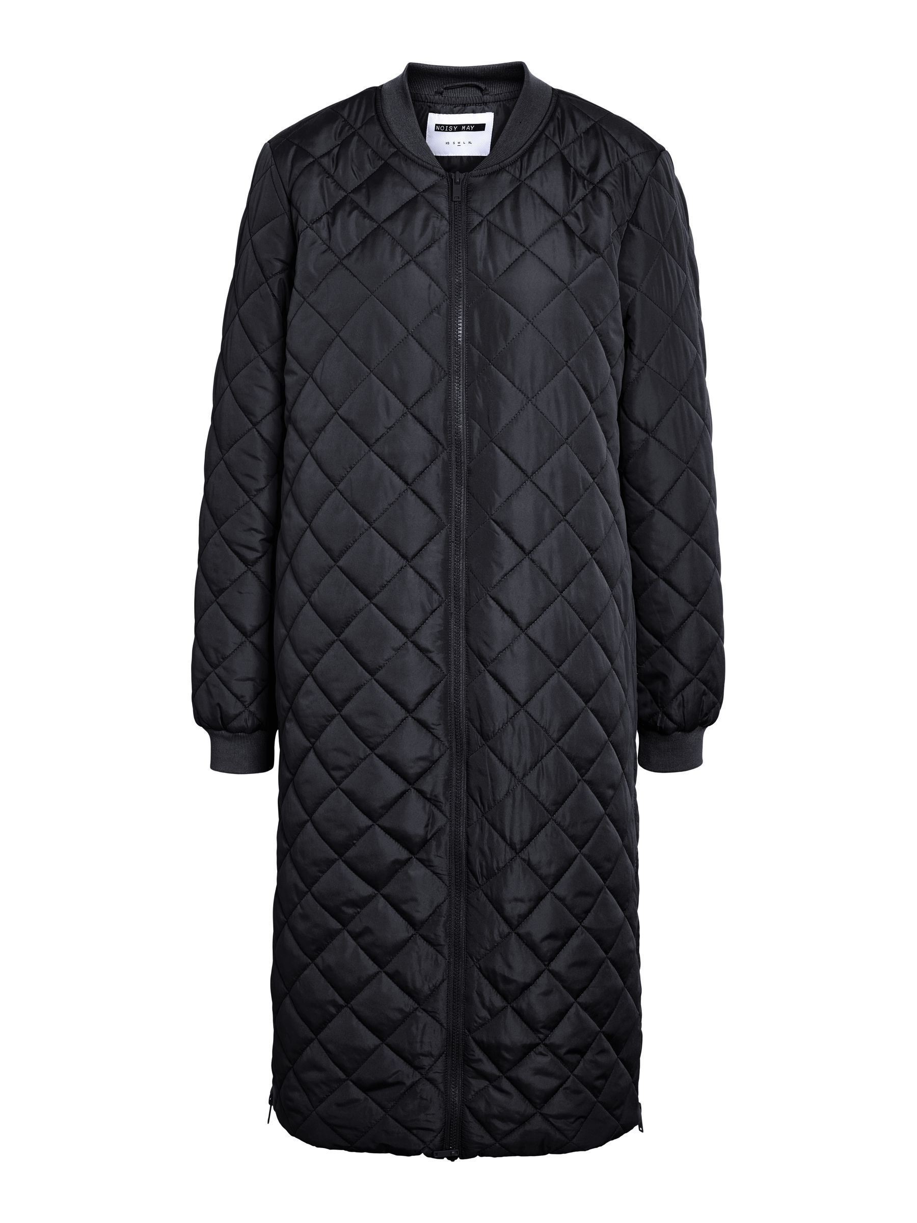 – Longline quilted jacket- Baseball collar- Long sleeves with knitted elasticated cuffs- Zip-up front- Side zip detail- Lined- Regular fit- Model is wearing size M
