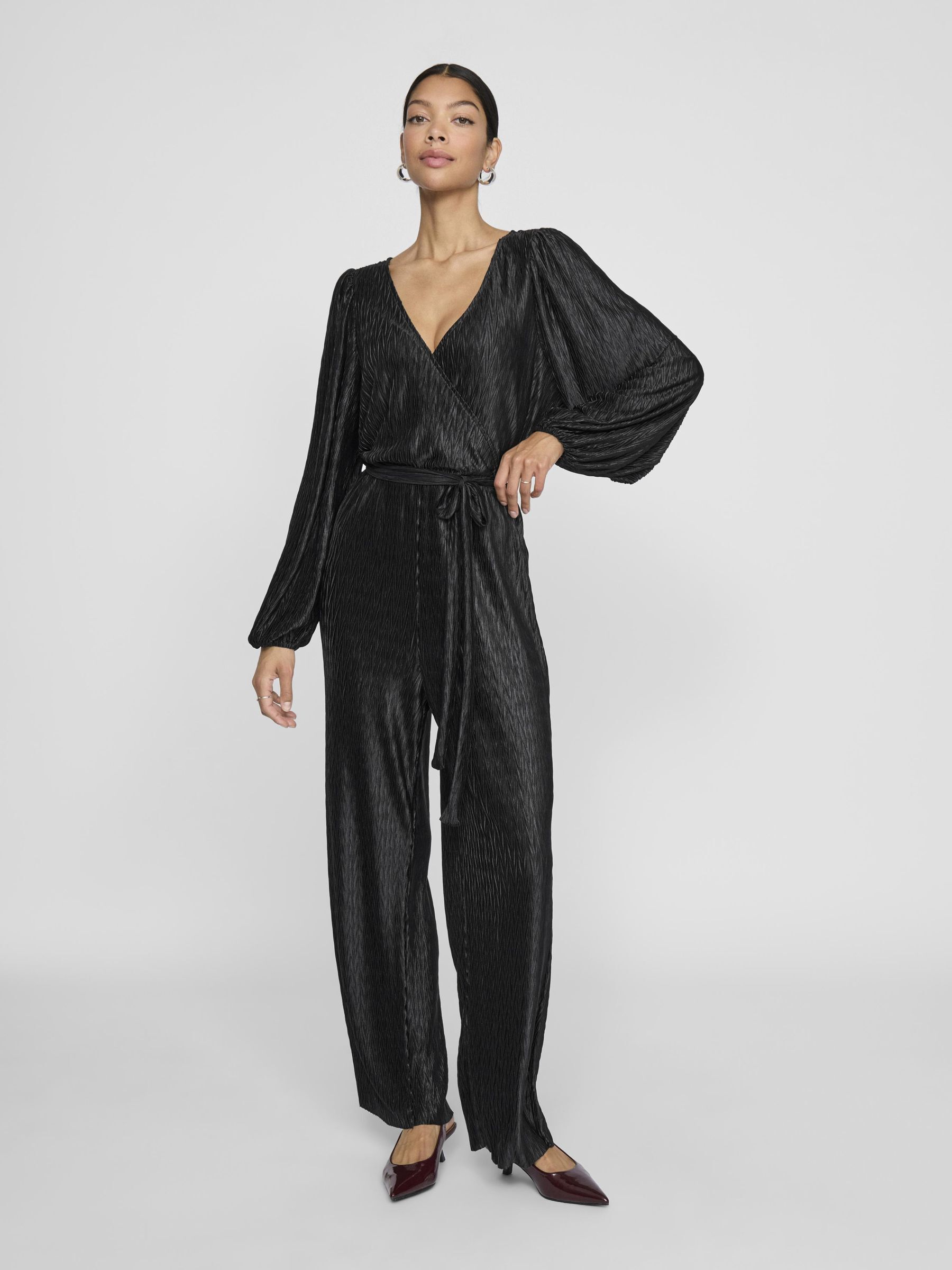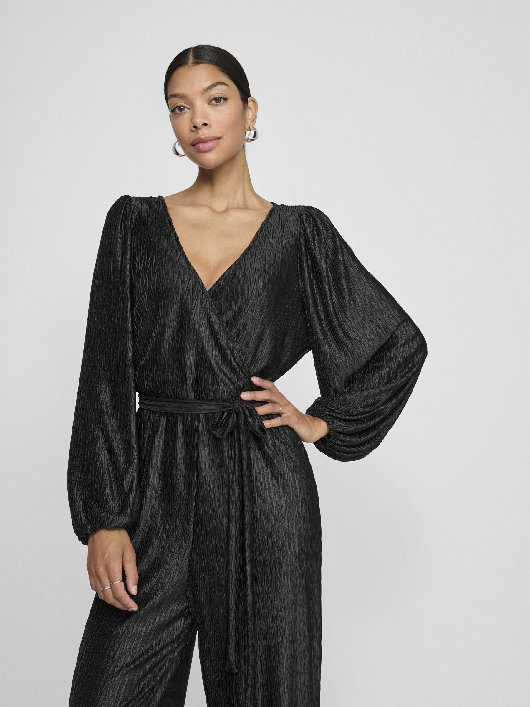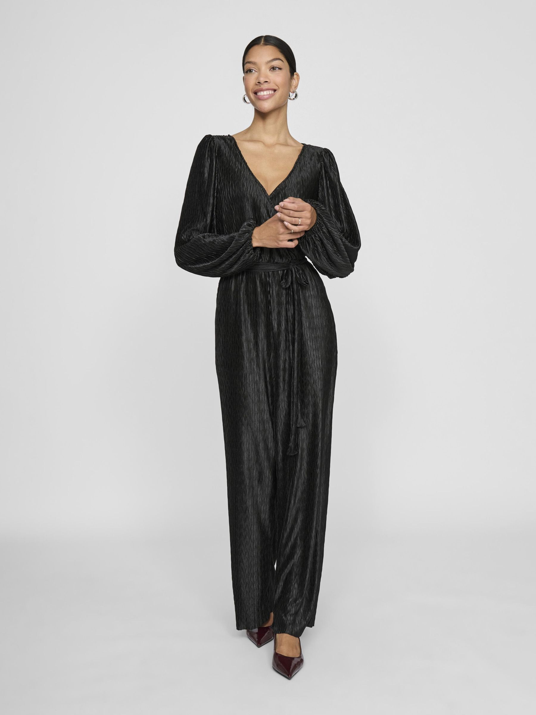 • Party jumpsuit with long sleeves• V-neck• Tie waist with removable belt• Elastic cuffs• Elastic cutline at waist• Pleated look• Light fabric• Regular fit• Inseam: 73 cm in size M• Frontrise: 32 cm in size M• Sleeve length: 70 cm in size M