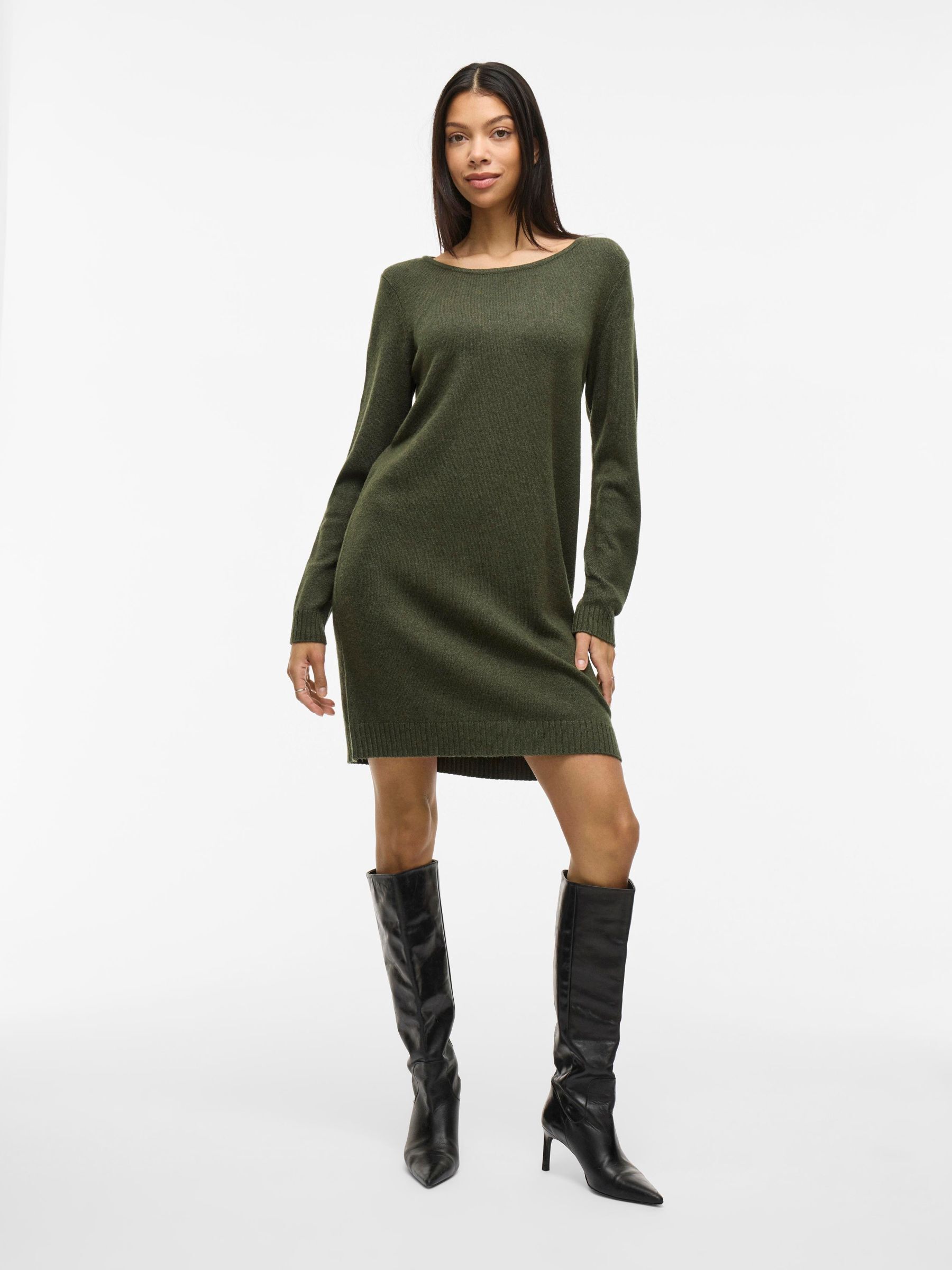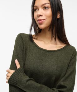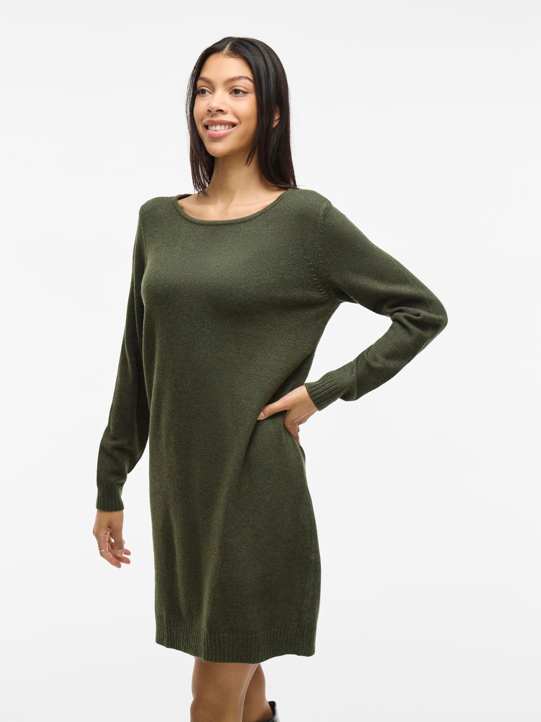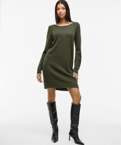 VILA Women’s Long Sleeved Knitted Dress | Forest Night