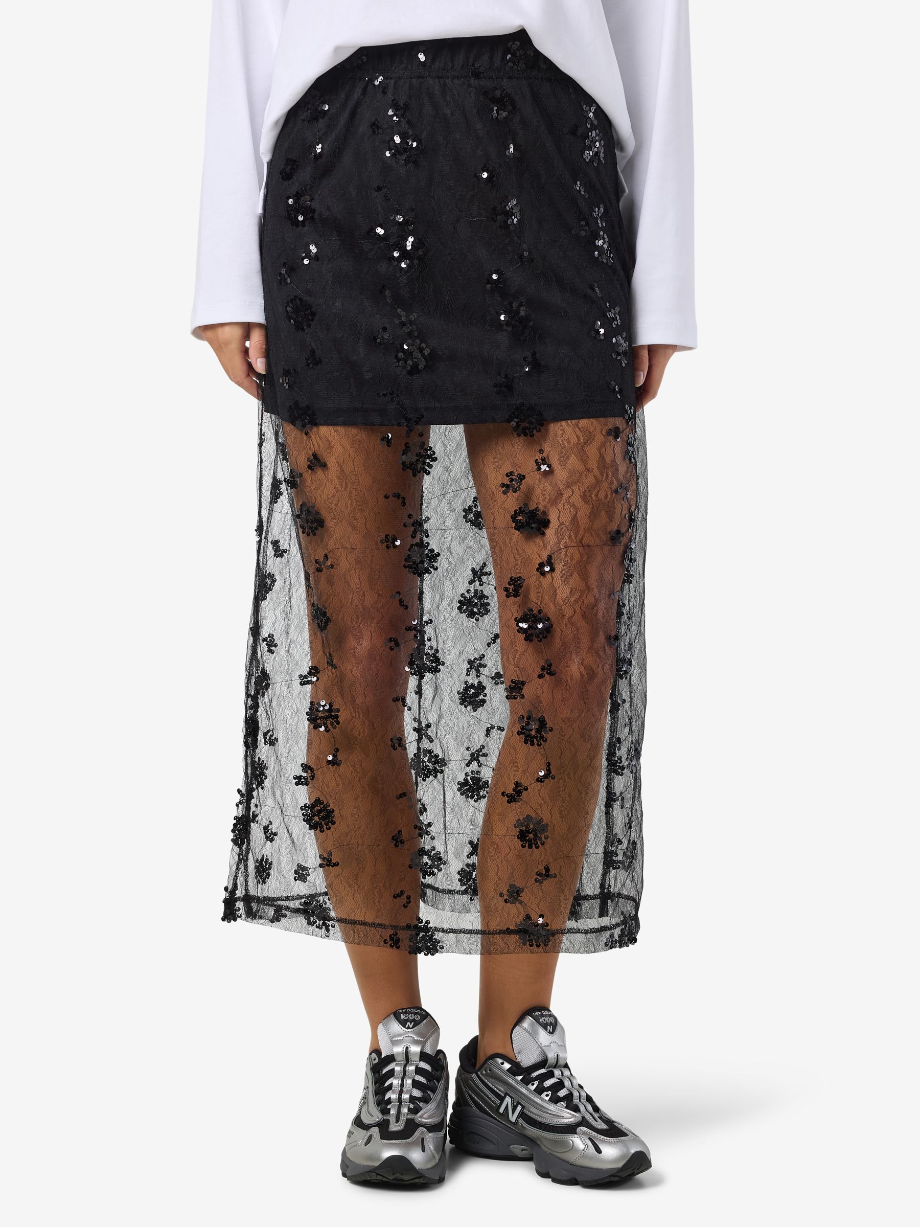– Sequin mesh maxi skirt- Elasticated waist- Half lined- Floral design- Regular fit
