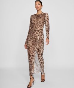 • Leopard print mesh dress• Midi-length• Long sleeves• Round neck• Slit detail• Lined body with sheer overlay• Regular fit• Length: 145 cm in size 38• Sleeve length: 68 cm in size 38