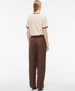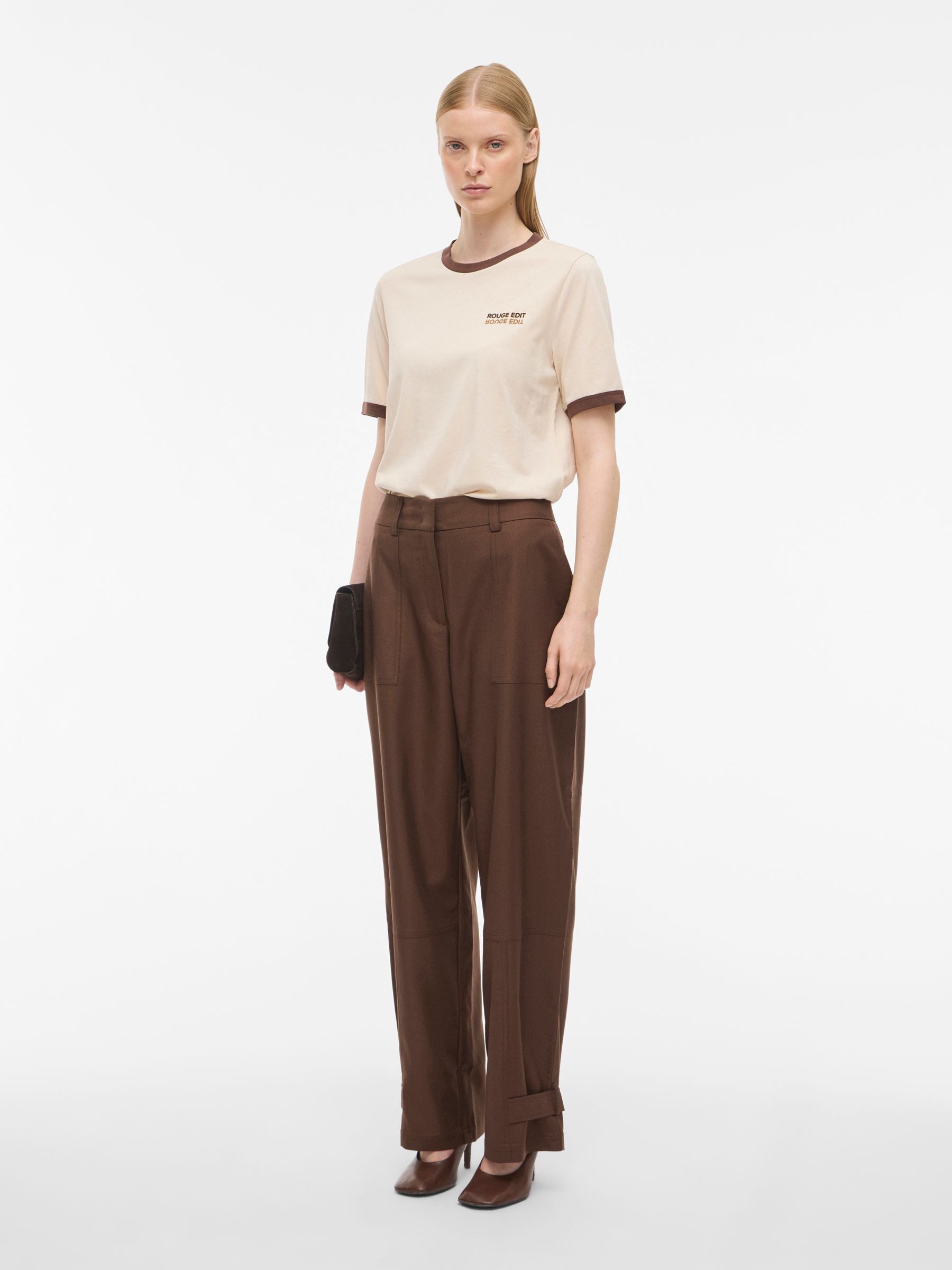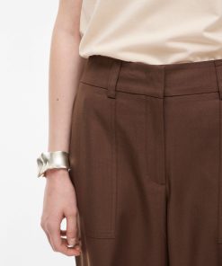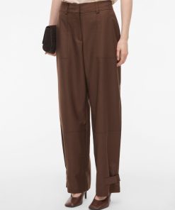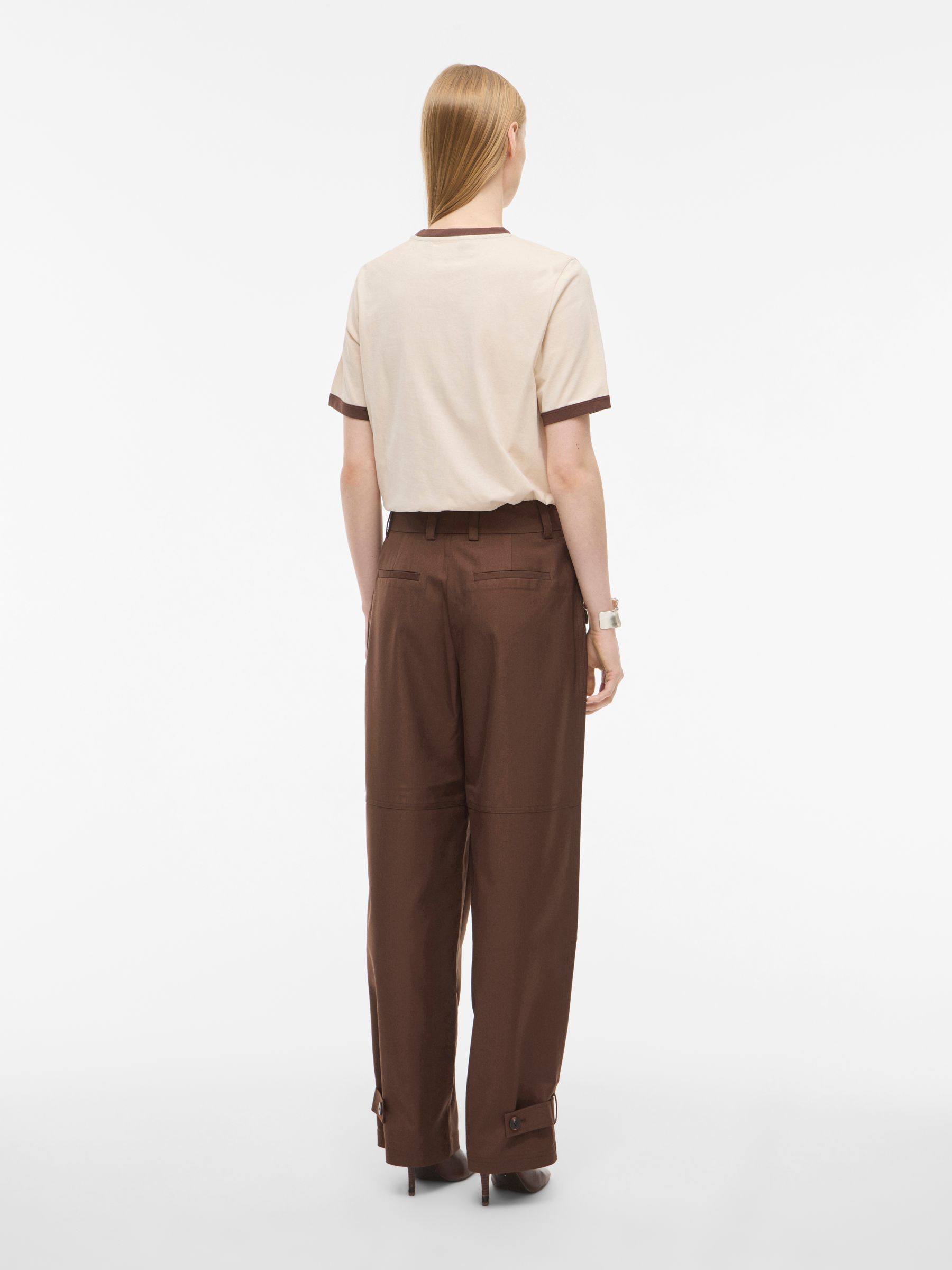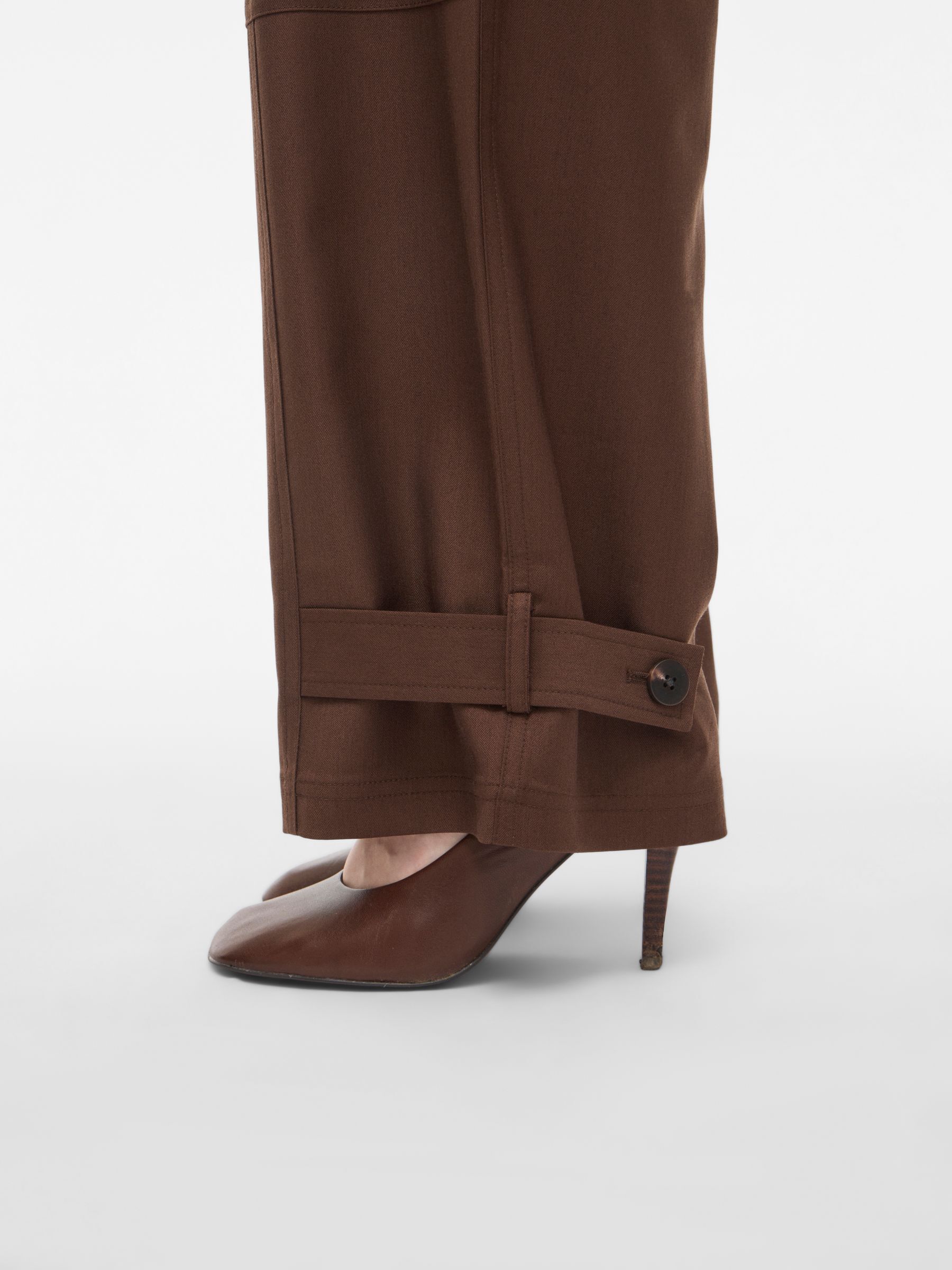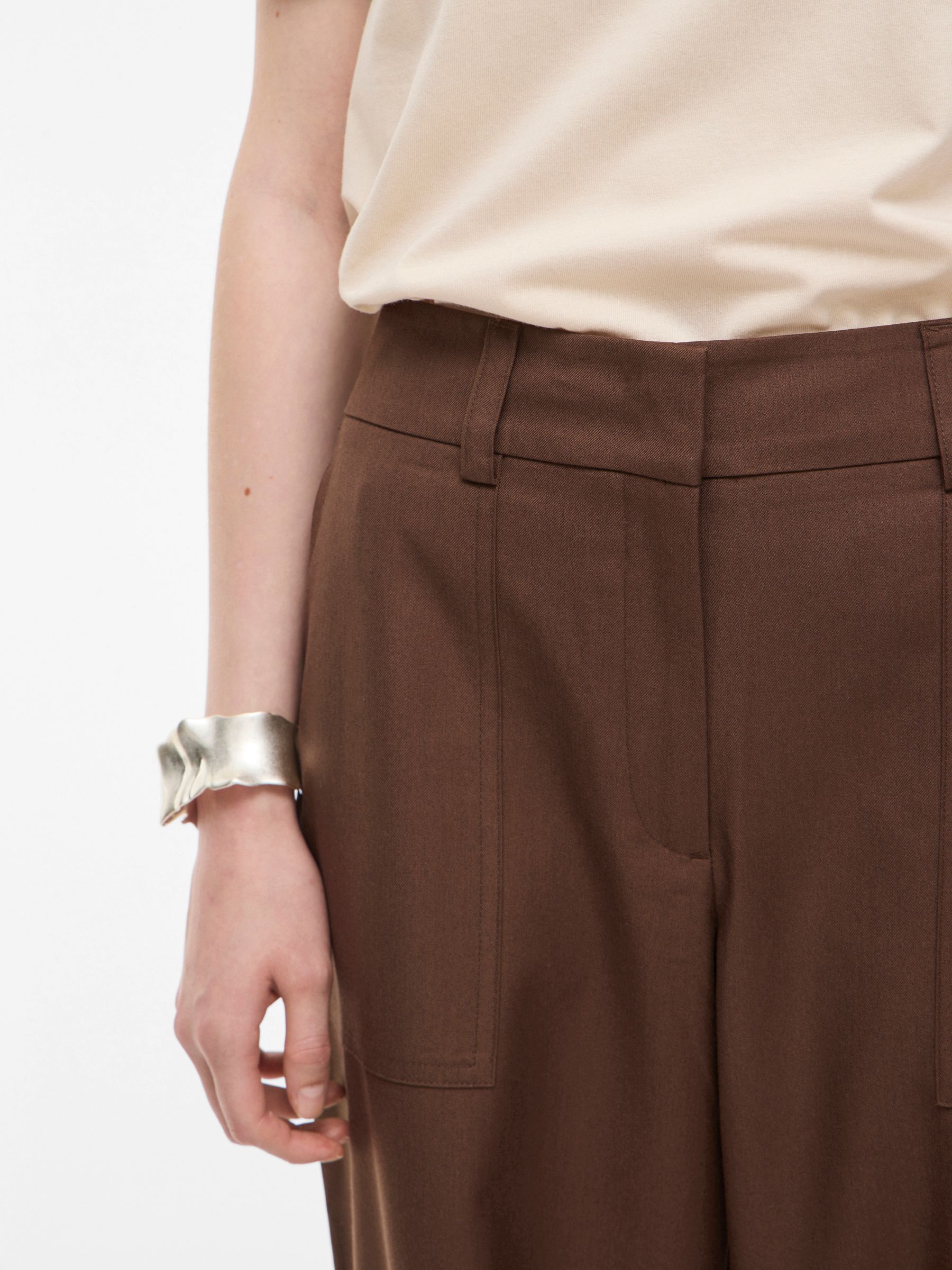 • Mid-waist trousers• Zip, button and clasp fastening• Side pockets• Decorative back pockets• Belt loops• Loose fit• Inseam: 81 cm in size 38• Frontrise: 28 cm in size 38