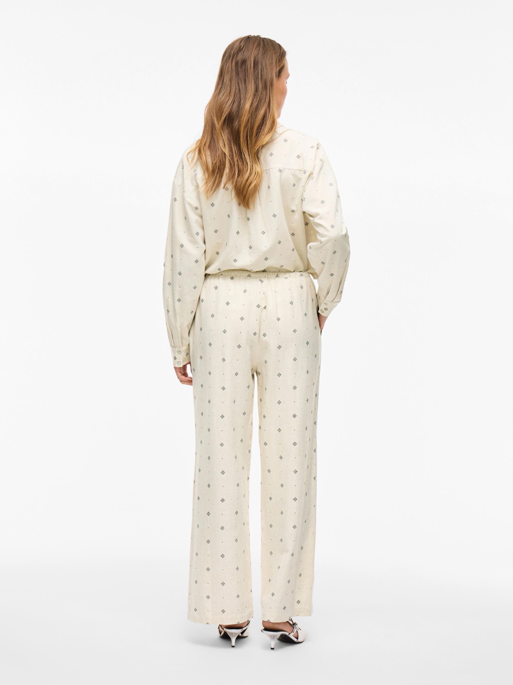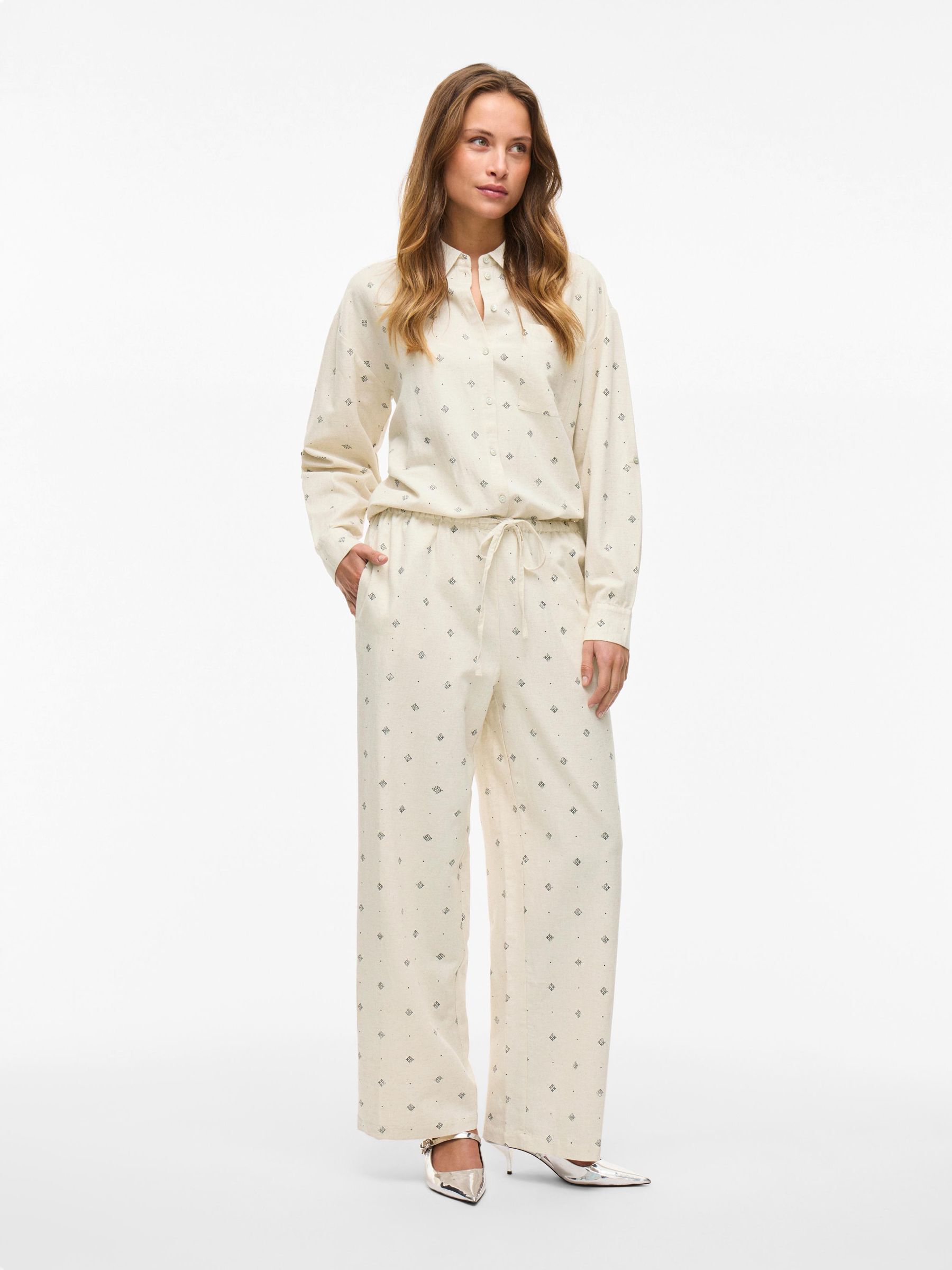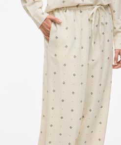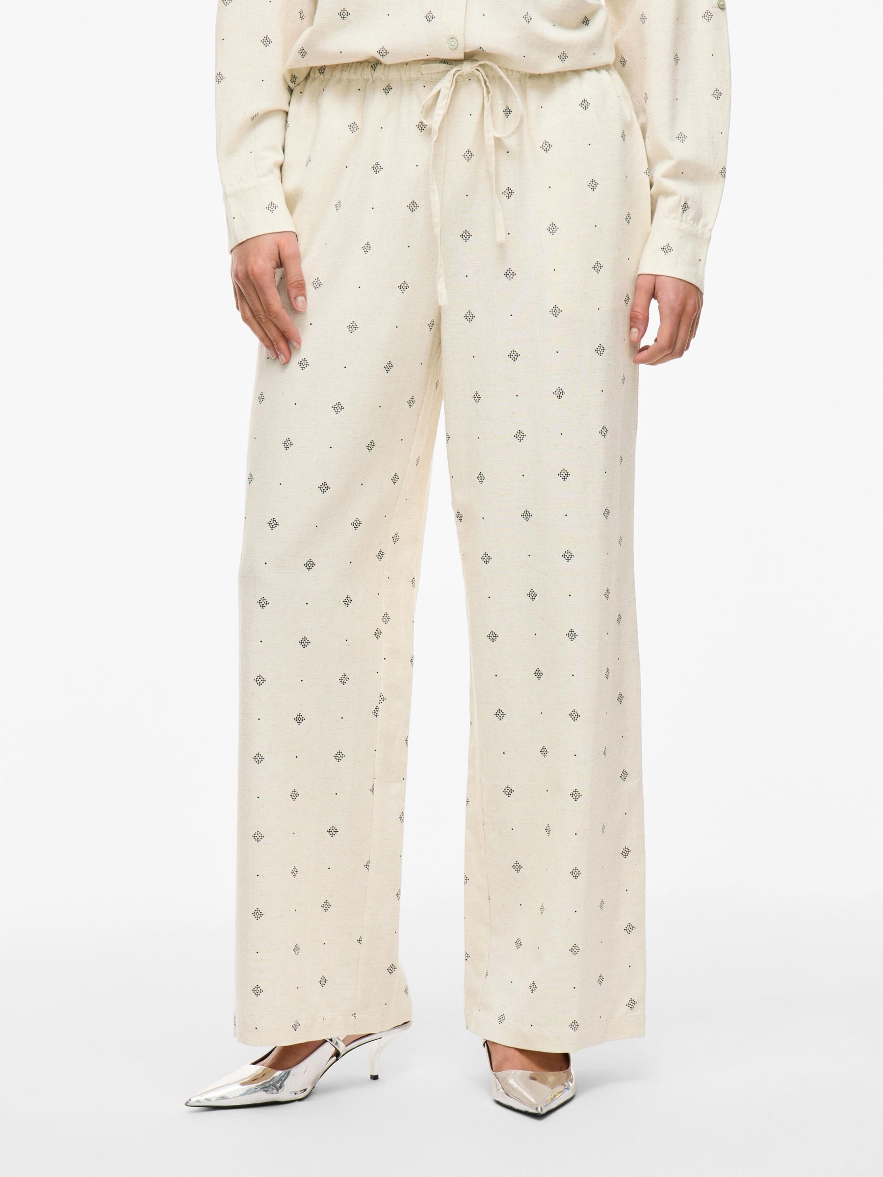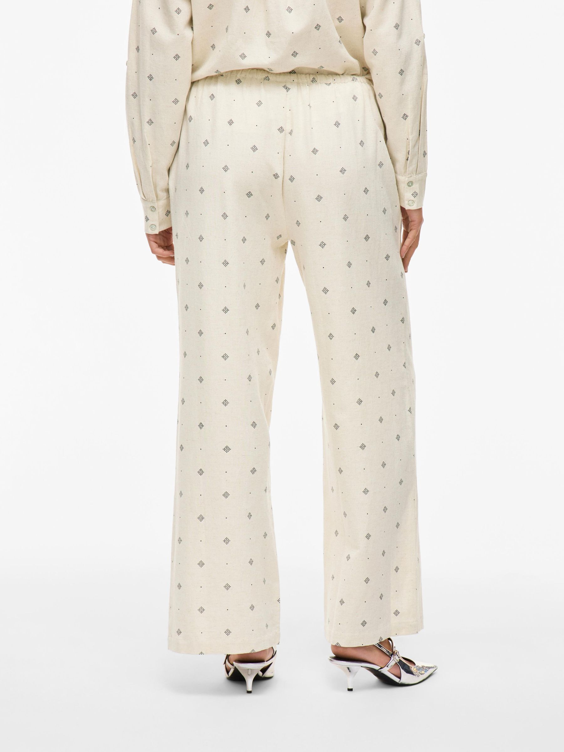 • Mid-waist trousers• Elastic waistband with drawstring• Side pockets• Includes linen• Printed fabric• Loose fit• Inseam: 78 cm in size 38• Frontrise: 29 cm in size 38