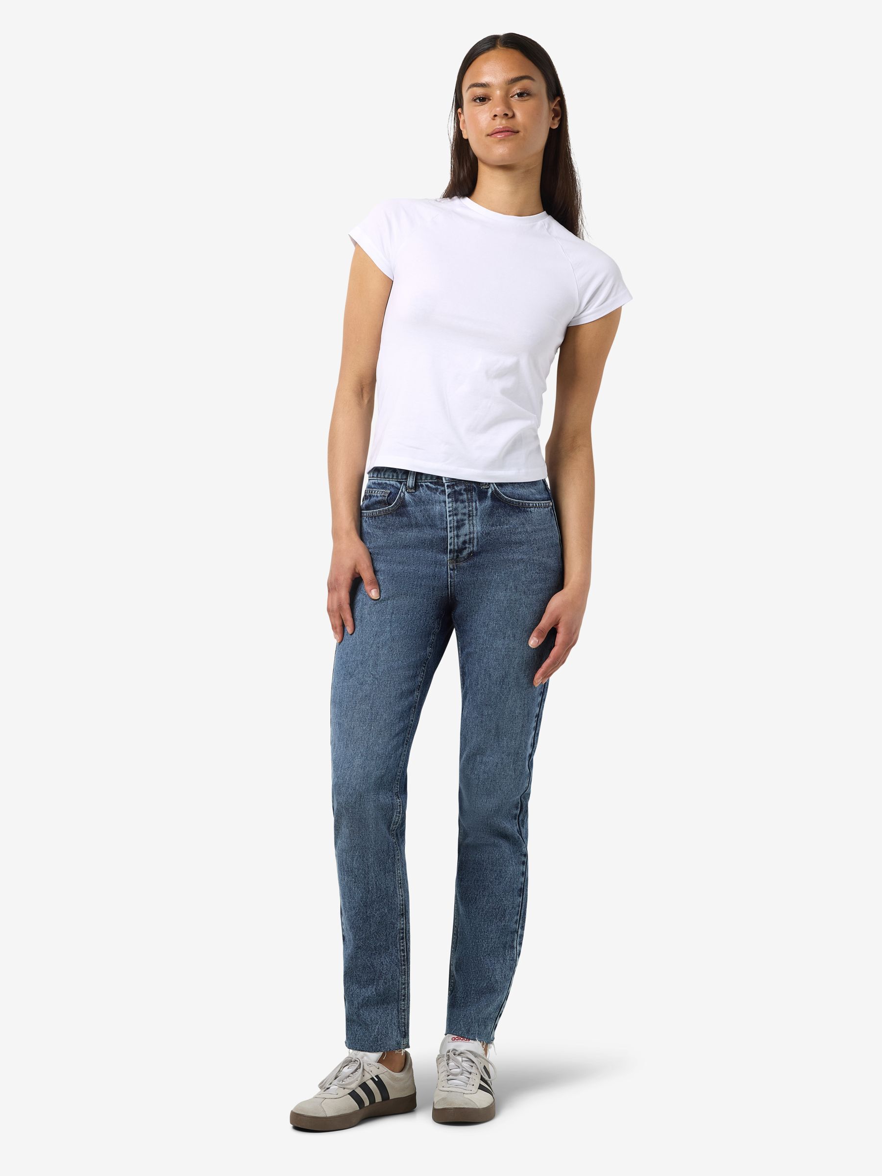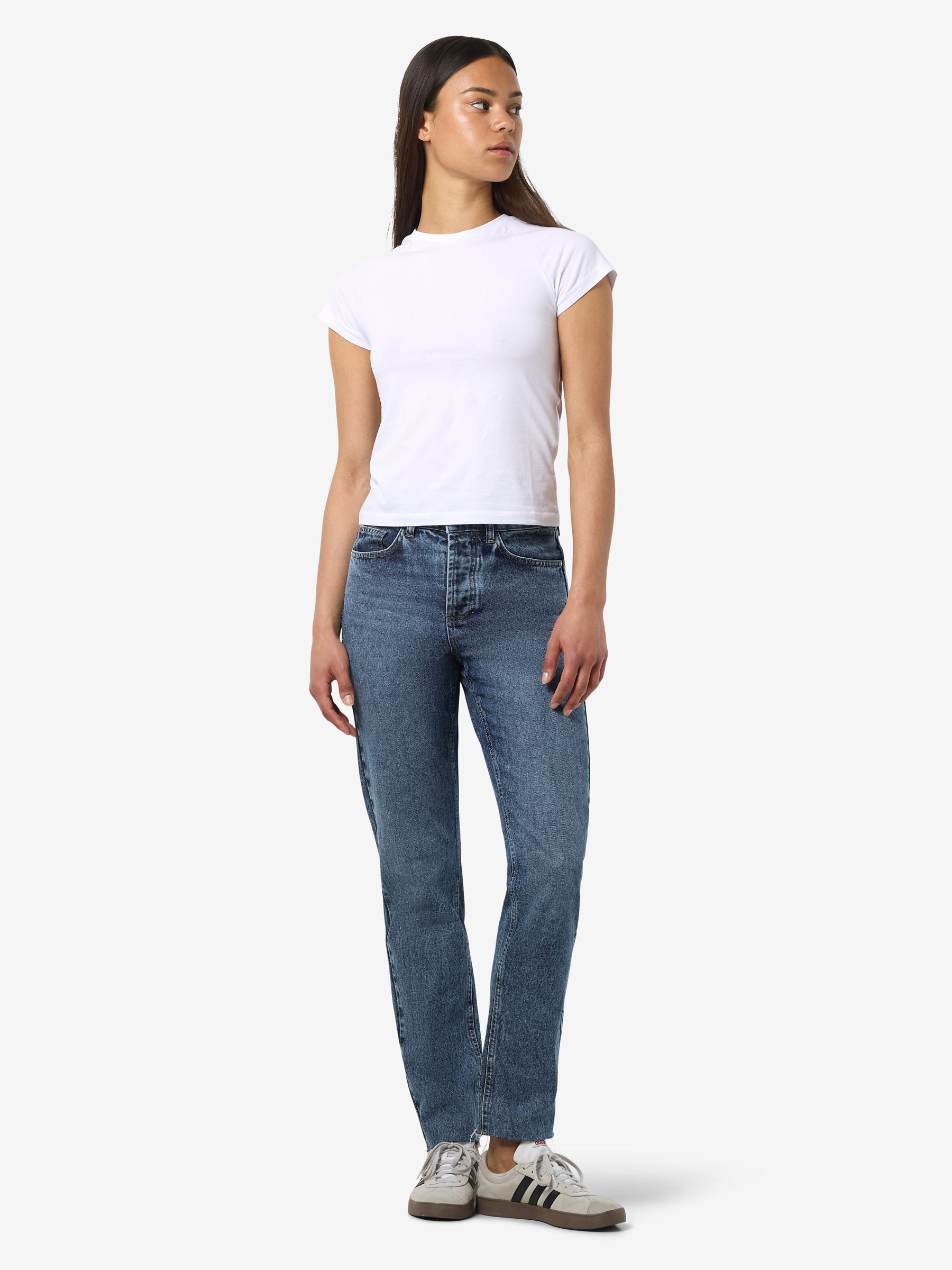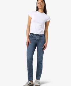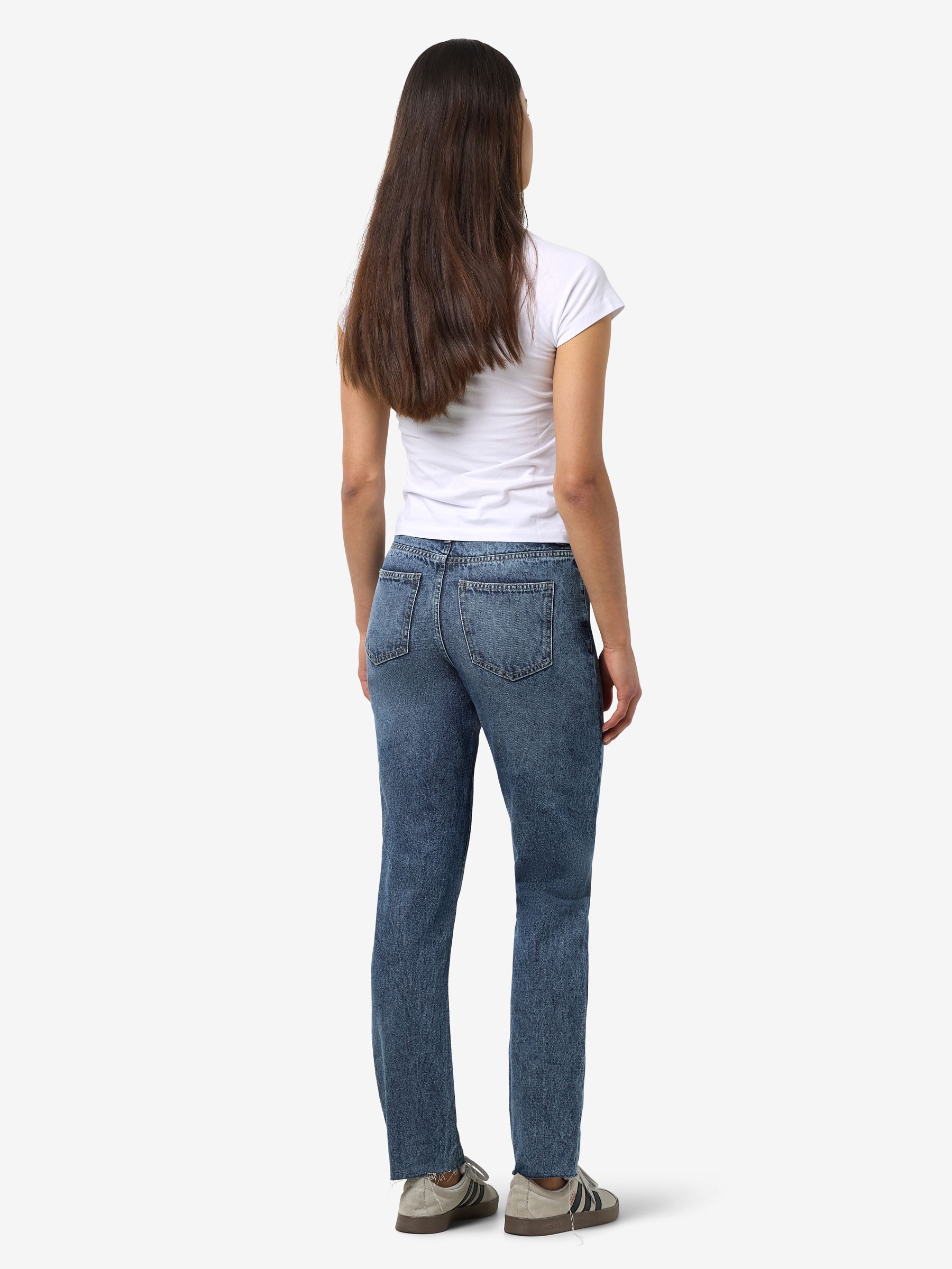 – Mid waist slim fit straight leg jeans- Belt loops- 5-pocket design- Faded detail- Zip fly with rivet button fastening- Slim fit