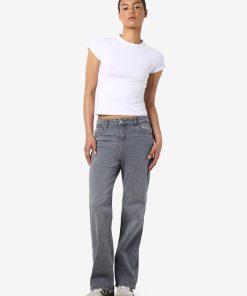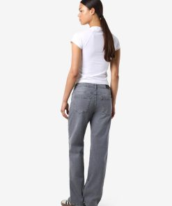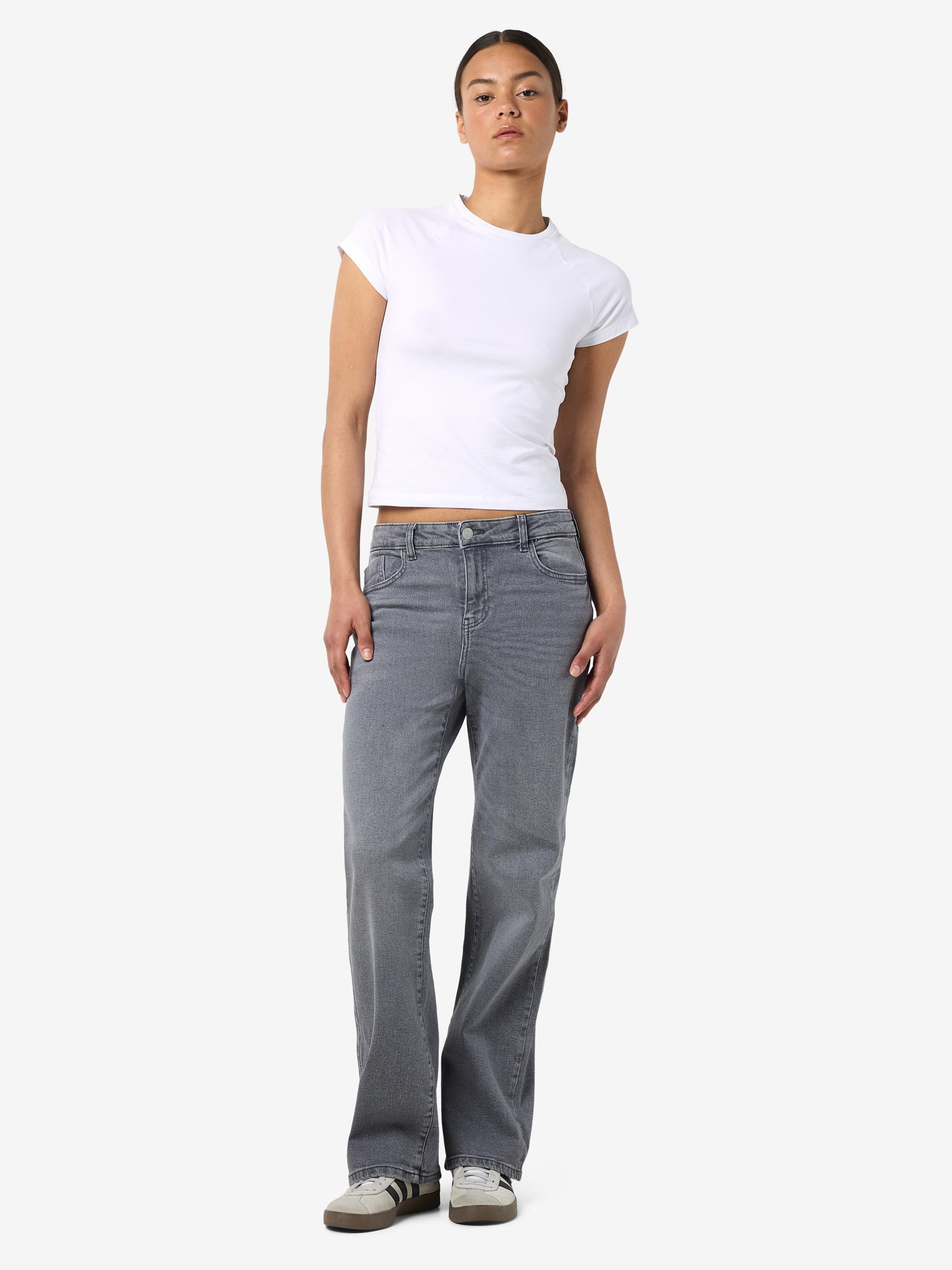 – Mid waist straight fit jeans- Belt loops- 5-pocket design- Zip fly with rivet button fastening- Straight fit- Model is 172cm tall and wearing size 27/34