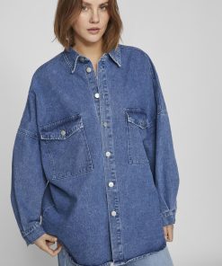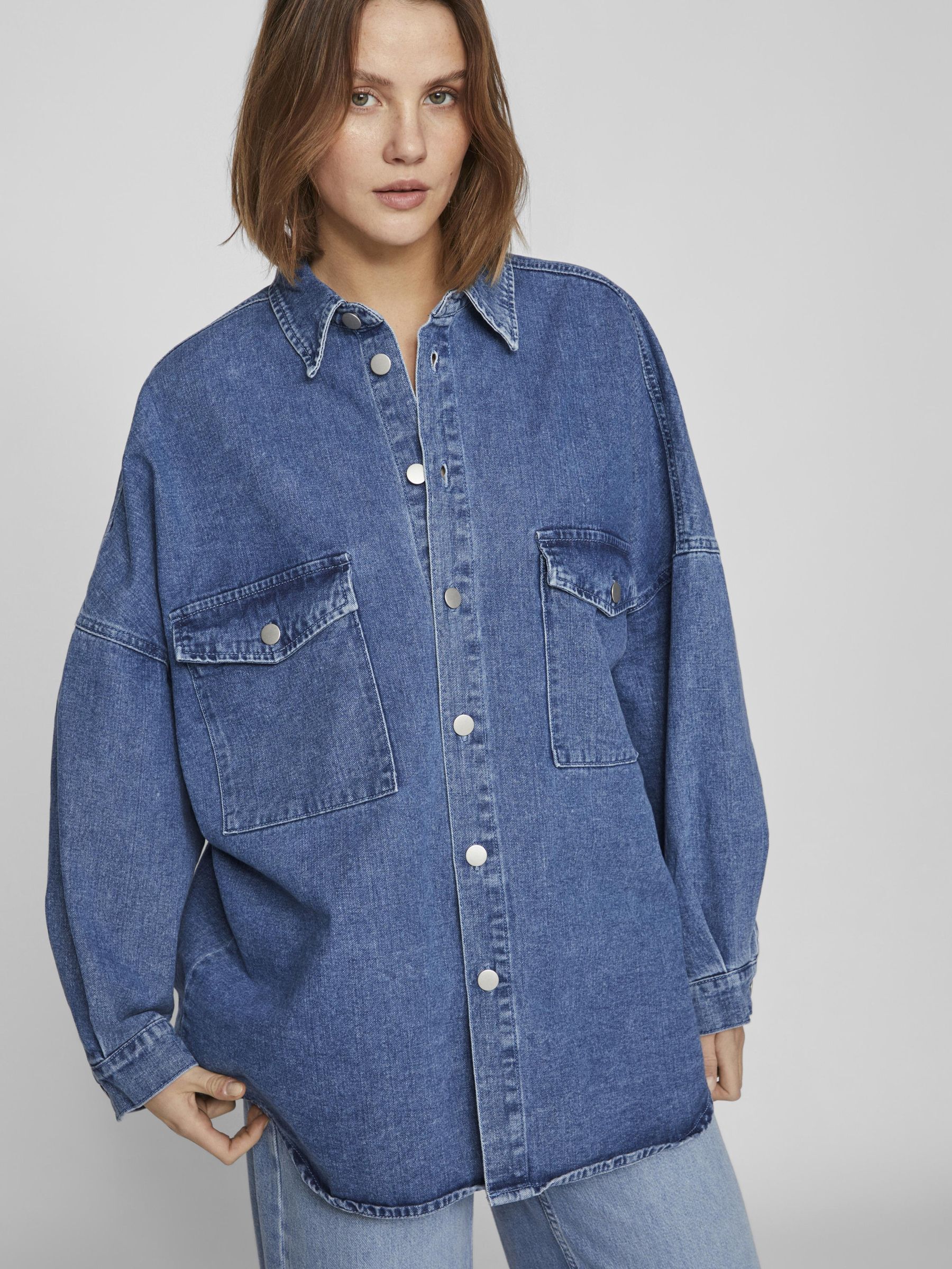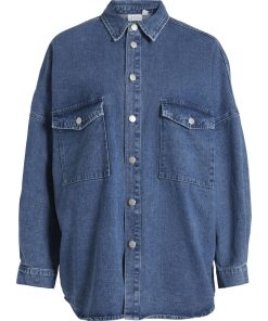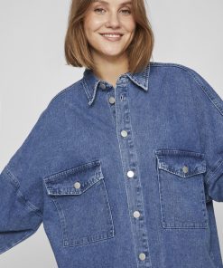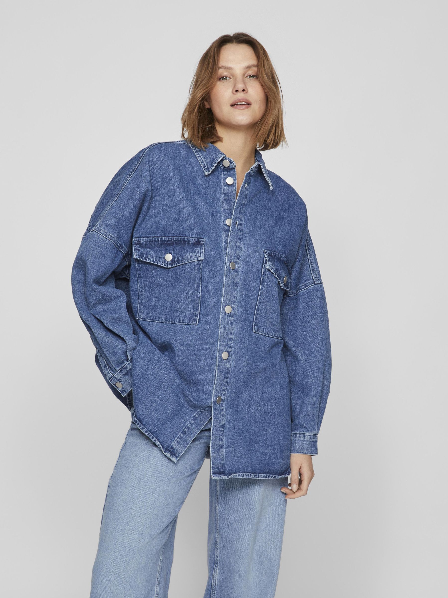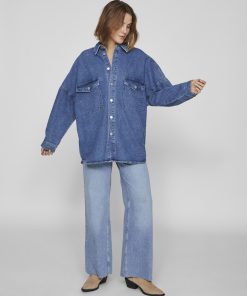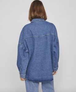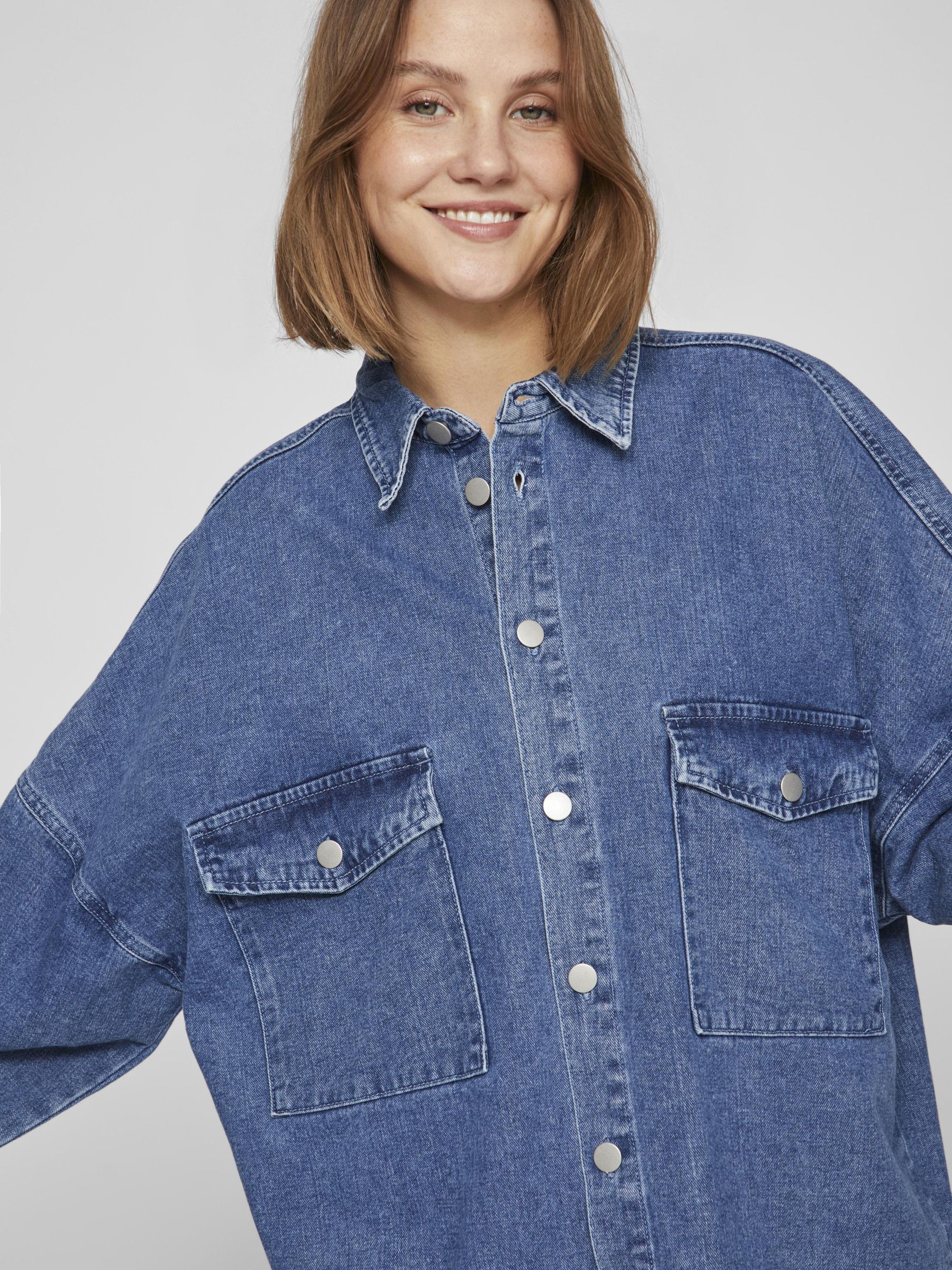 VILA Women’s Oversize Denim Shirt | Medium Blue Denim