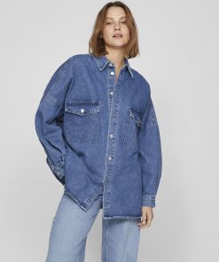 VILA Women’s Oversize Denim Shirt | Medium Blue Denim