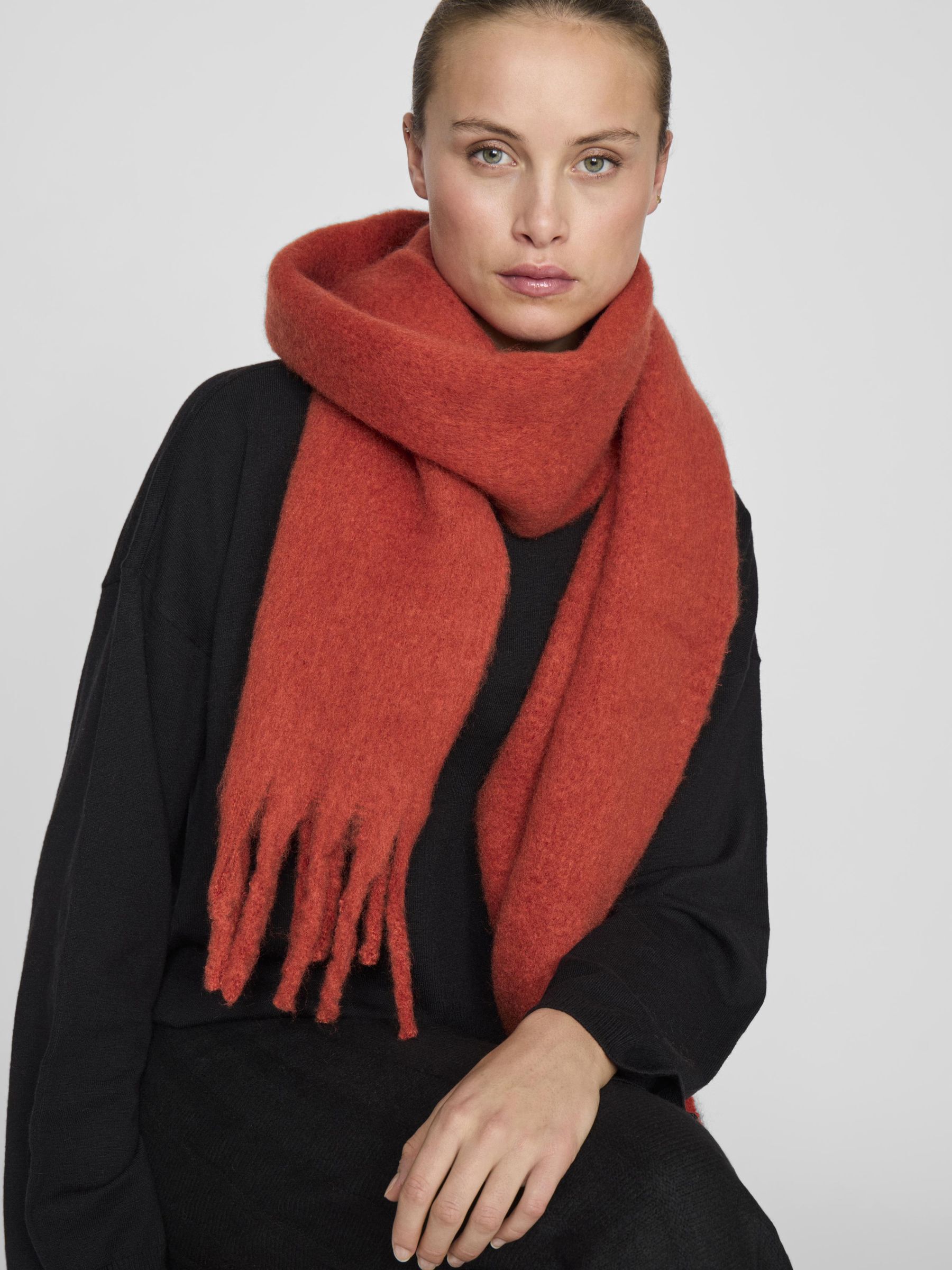 – Oversized scarf- Fringe detail- Super soft fabric- Width:34 cm- Length: 214 cm