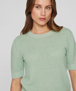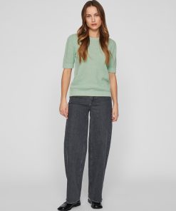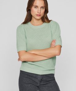 VILA Women’s Short-sleeved Knitted Top | Silt Green