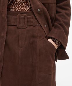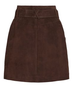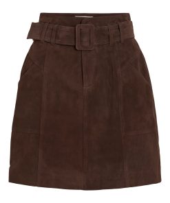 • Mini suede skirt• High waist• Zip and button fastening• Belt loops• Removable belt• Front pockets• Regular fit• Length: 98 cm in size 38