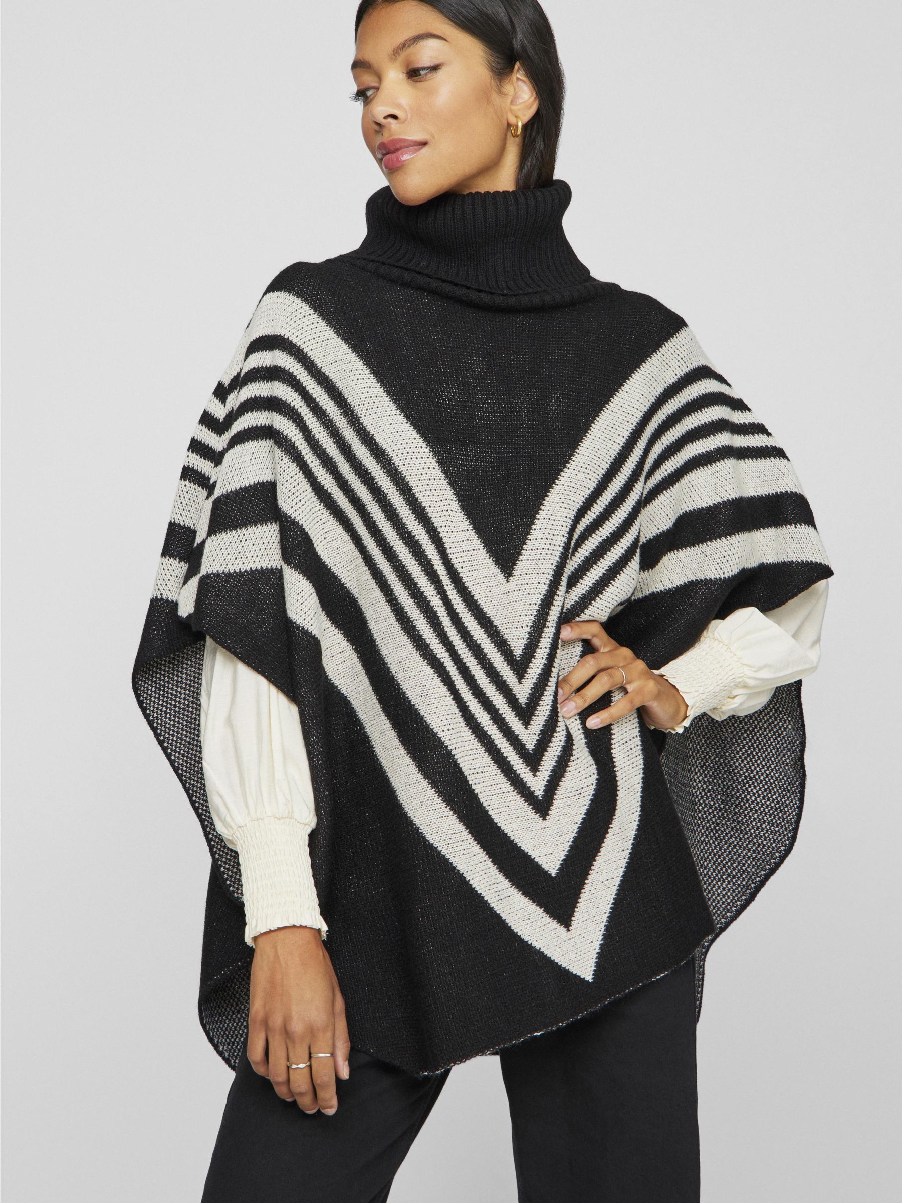 • Knitted poncho• Turtleneck• Soft knitThe main material in this product contains a minimum of 50% recycled polyester. Recycled polyester saves natural resources and reduces the amount of waste.