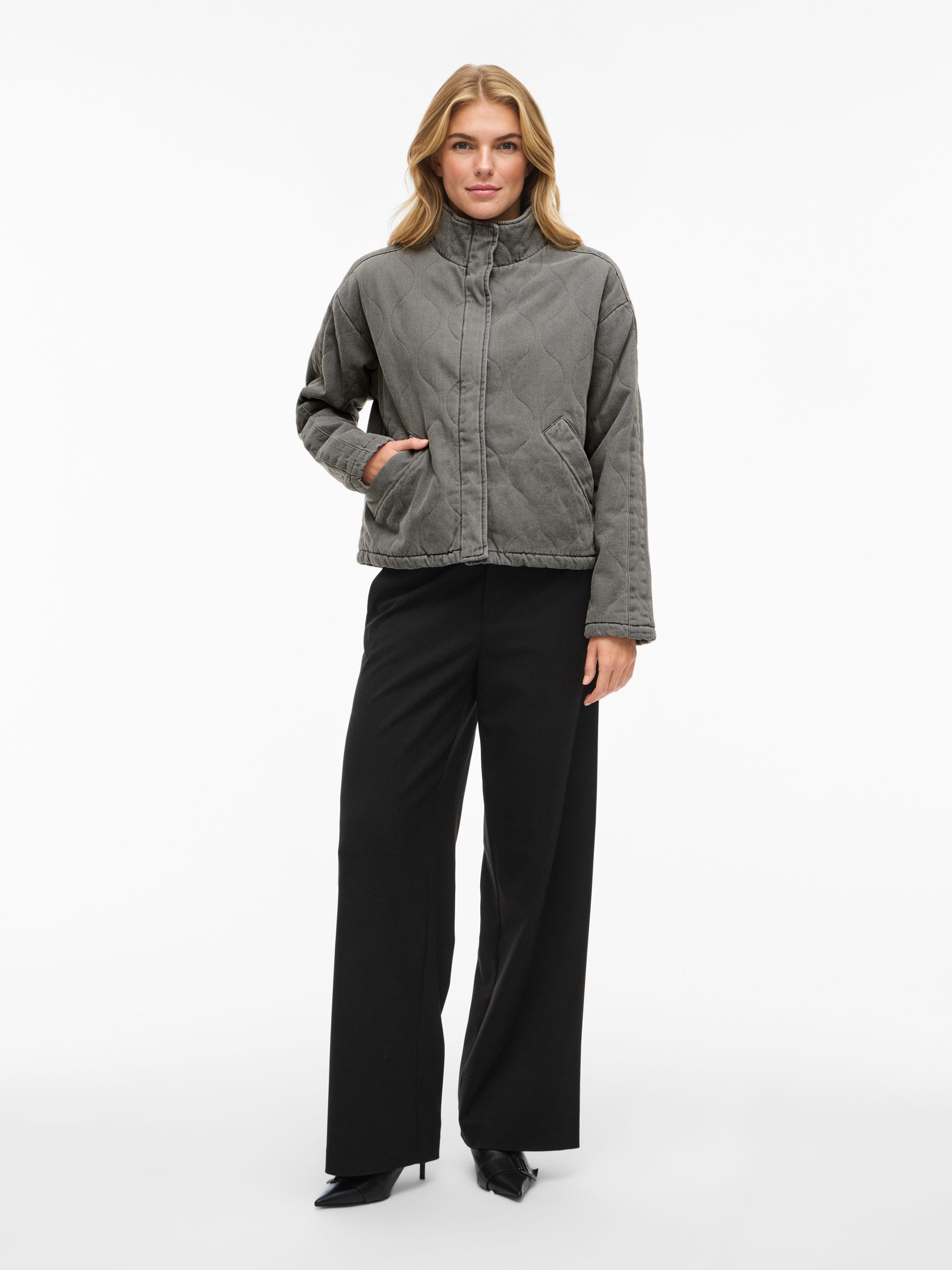• Quilted denim jacket• Hidden front button fastening• High neck• Dropped shoulders• Front pockets• Regular fit• Length: 58 cm in size 38• Sleeve length: 62 cm in size 38