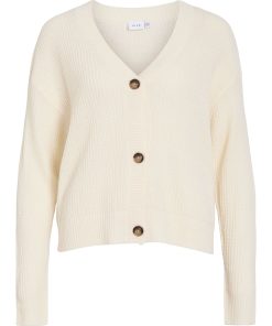 VILA Women’s Viaveline V-neck Knitted Cardigan | Snow White