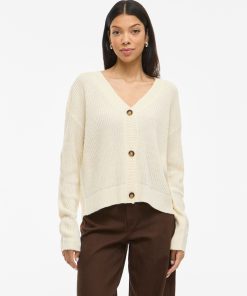 VILA Women’s Viaveline V-neck Knitted Cardigan | Snow White