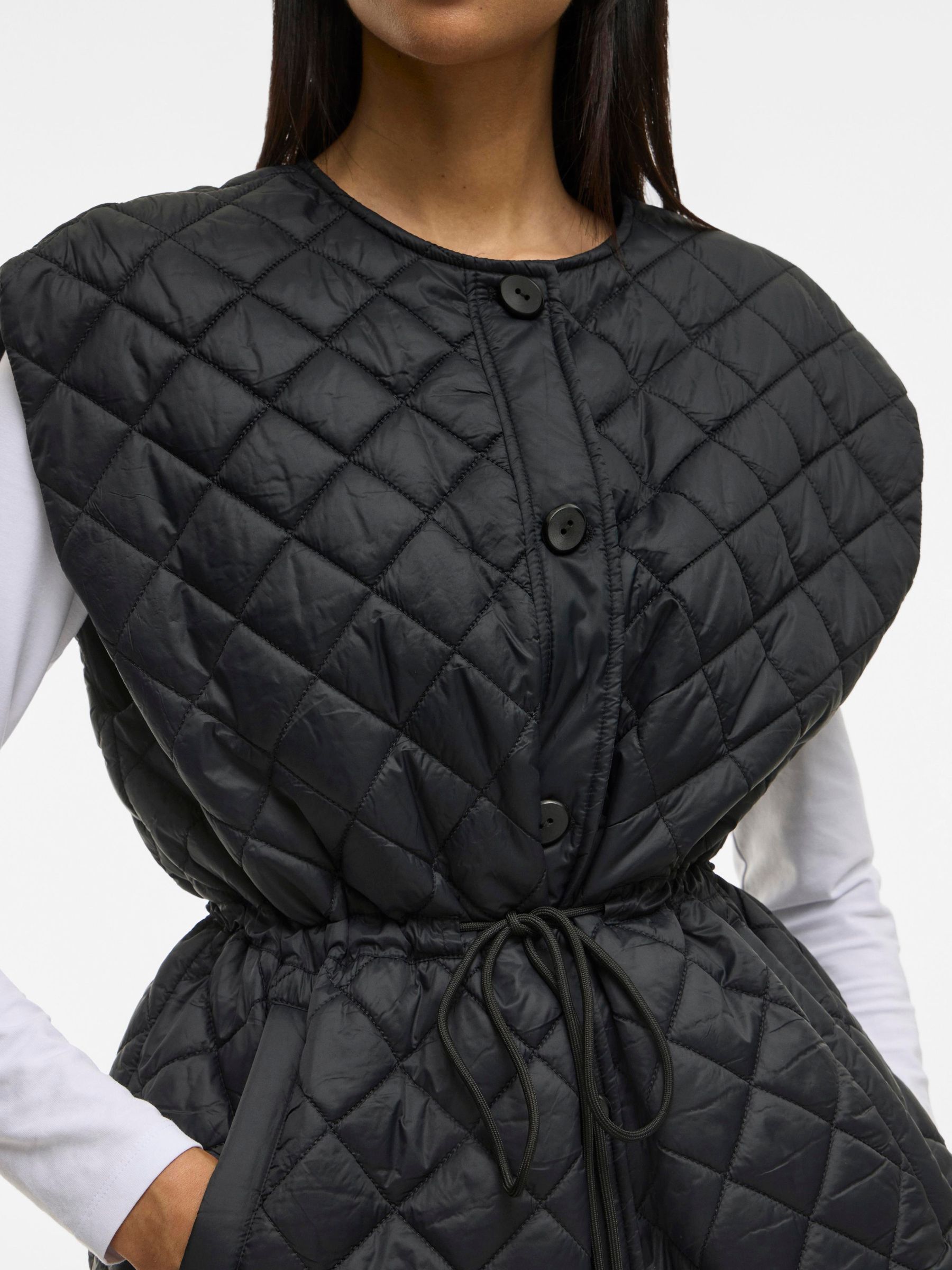 • Quilted waistcoat with drawstring waist• Front button fastening• Two pockets• Round neck• Light padding, perfect for in-between seasons• Regular fit• Length: 71 cm in size 38