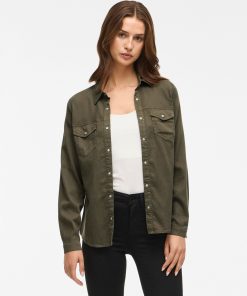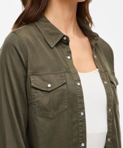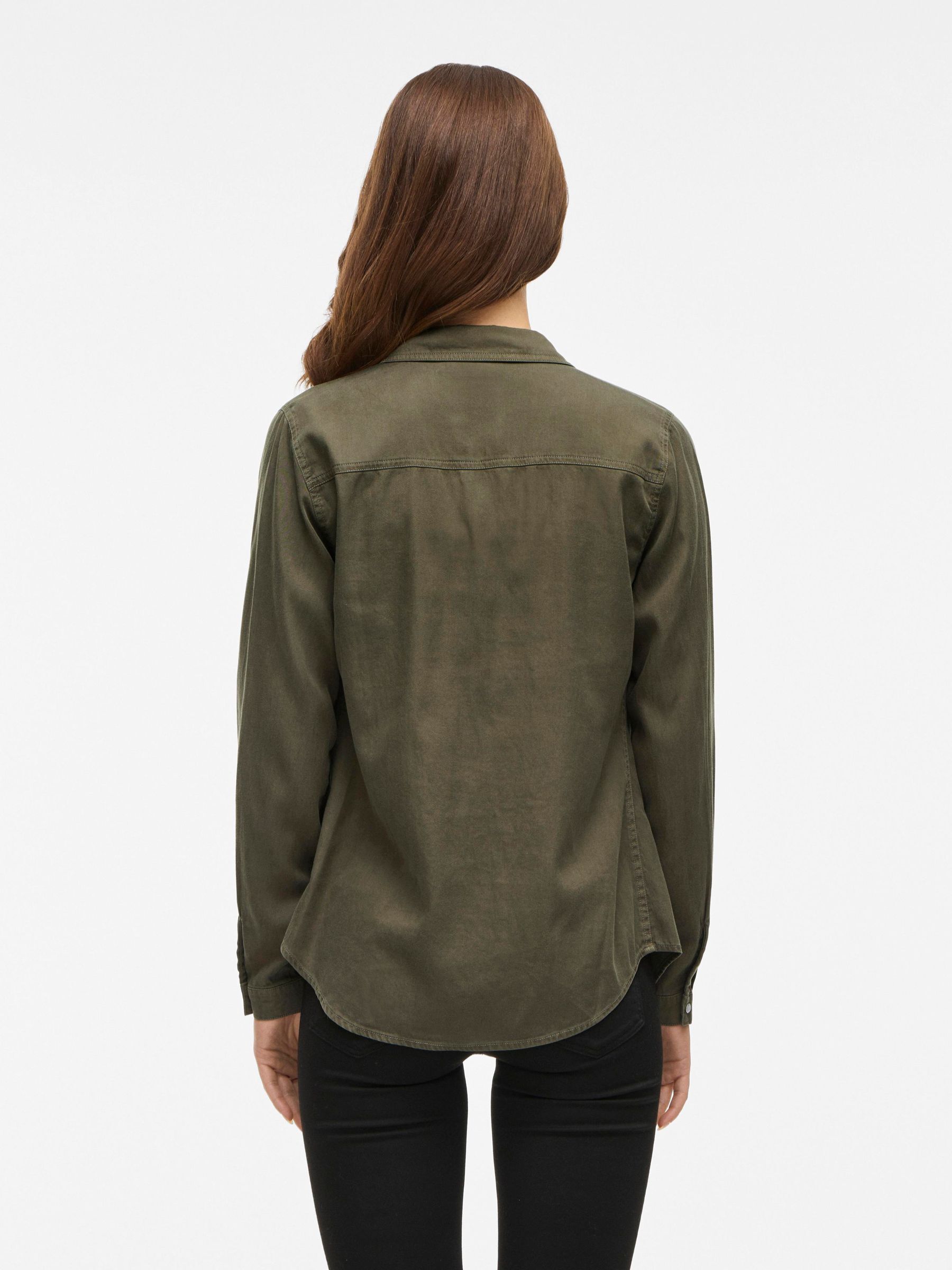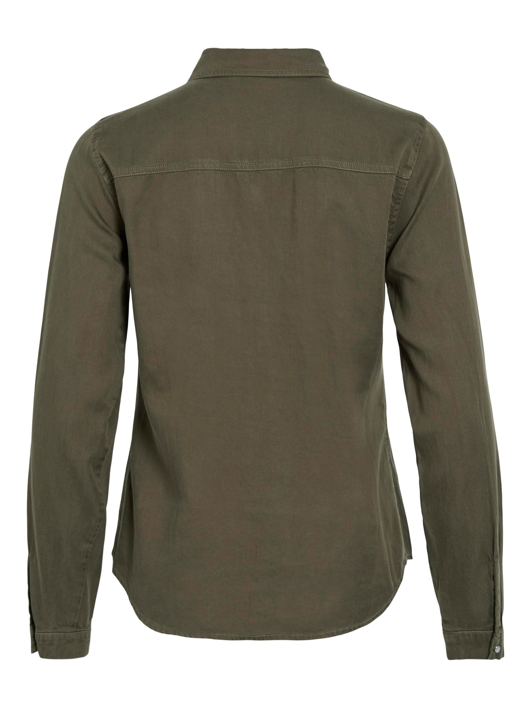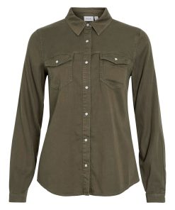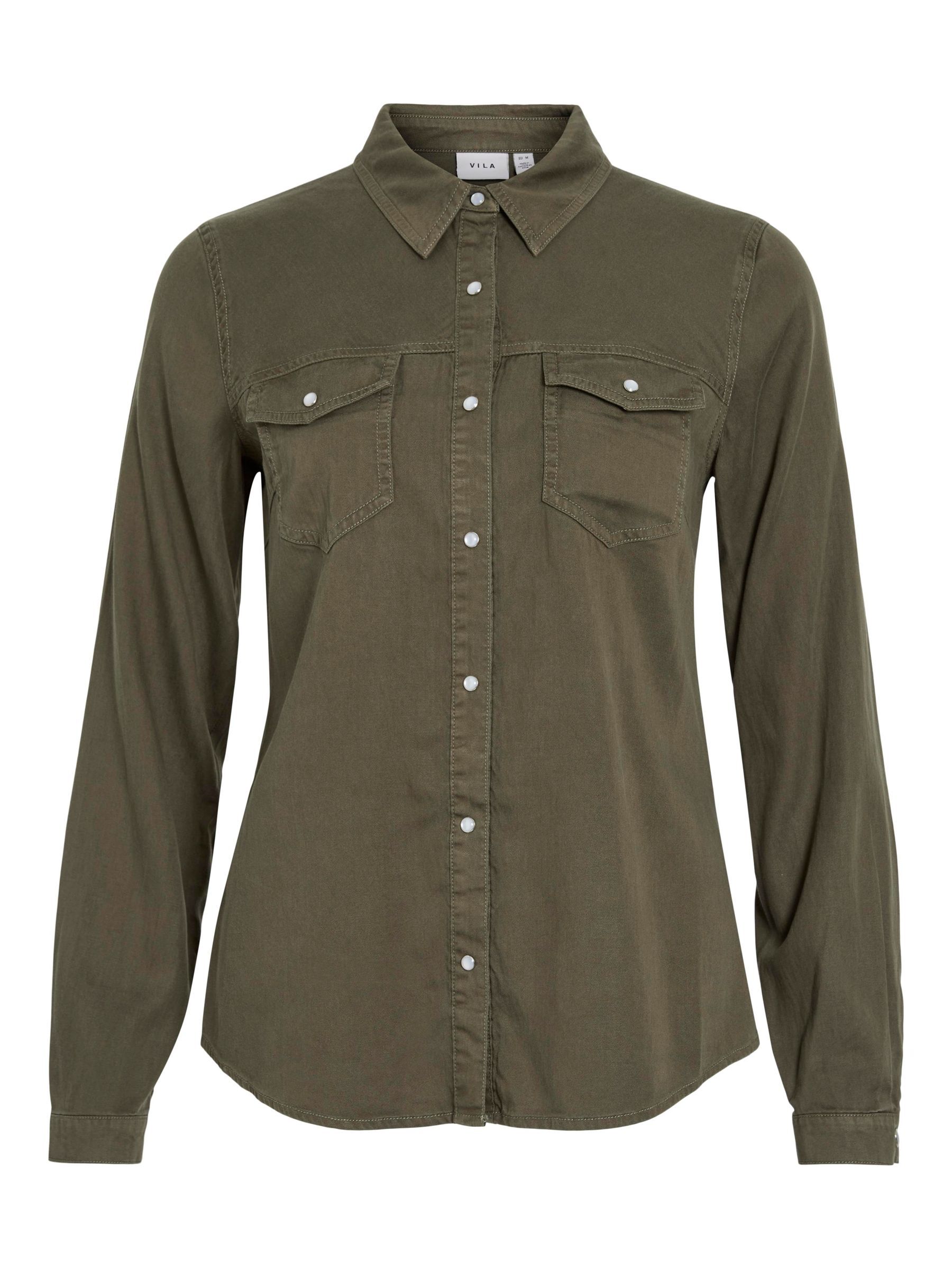 – Style name: VIBISTA- Denim shirt- Press buttons- Pockets at the chest- Long sleeves with button at the bottom- Length: 70 cm in size M- Sleeve length: 63 cm in size M- Our model is 179 cm tall and wears size M