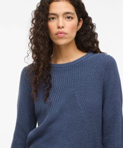 VILA Women’s Viching Cotton Knitted Pullover | Vintage Indigo
