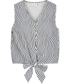 • Sleeveless top with front knot detail• V-neck• Front button fastening• All-over print• Regular fit• Length: 51 cm in size 38
