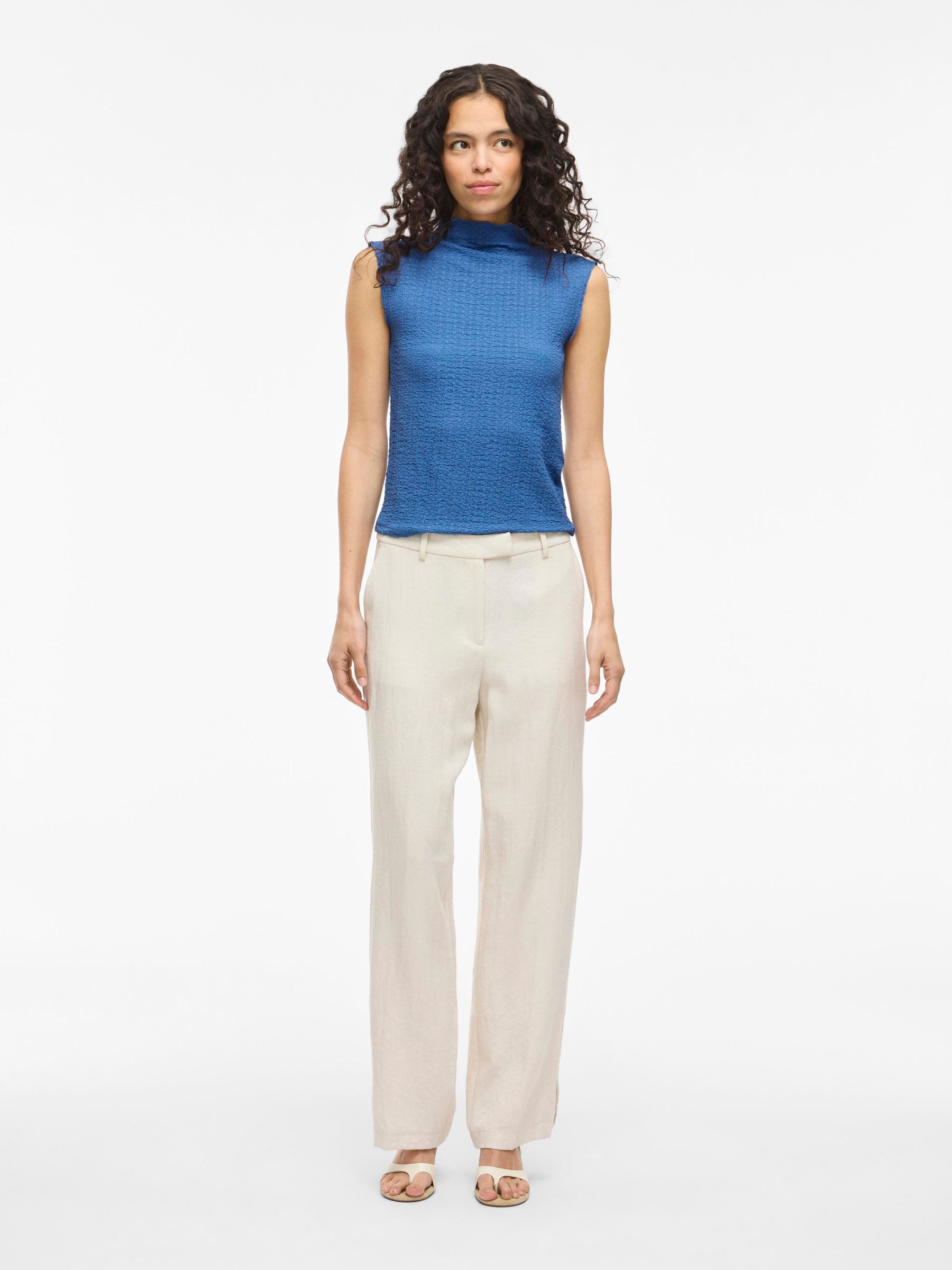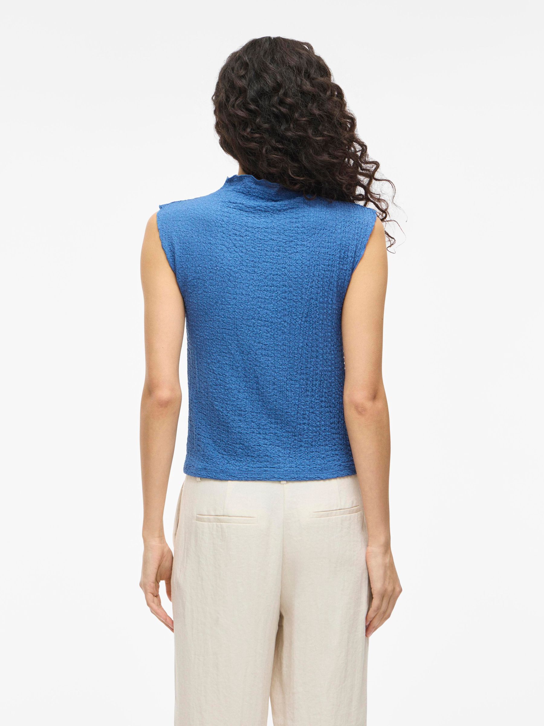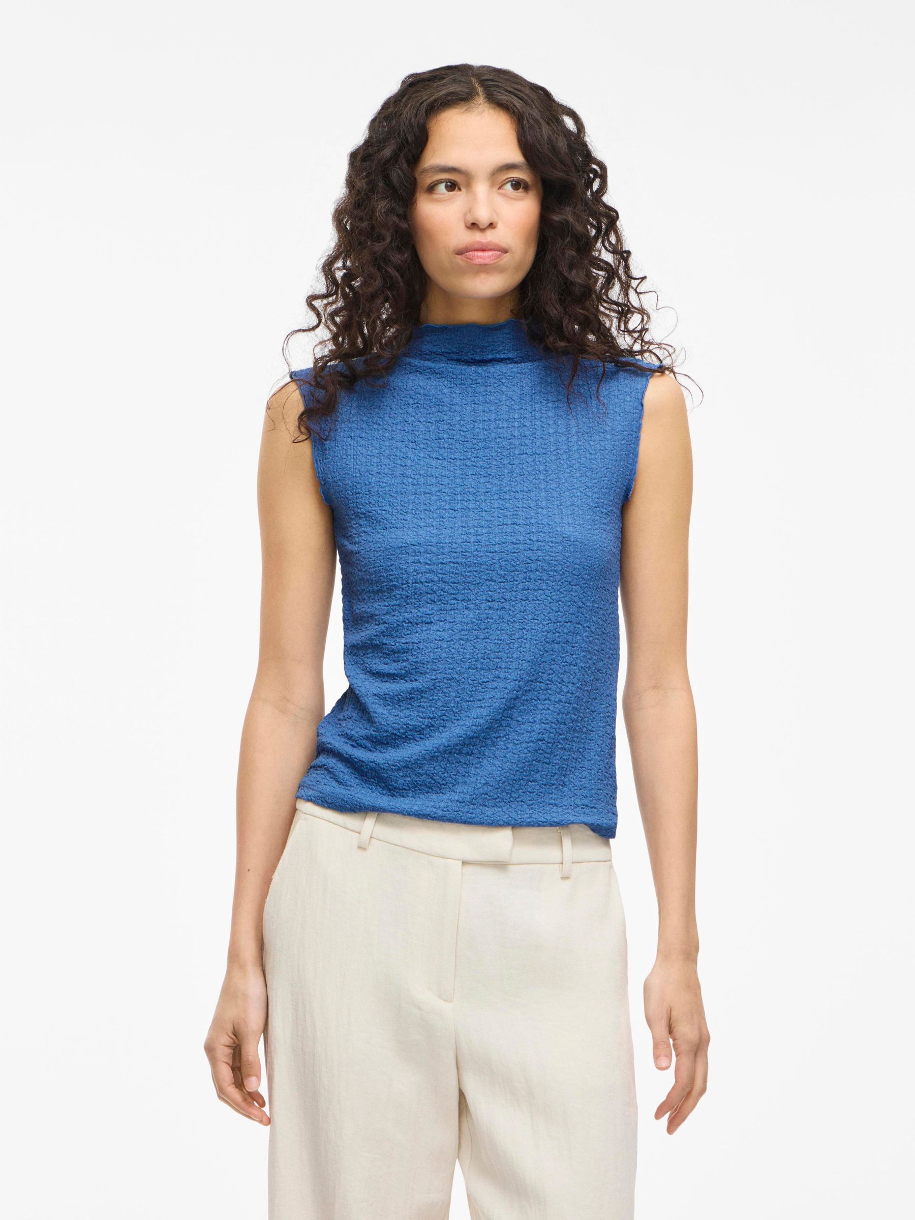 • Textured sleeveless top• High neck• Lettuce trim• Regular fit• Length: 55 cm in size M