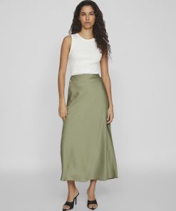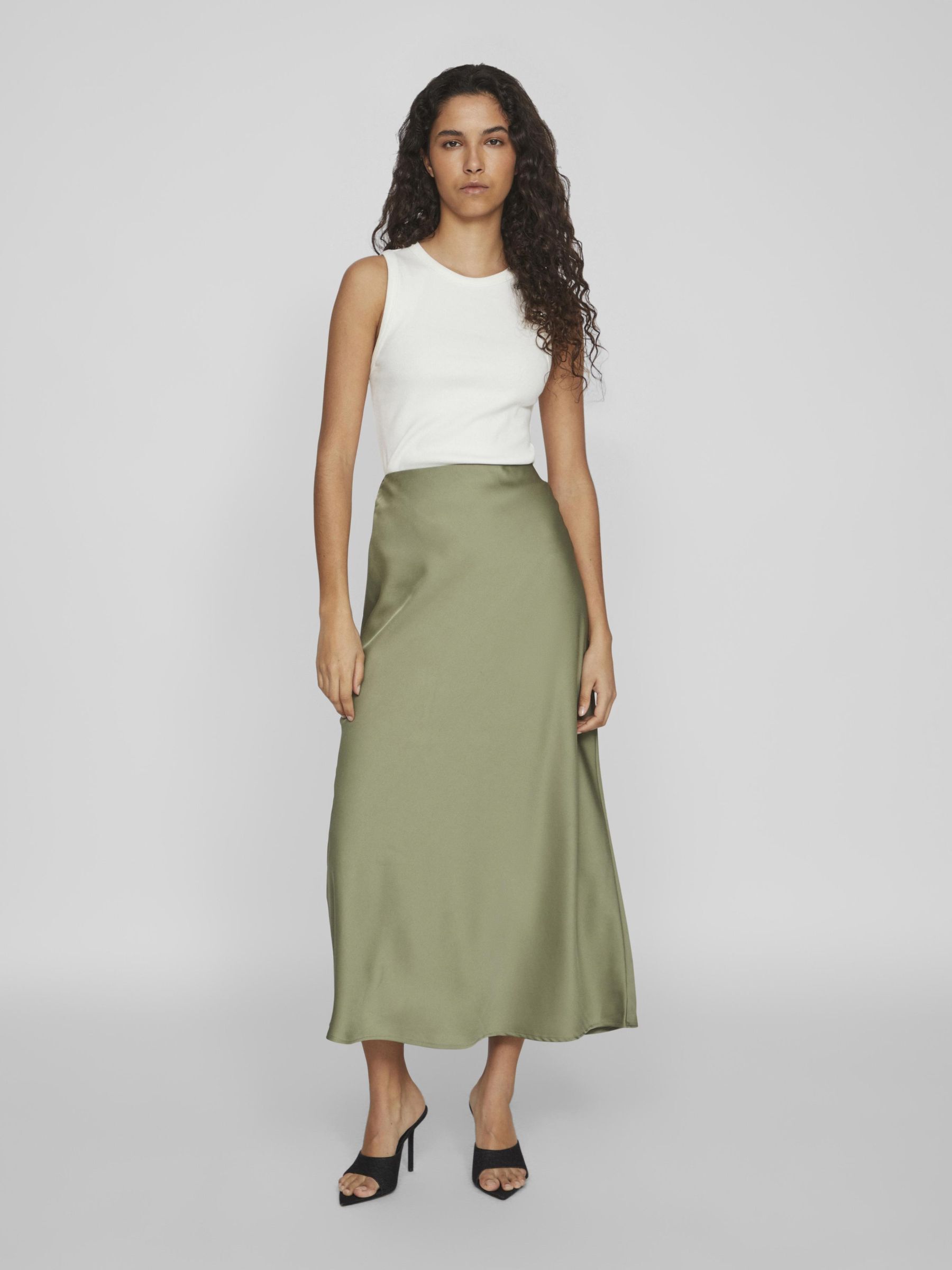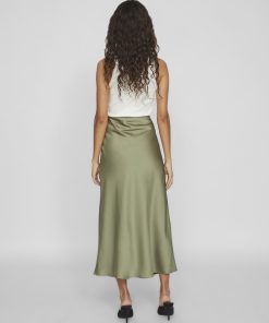 VILA Women’s Viellette High Waist Midi Skirt | Oil Green