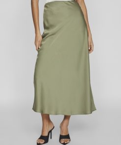 VILA Women’s Viellette High Waist Midi Skirt | Oil Green