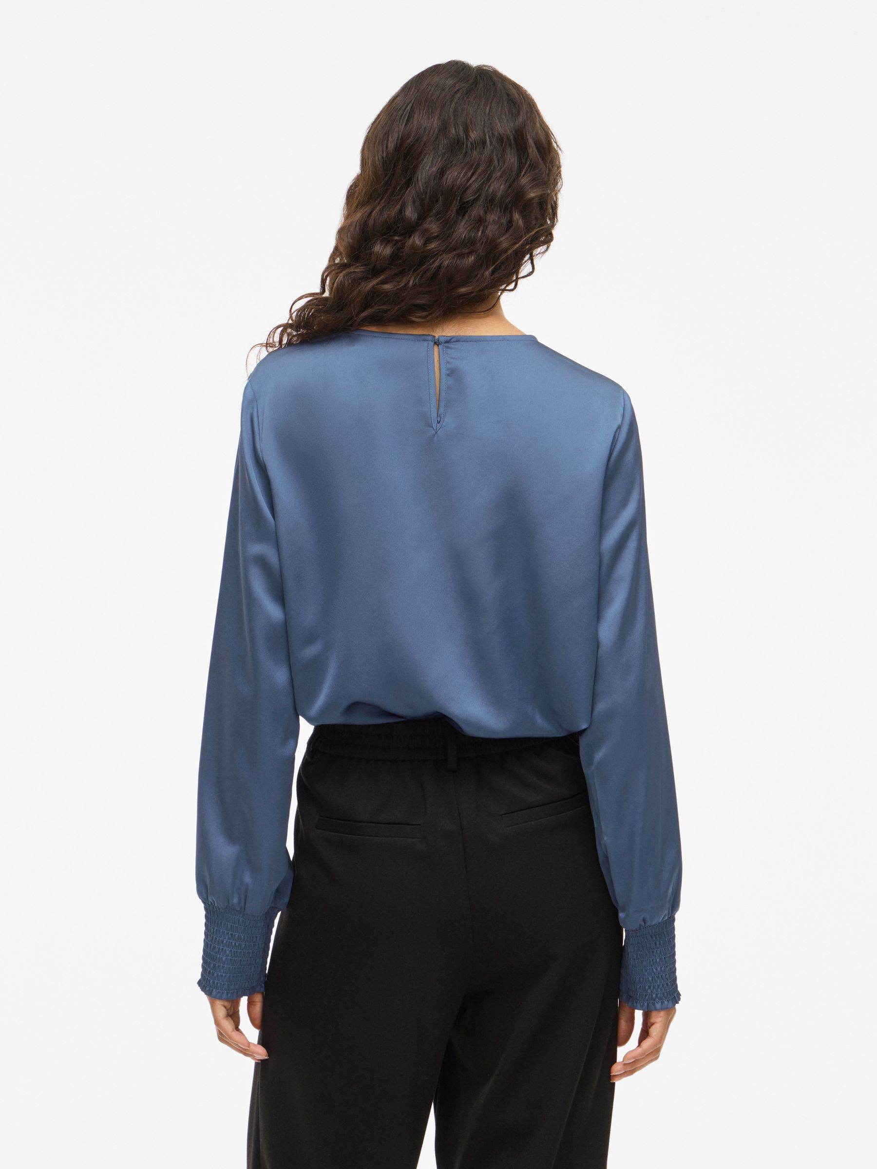 VILA Women’s Viellette Round Neck Long Sleeved Top | Bijou Blue