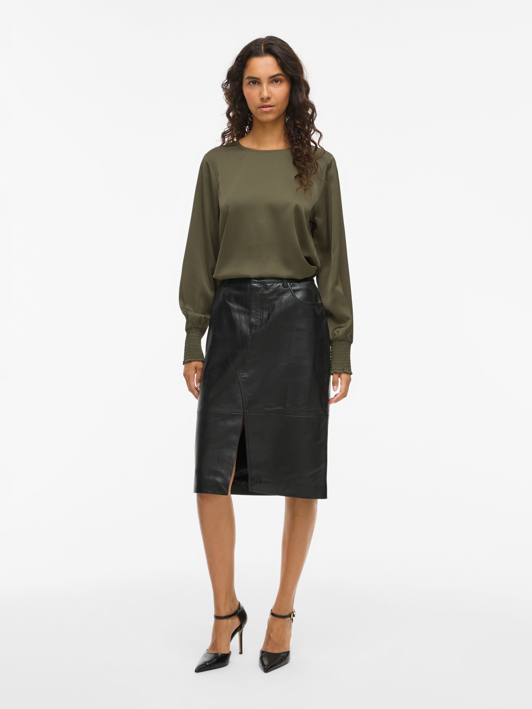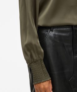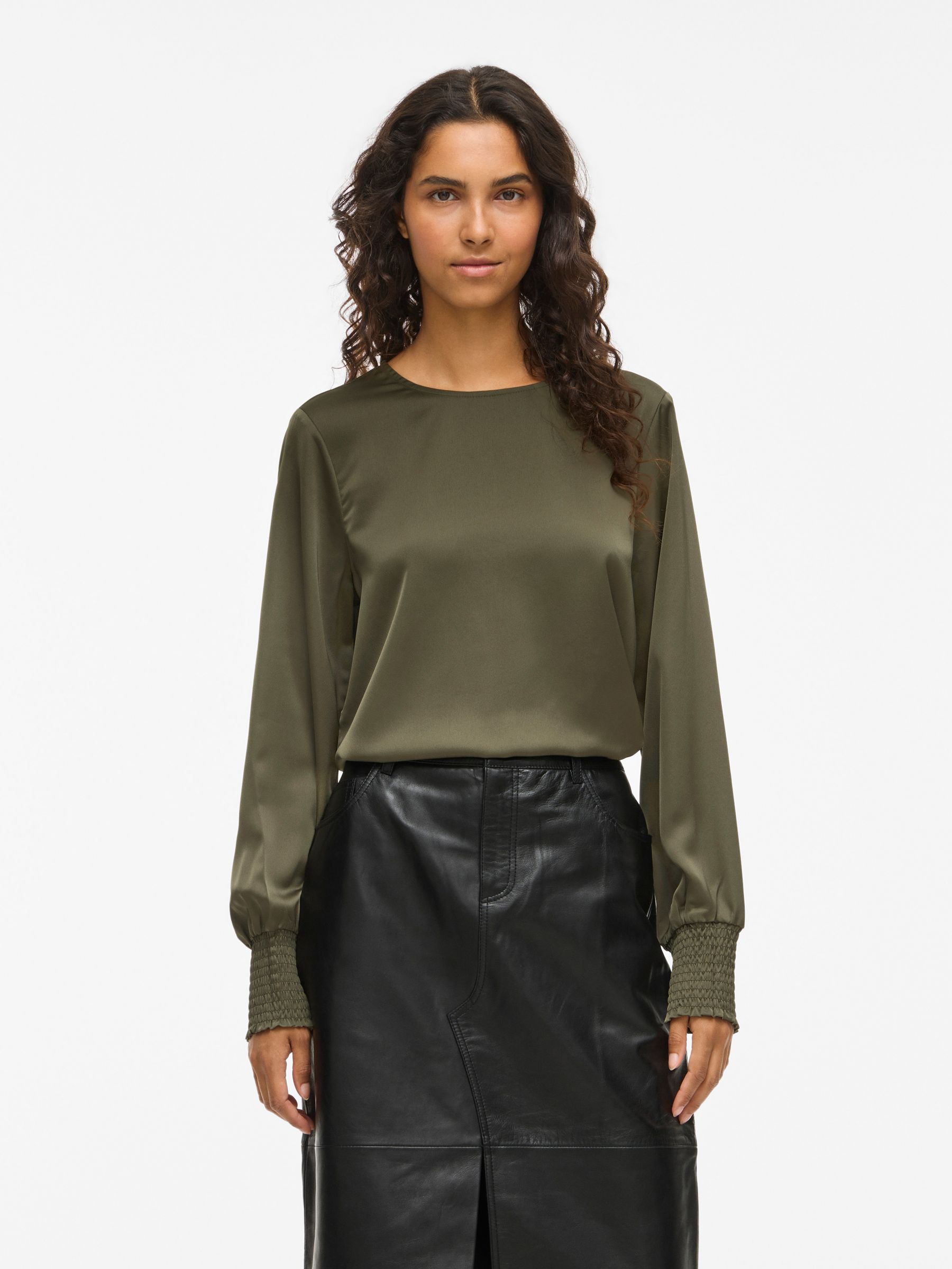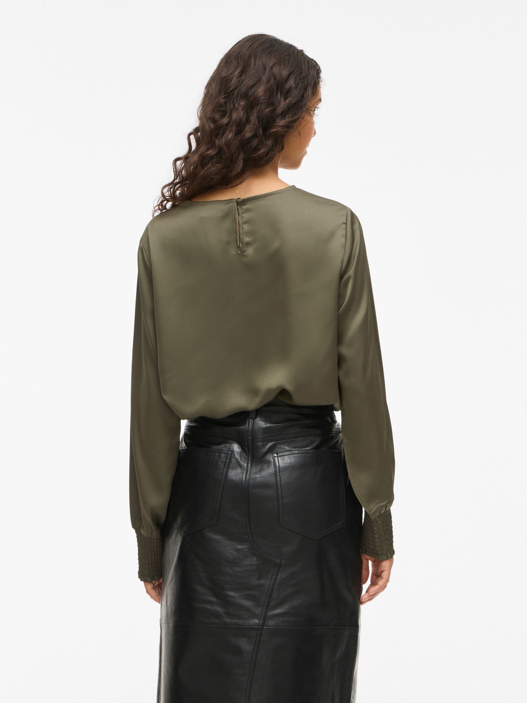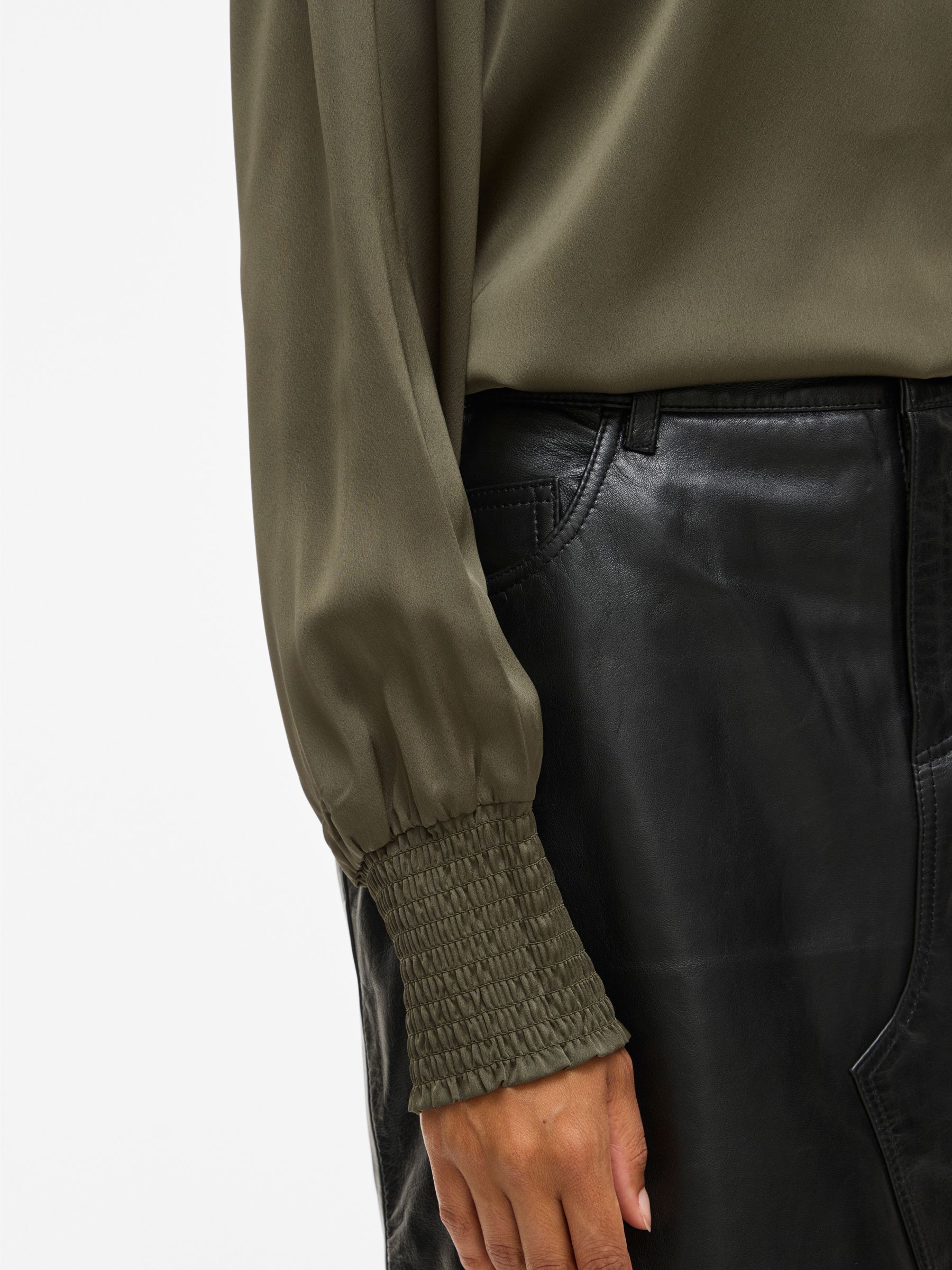 • Elegant long sleeved top• Round neck with button-keyhole fastening• Smock cuffs• Elegant, shiny fabric• Regular fit• Length: 64 cm in size 38• Sleeve length: 65 cm in size 38