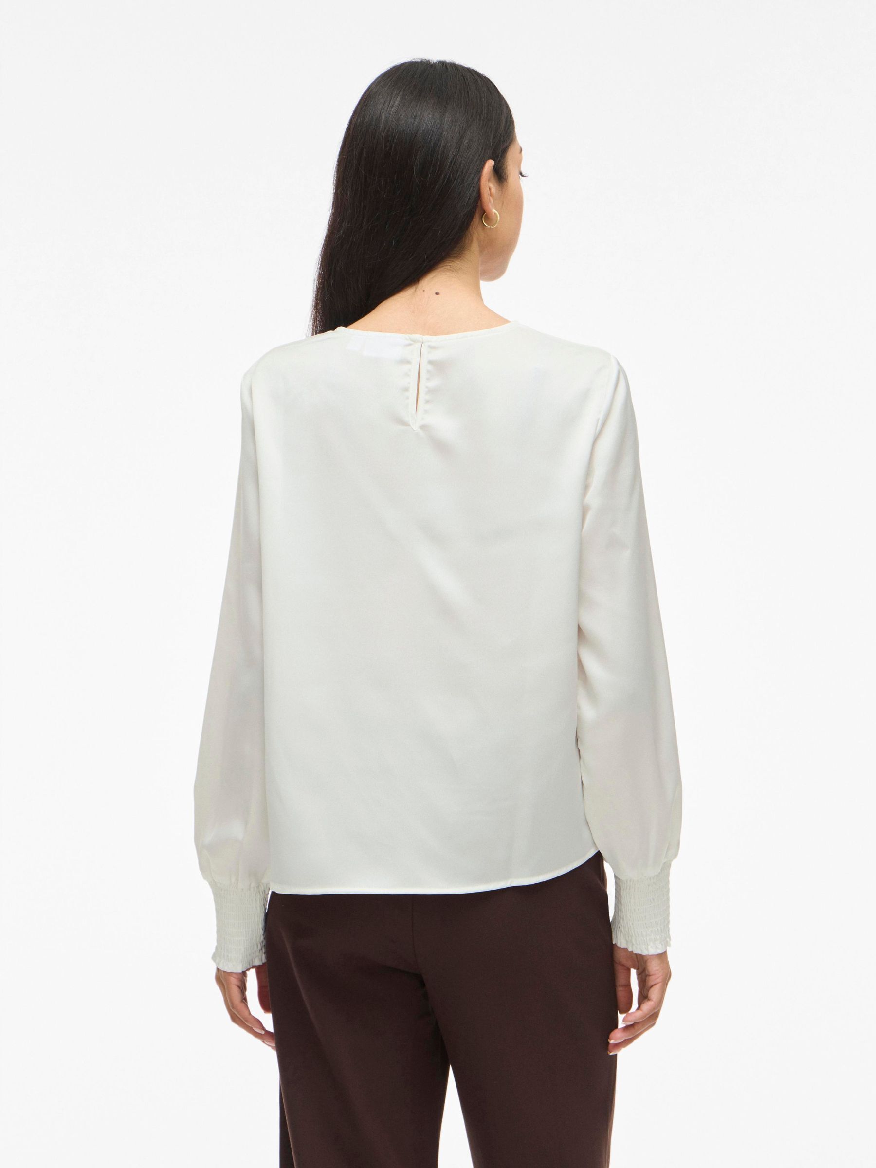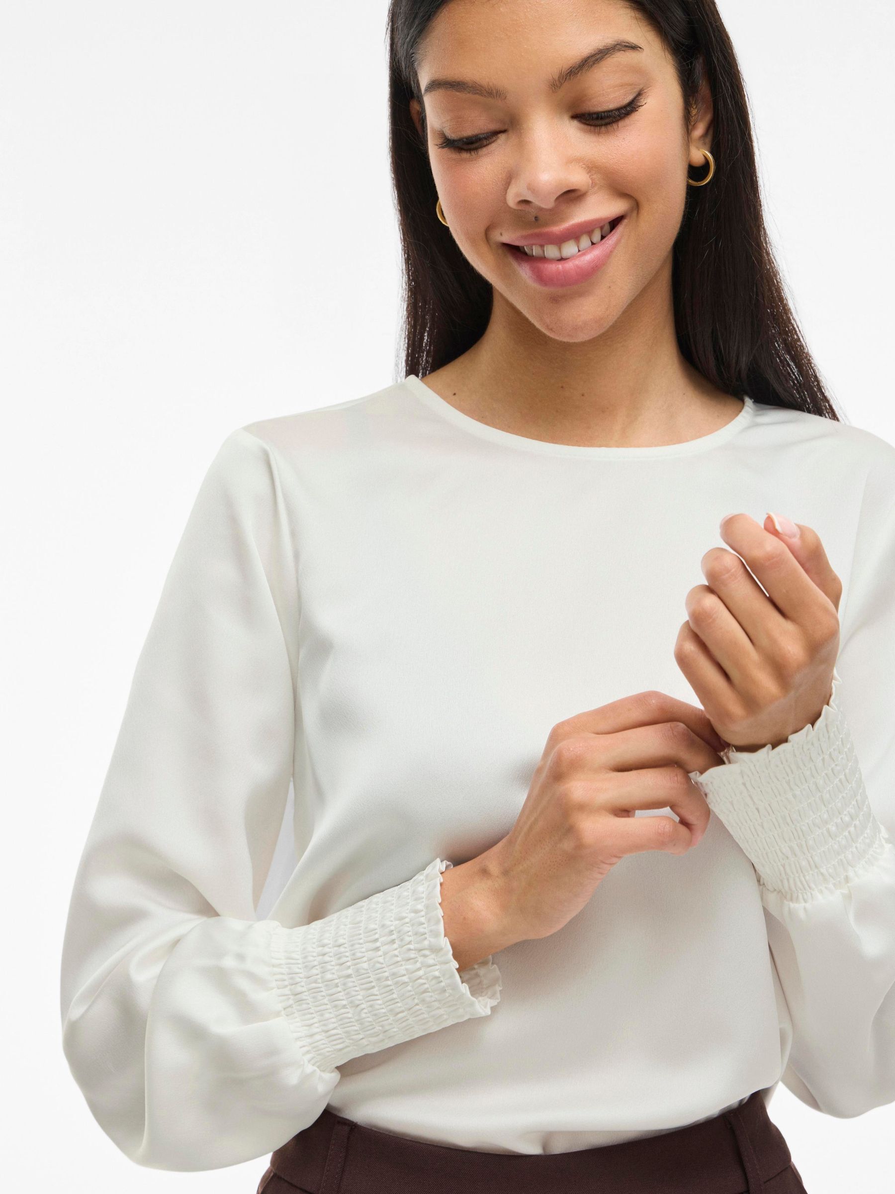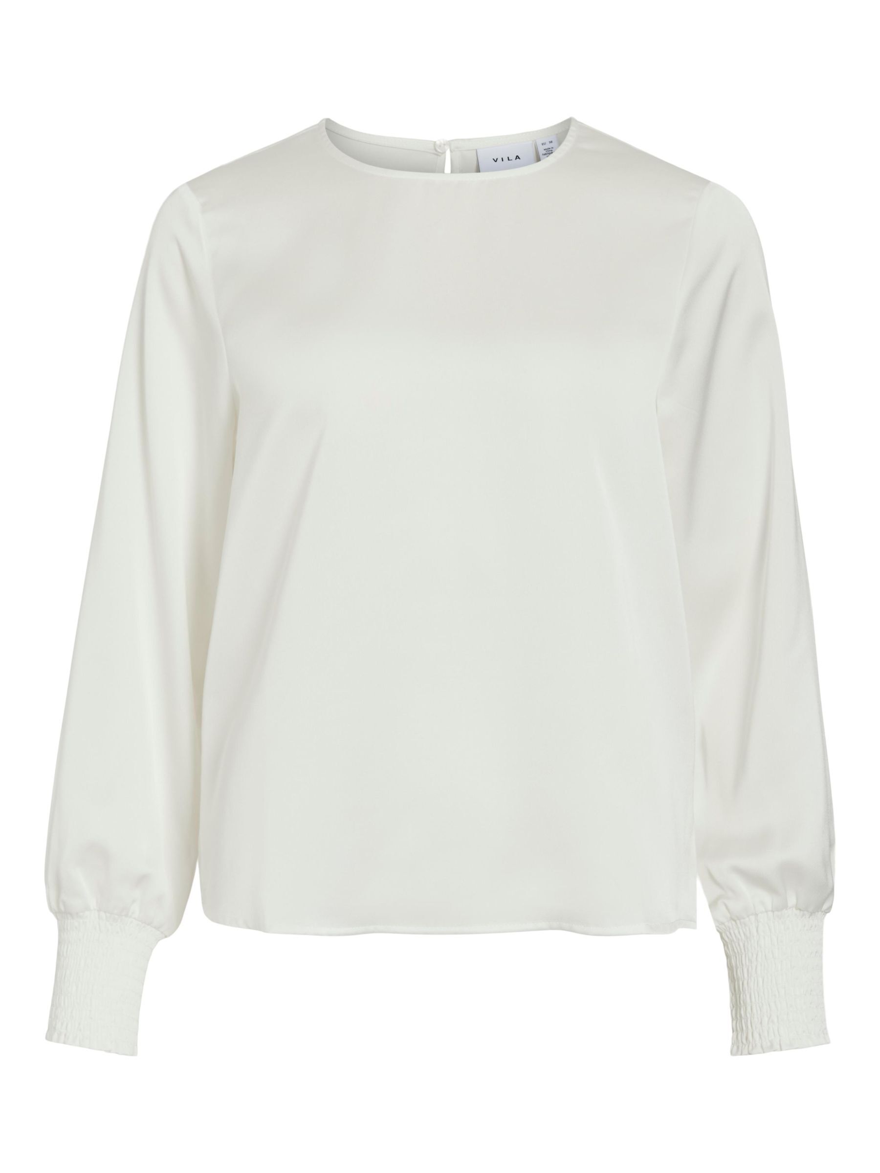 VILA Women’s Viellette Round Neck Long Sleeved Top | Snow White