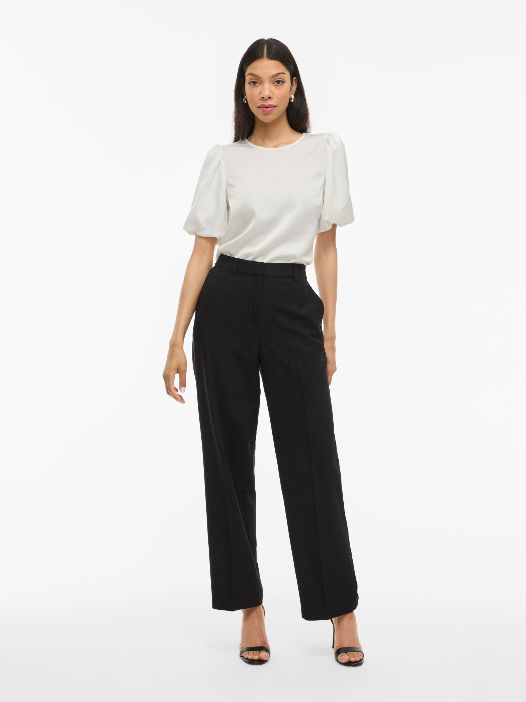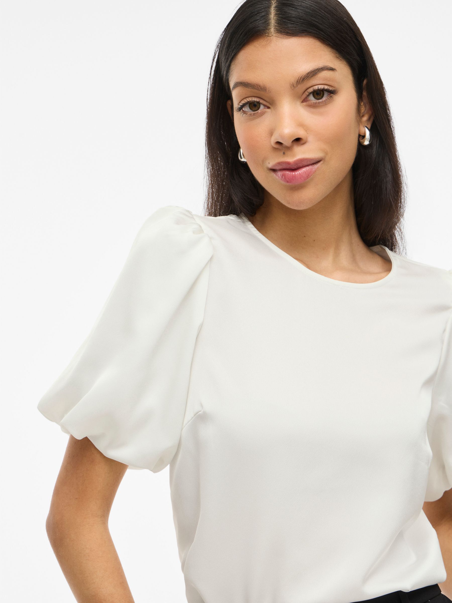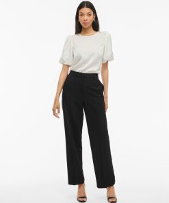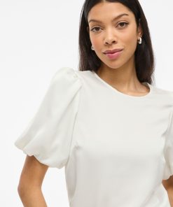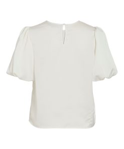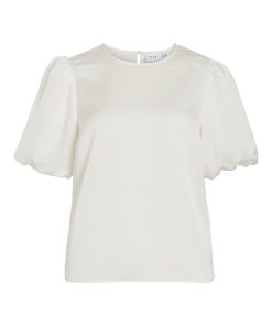 VILA Women’s Viellette Round Neck Short Sleeved Top | Snow White
