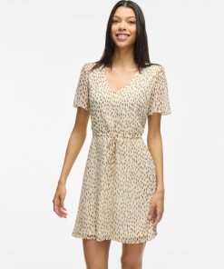 • Short sleeved short dress• V-neck• Drawstring at waist• Regular fit• Length: 90 cm in size 38• Sleeve length: 24 cm in size 38