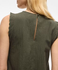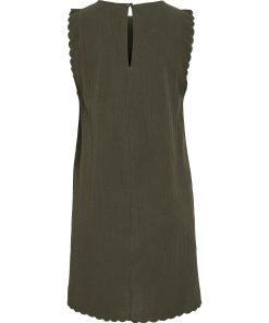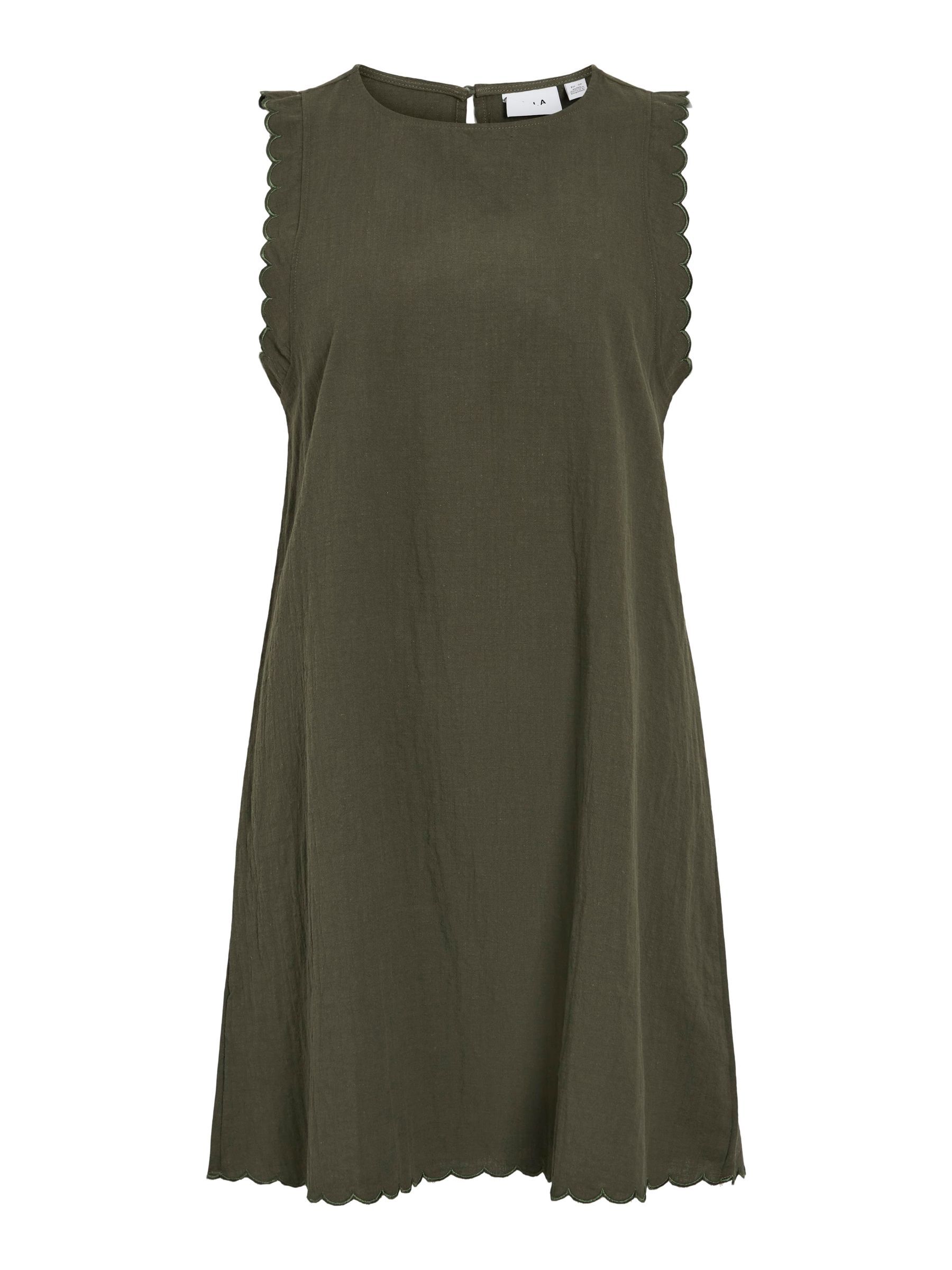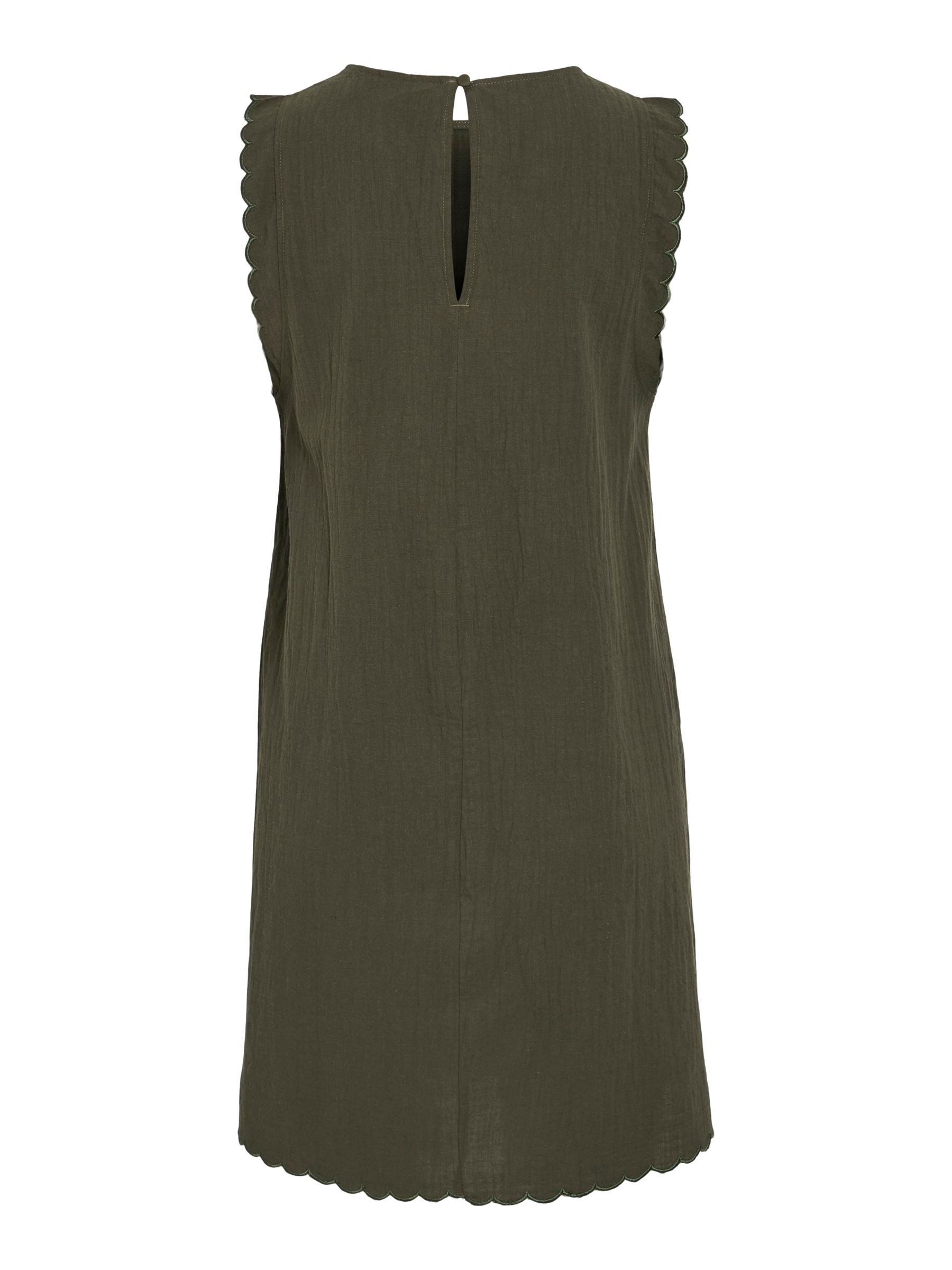 • Sleeveless short dress• Round neck with button-keyhole fastening• Scallop edge• Regular fit• Length: 90 cm in size 38