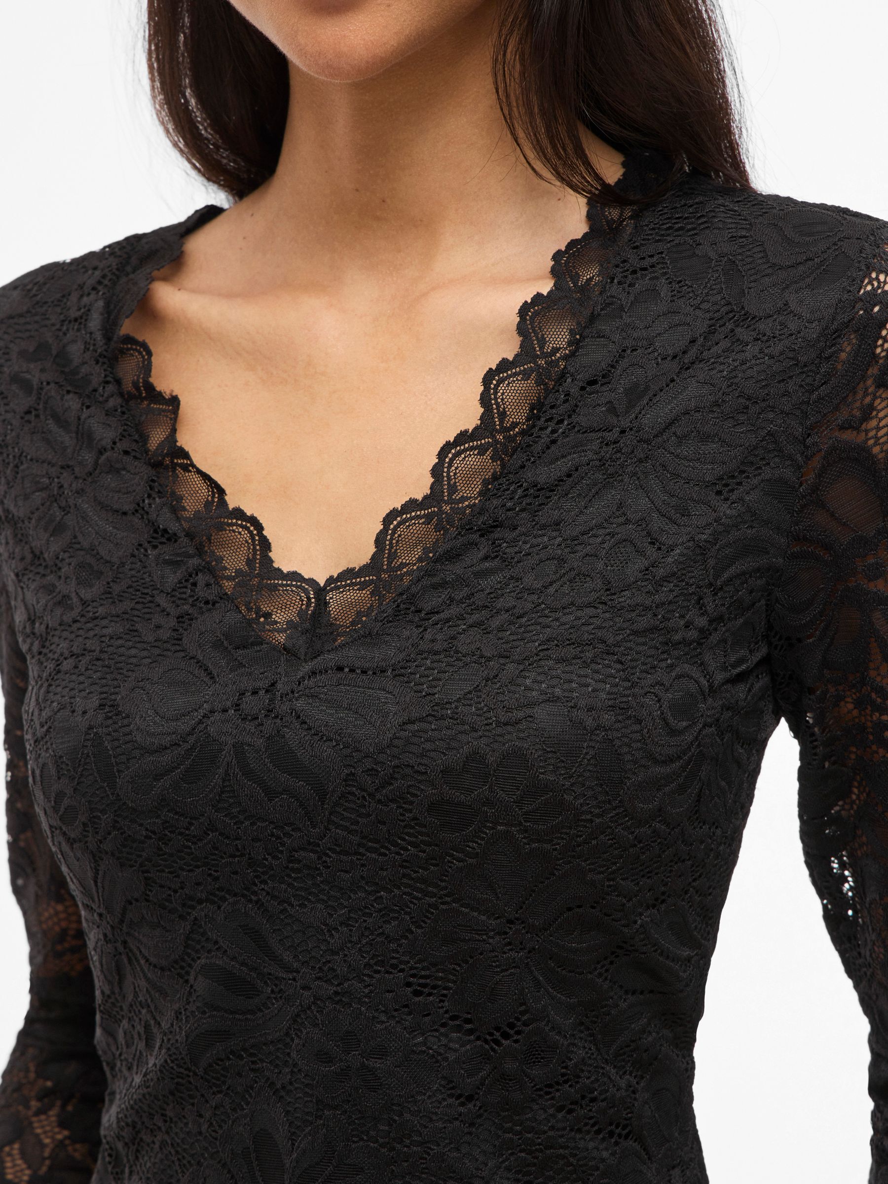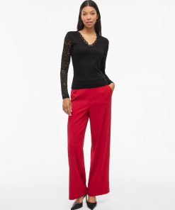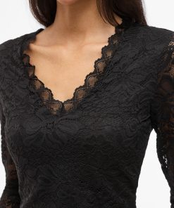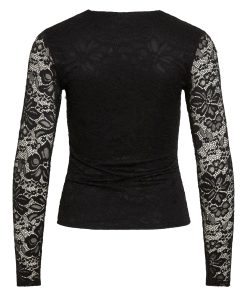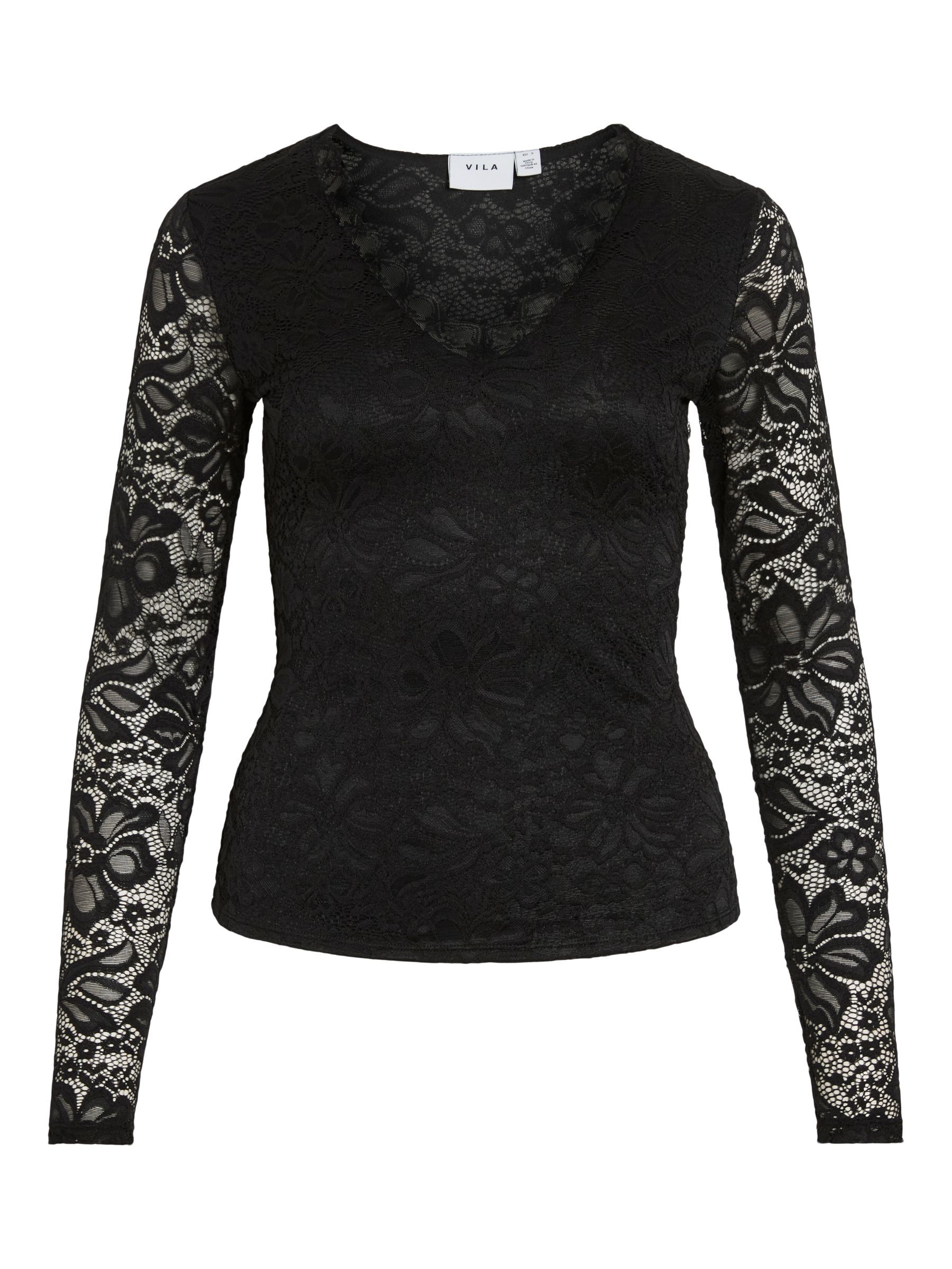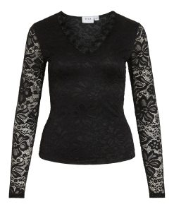 VILA Women’s Vigalve Lace Long Sleeved Top | Black