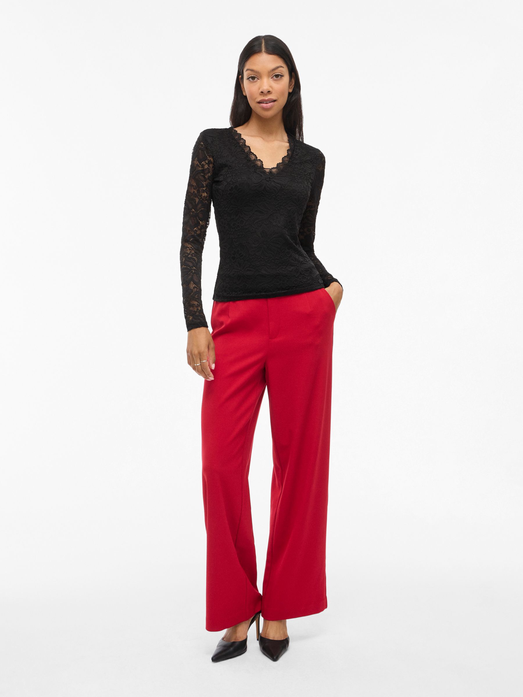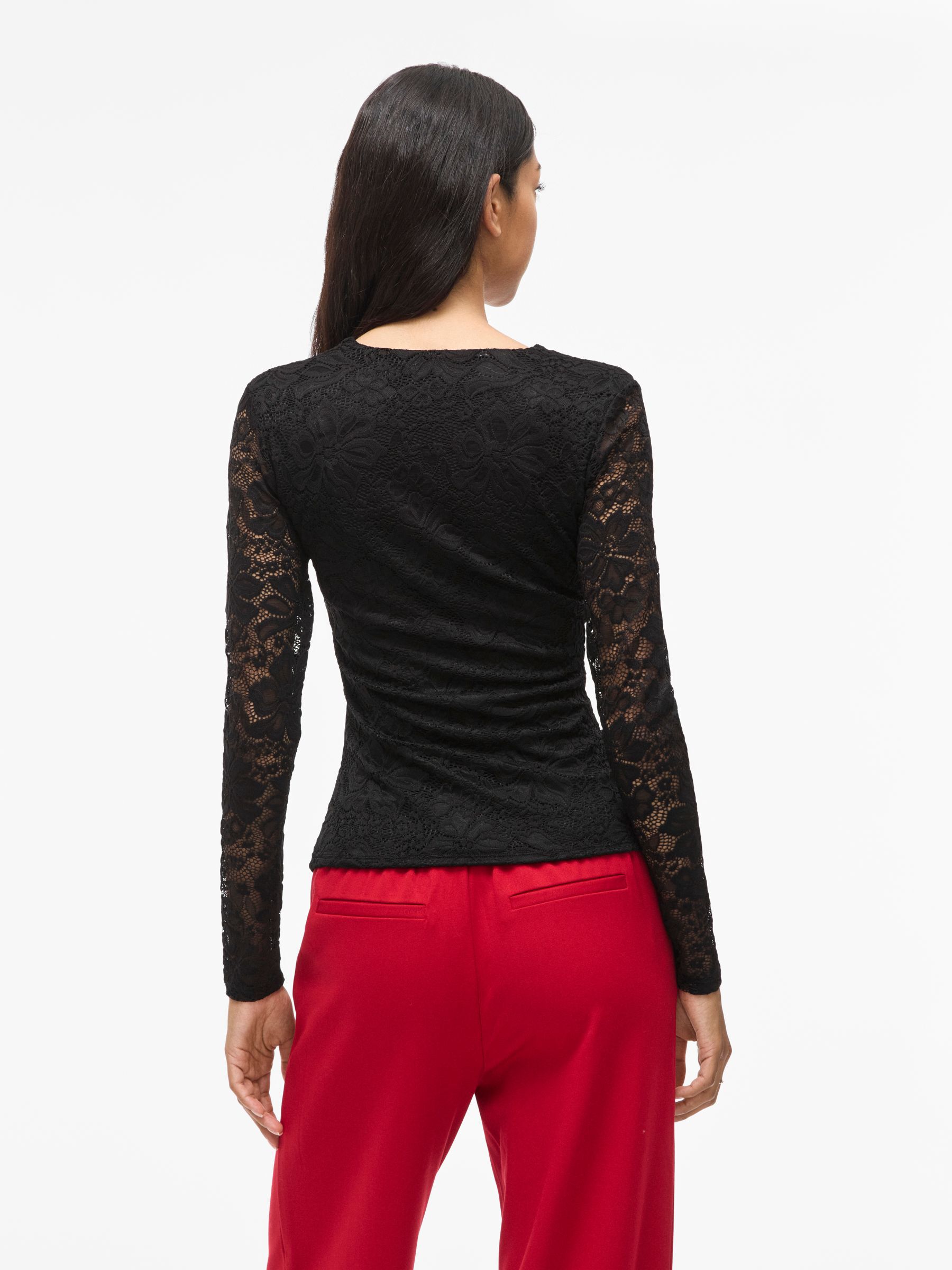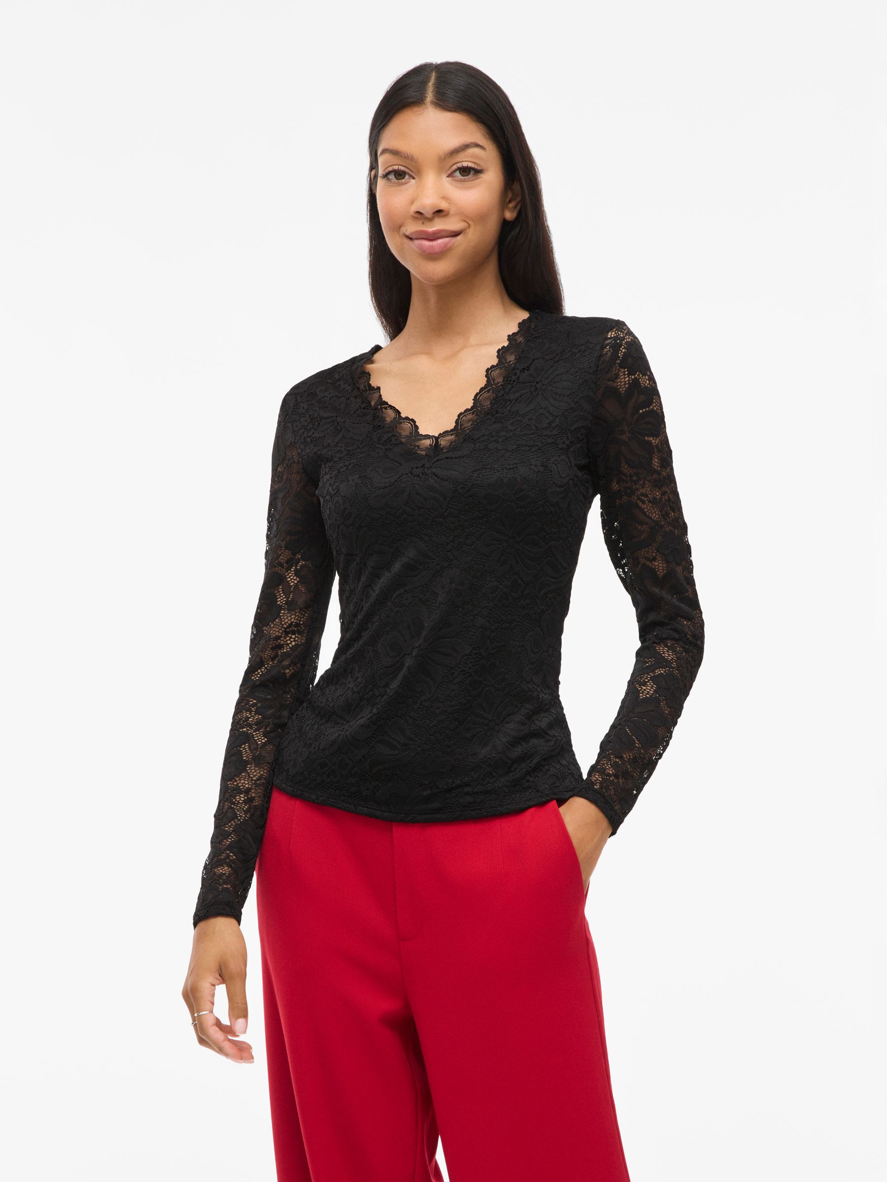 VILA Women’s Vigalve Lace Long Sleeved Top | Black