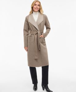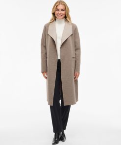 – Tie waist, coat – Two pockets- One inner pocket- Stretchy material- Transitional coat – Length: 110 cm in size 38 – Sleeve length: 64 cm in size 38- Our model is 178 cm tall and wears size 38
