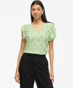 VILA Women’s Vikarla V-neck Cap Sleeve Top | Smoke Green