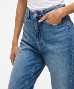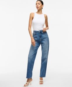 VILA Women’s Vikelly High-waist Straight Fit Jeans | Medium Blue Denim
