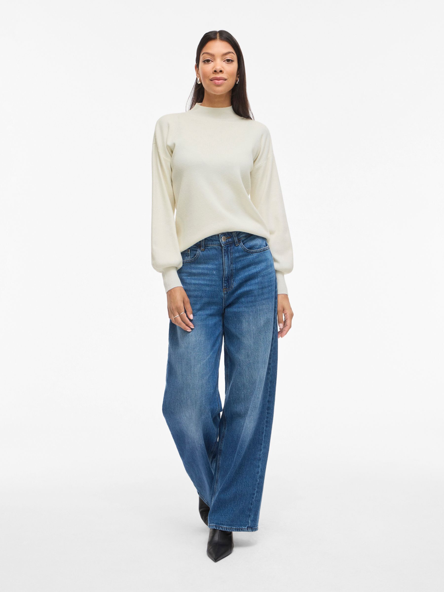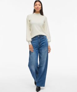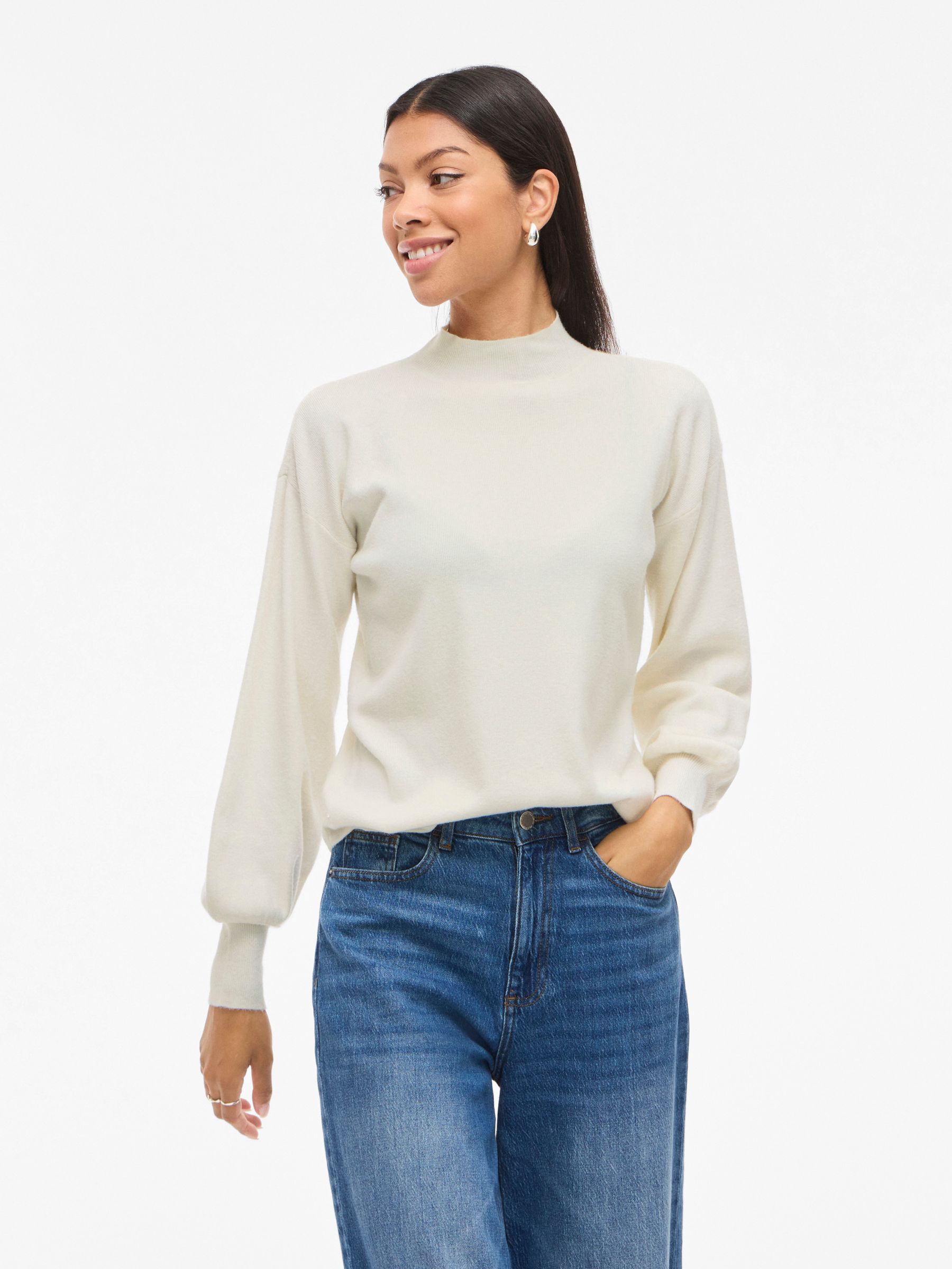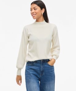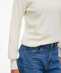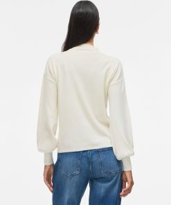 VILA Women’s Vikerry High Neck Knitted Pullover | Cloud Dancer